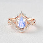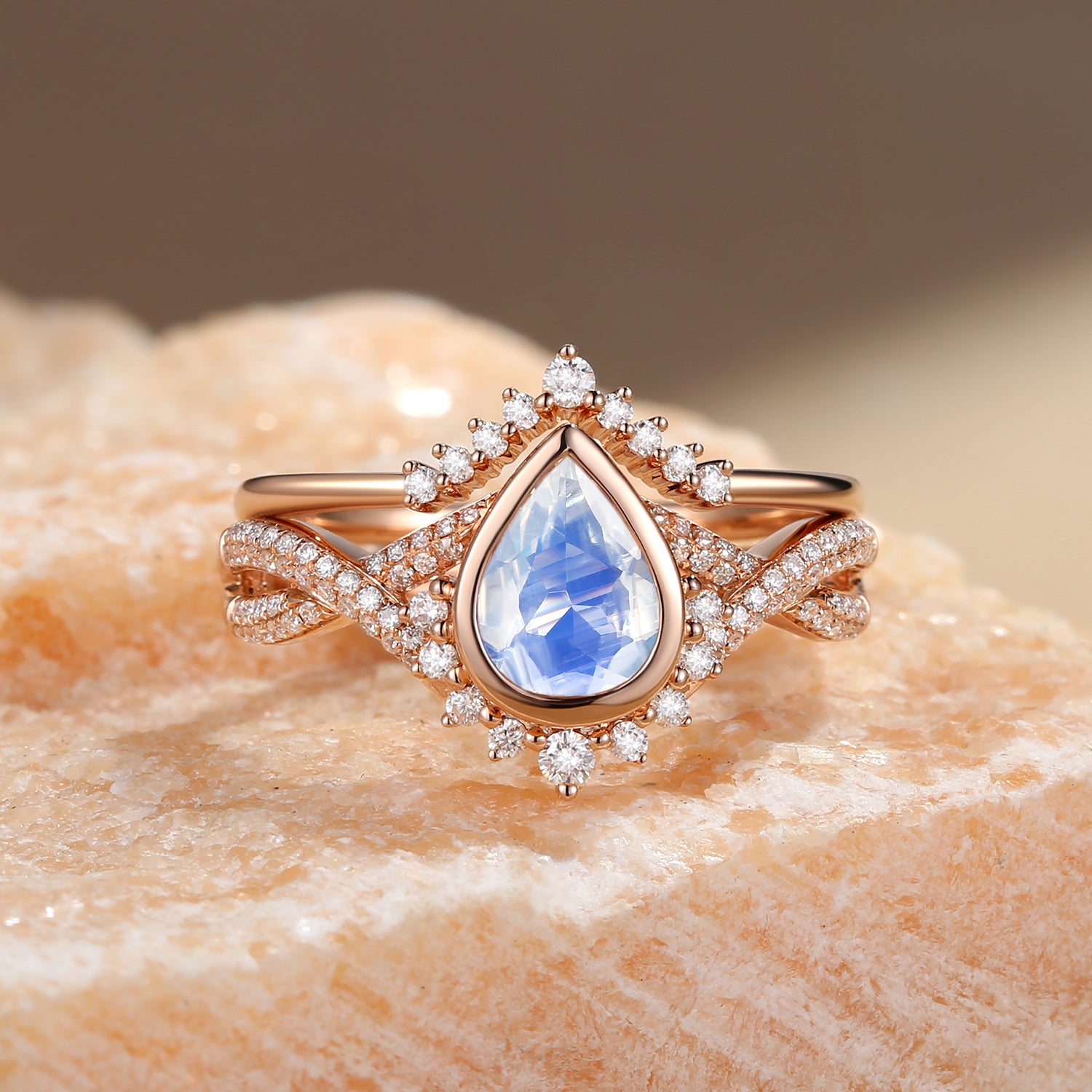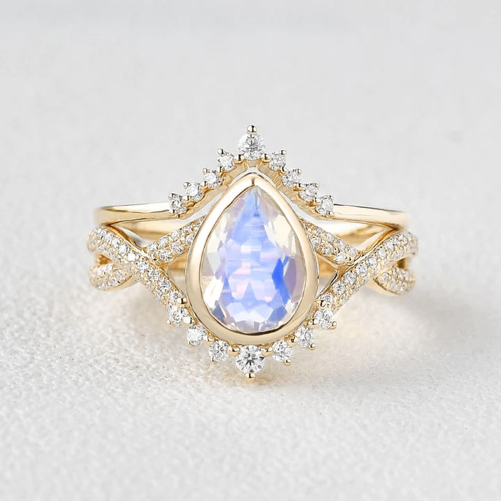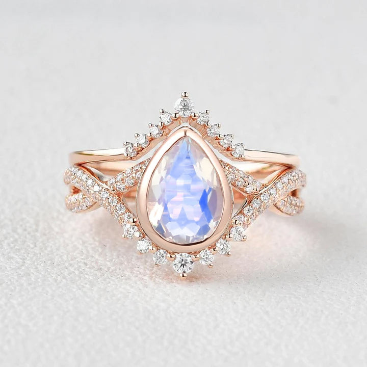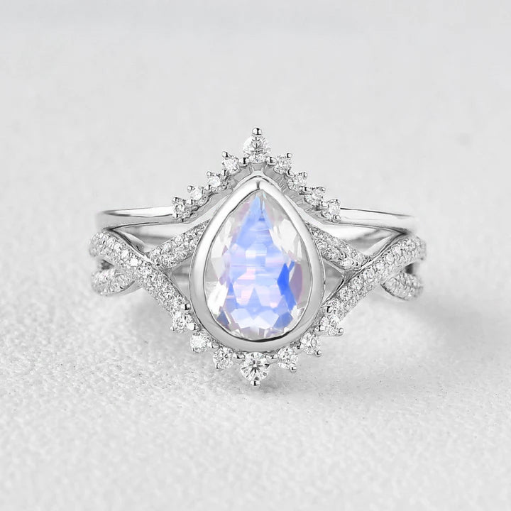 Pear Moonstone Bezel Infinity Ring Set 2pcs - Lunaire
