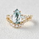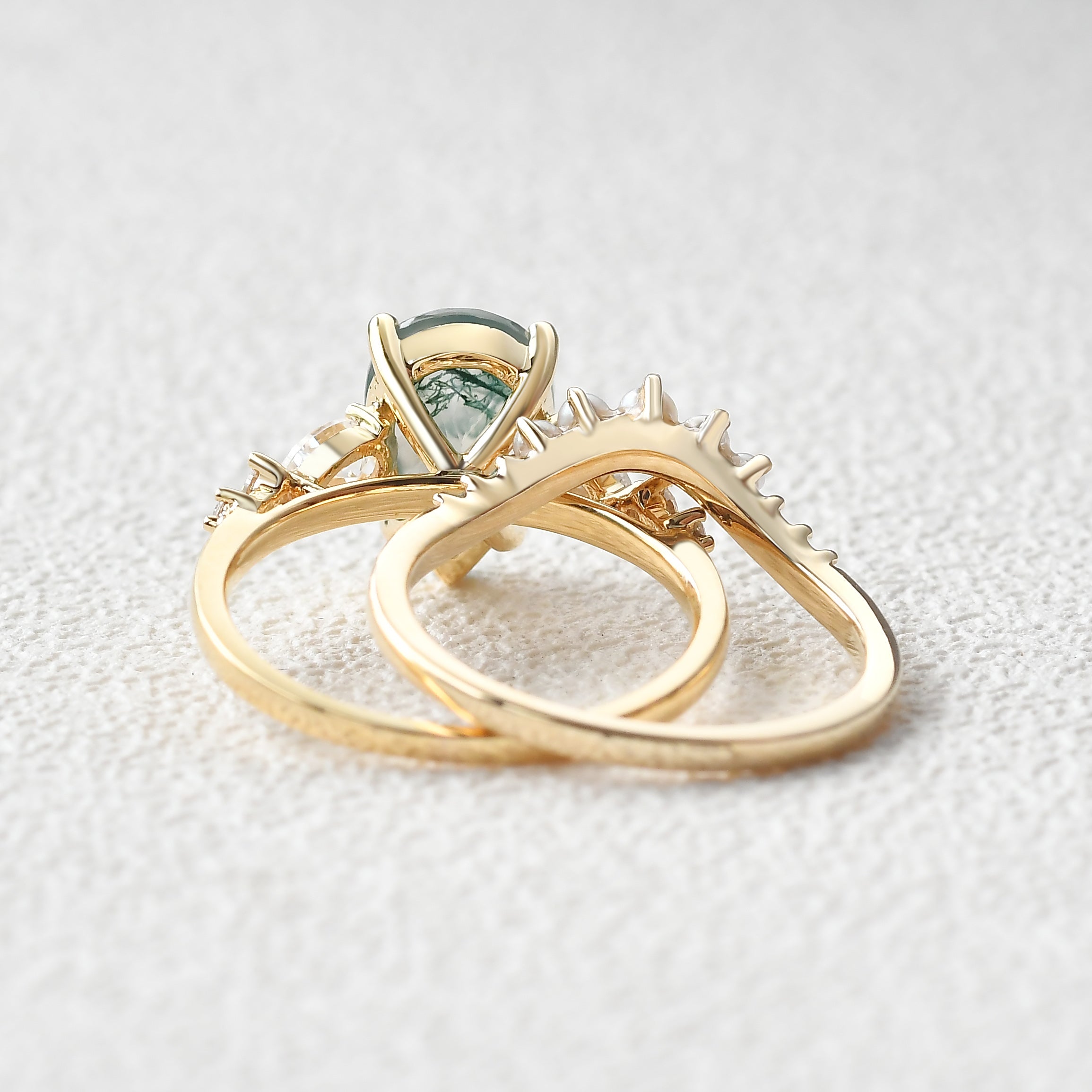 3.0ct Pear Shaped Moss Agate & Pearl Bridal Ring Set 2pcs