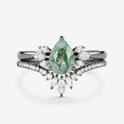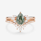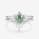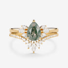 Fairy Ring - 1.5ct Pear Shaped Moss Agate Butterfly Cluster Ring Set 2pcs