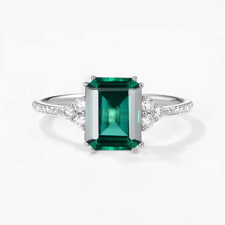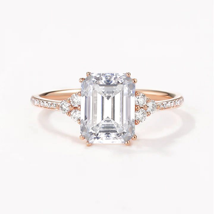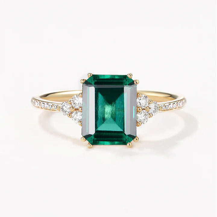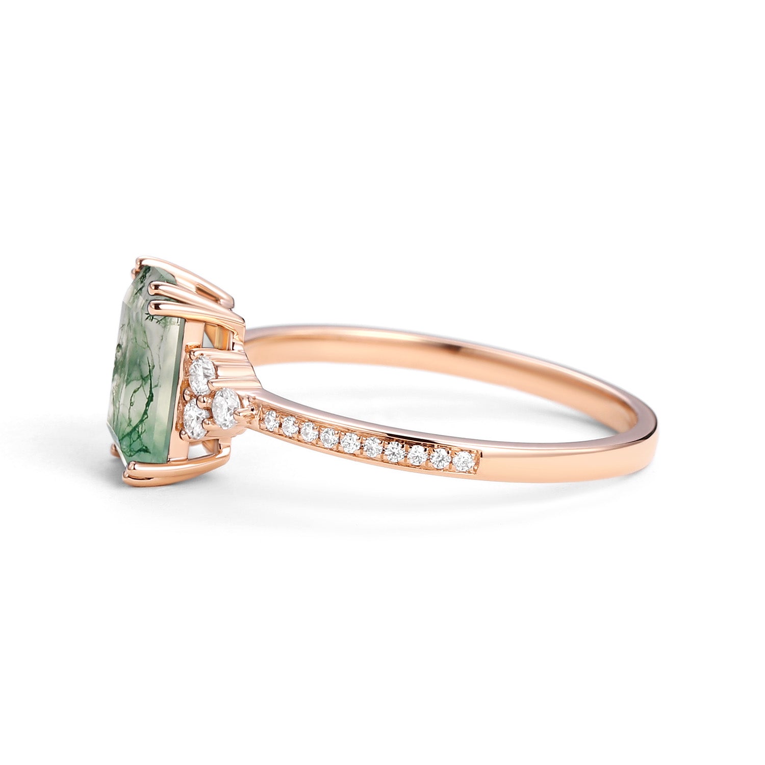 Classic Emerald Cut Moss Agate & Moissanite Cluster Engagement Ring
