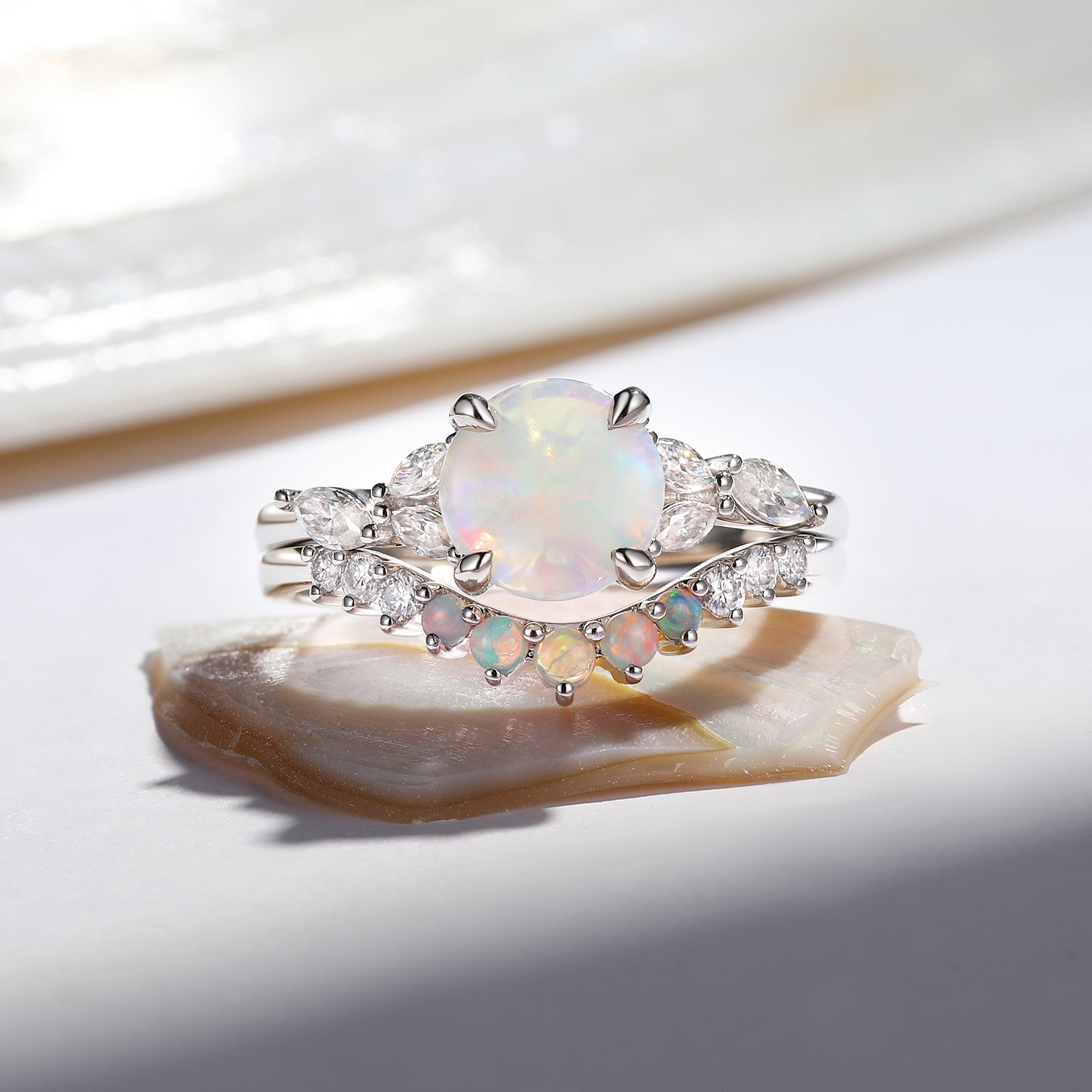 Moissanite & Opal Rose Gold Ring Set 2pcs