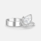 Pear Moissanite & Pearl Classic Halo Couple Ring Set 3pcs