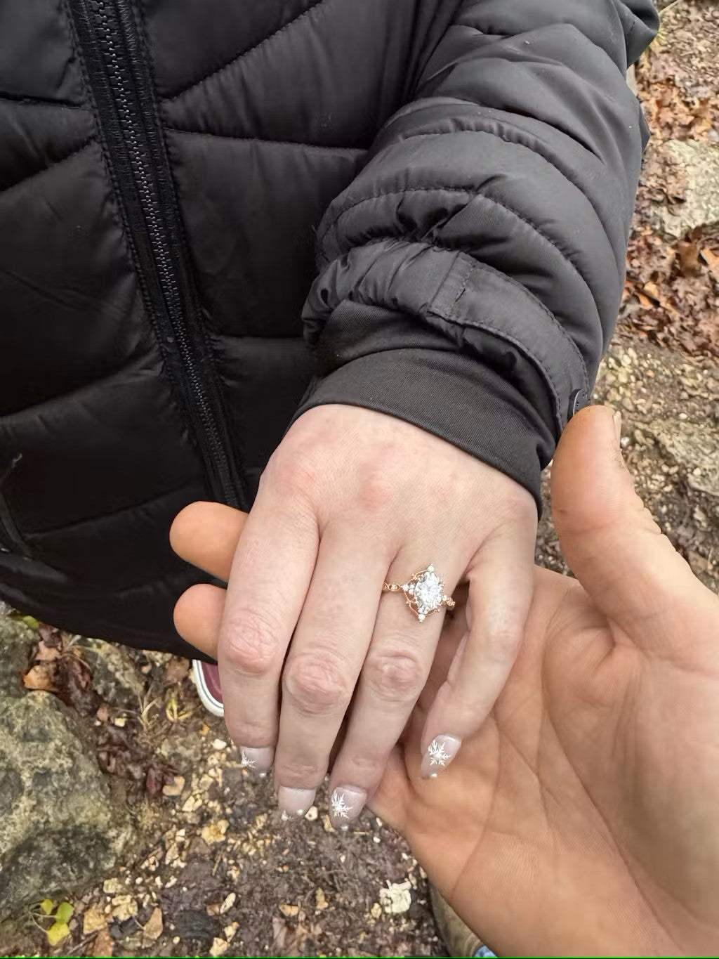 Felicegals Unique Marquise Cut 0.12ct Moissanite Ring Cluster Wedding Band Rose Gold Ring Custom Curved Ring Stacking Ring Anniversary Gift Promise Ring