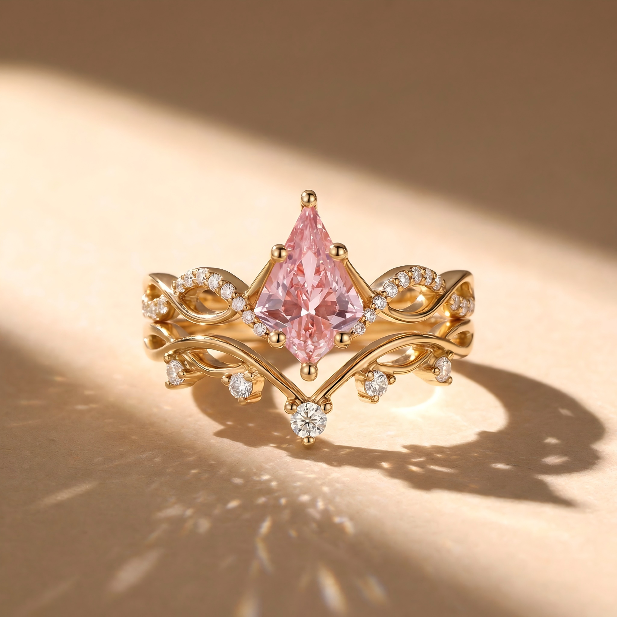 Leafy Kite Pink Lab Grown Diamond Ring Set 2pcs - Phyllon