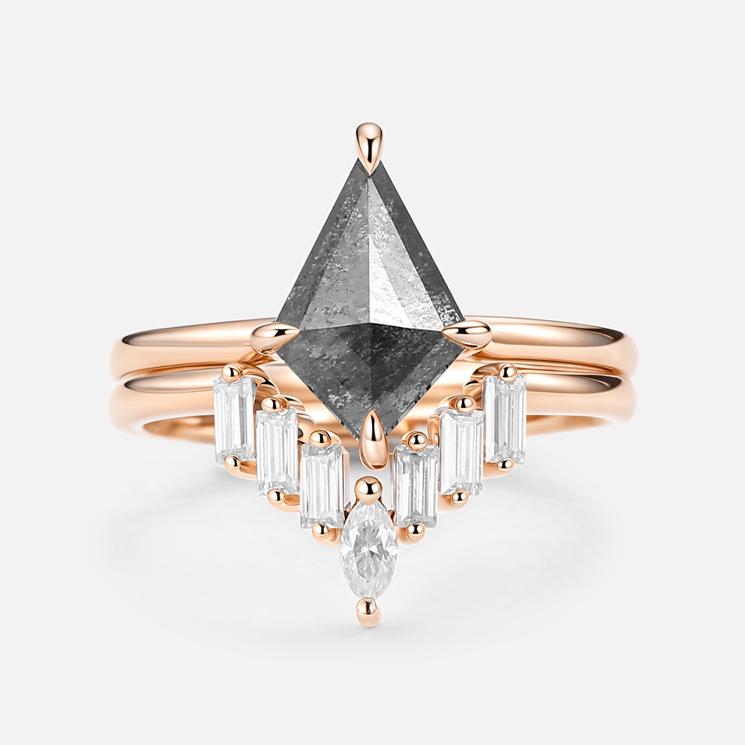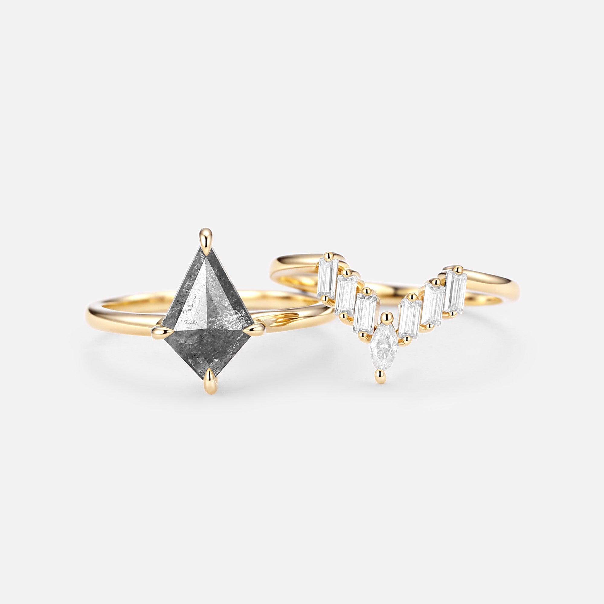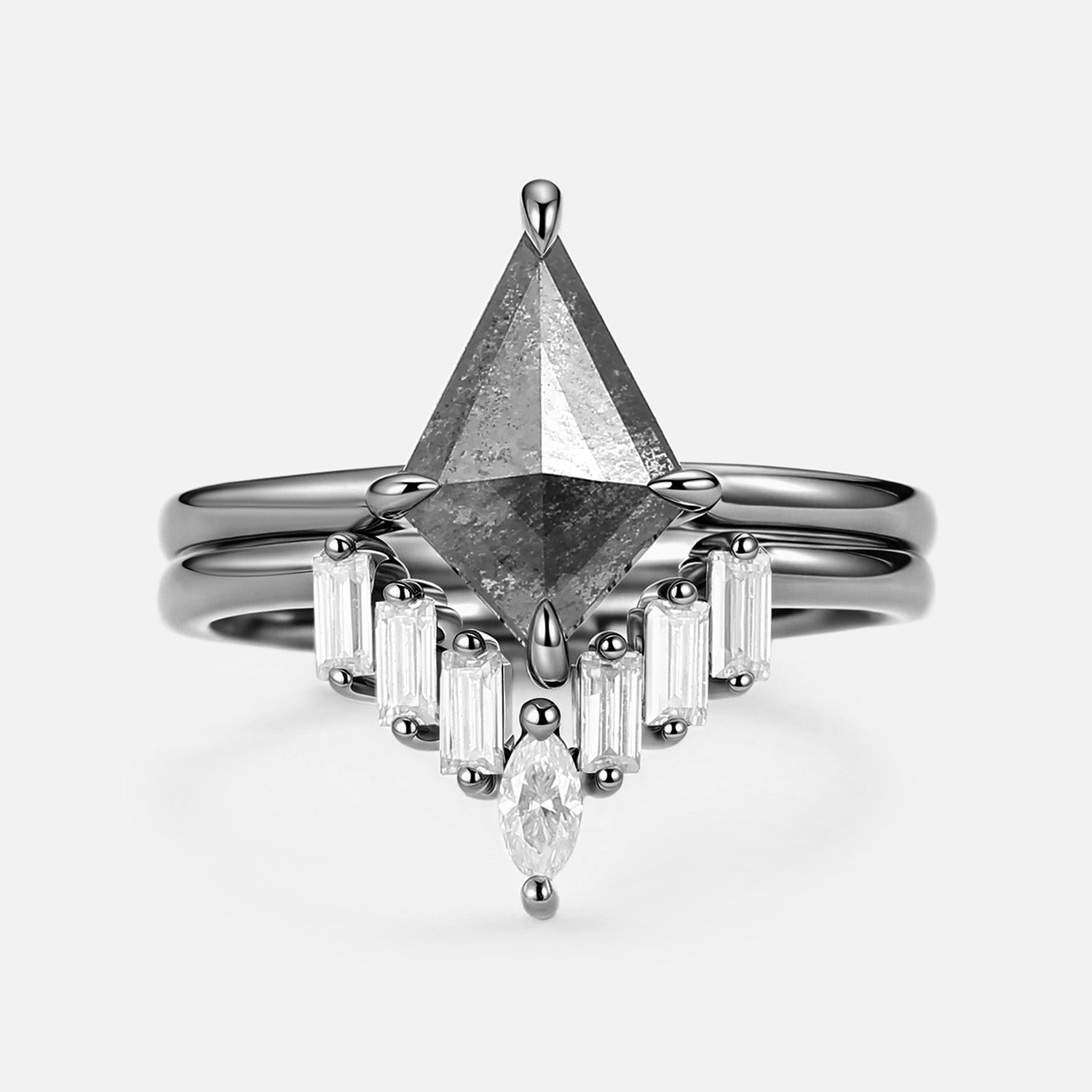 Salt and Pepper Diamond Ring Set 2pcs