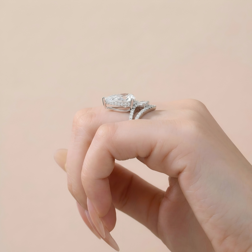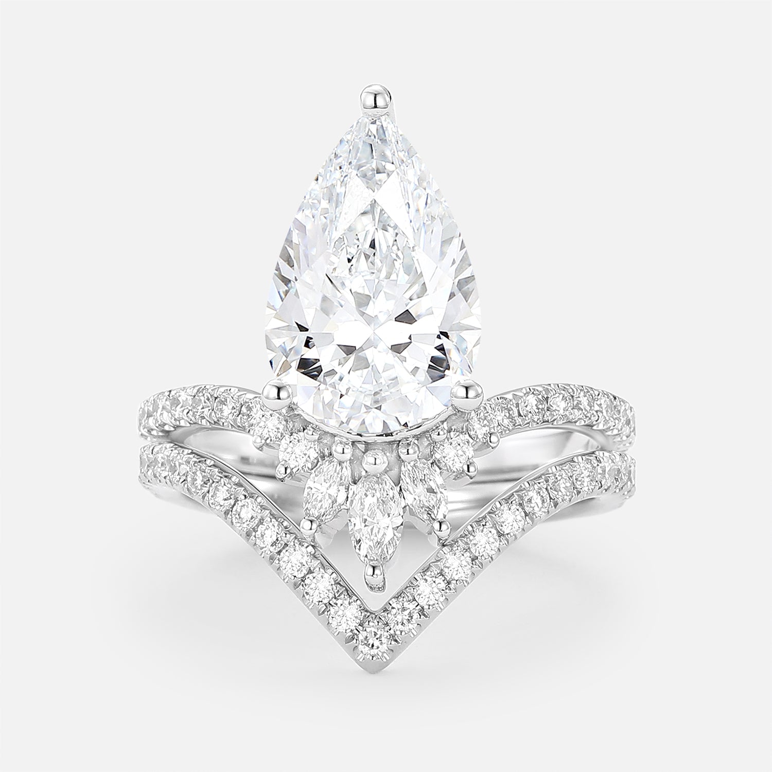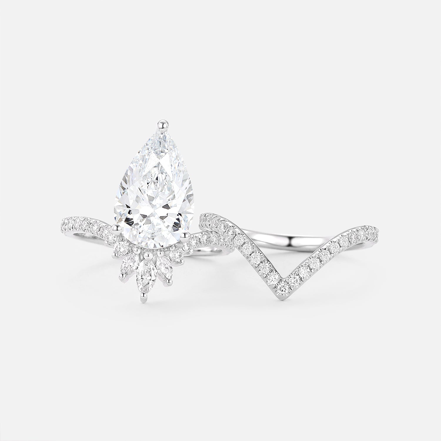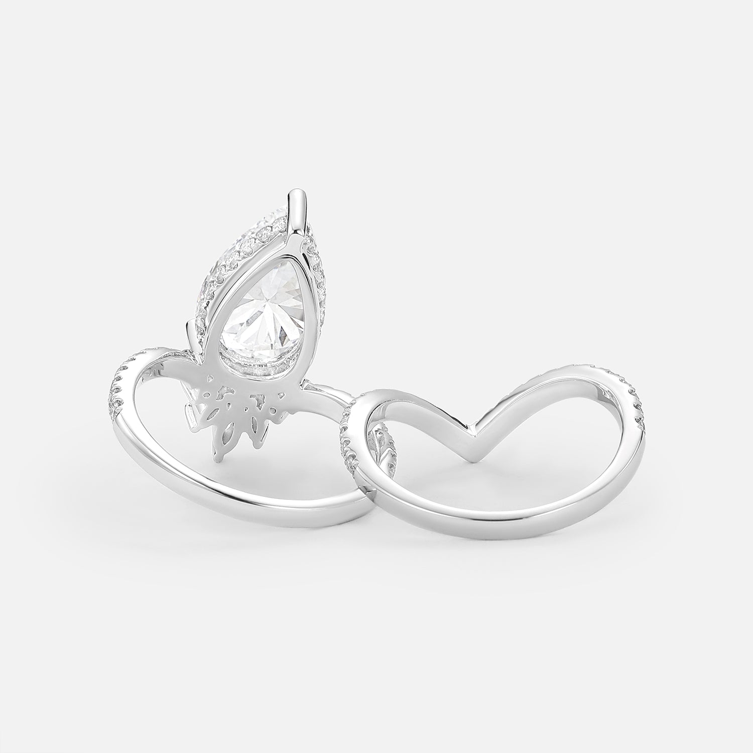 Pear Hidden Halo Lab Grown Diamond Leafy Ring Set 2pcs