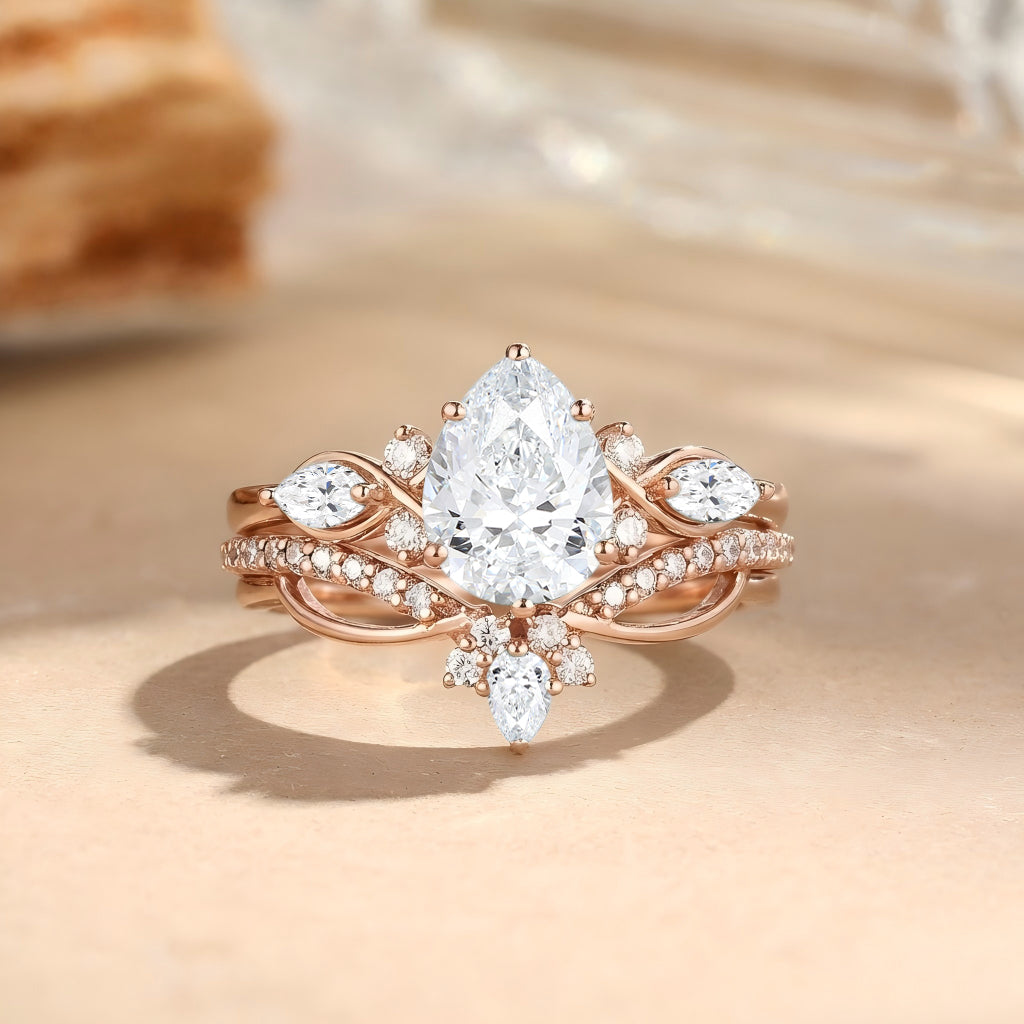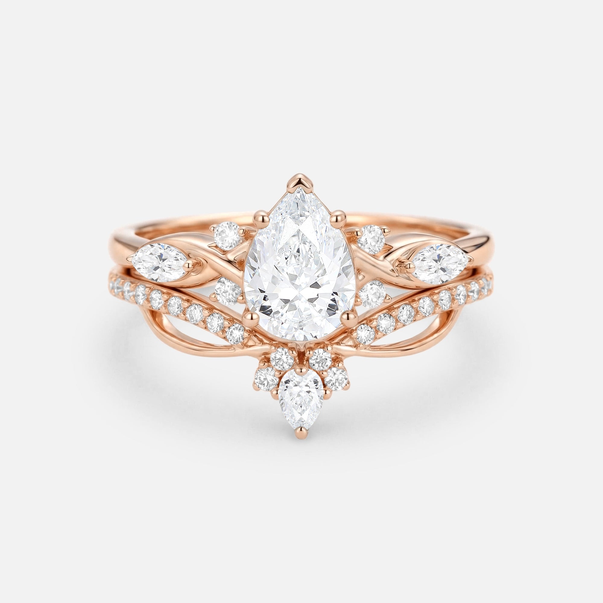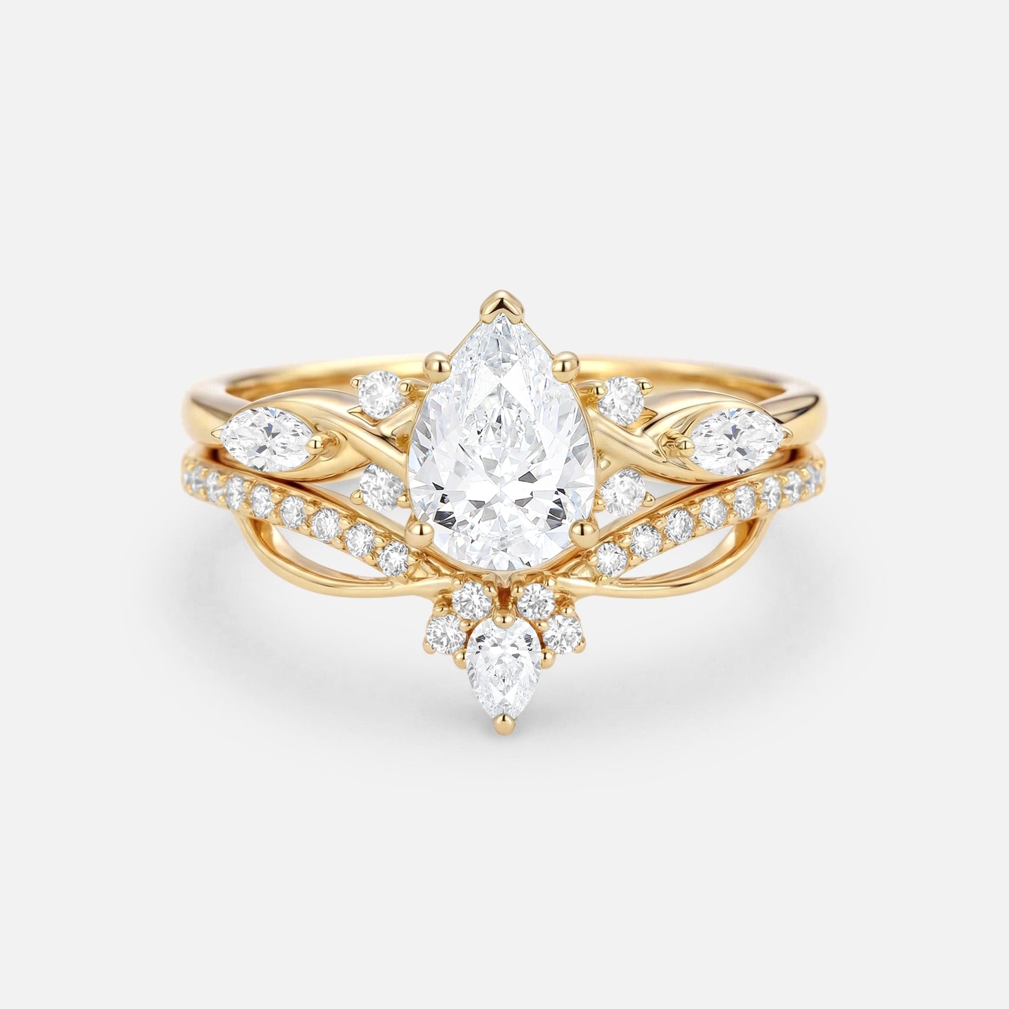 Pear Lab Grown Diamond Leafy Engagement Ring Set 2pcs - Emmy