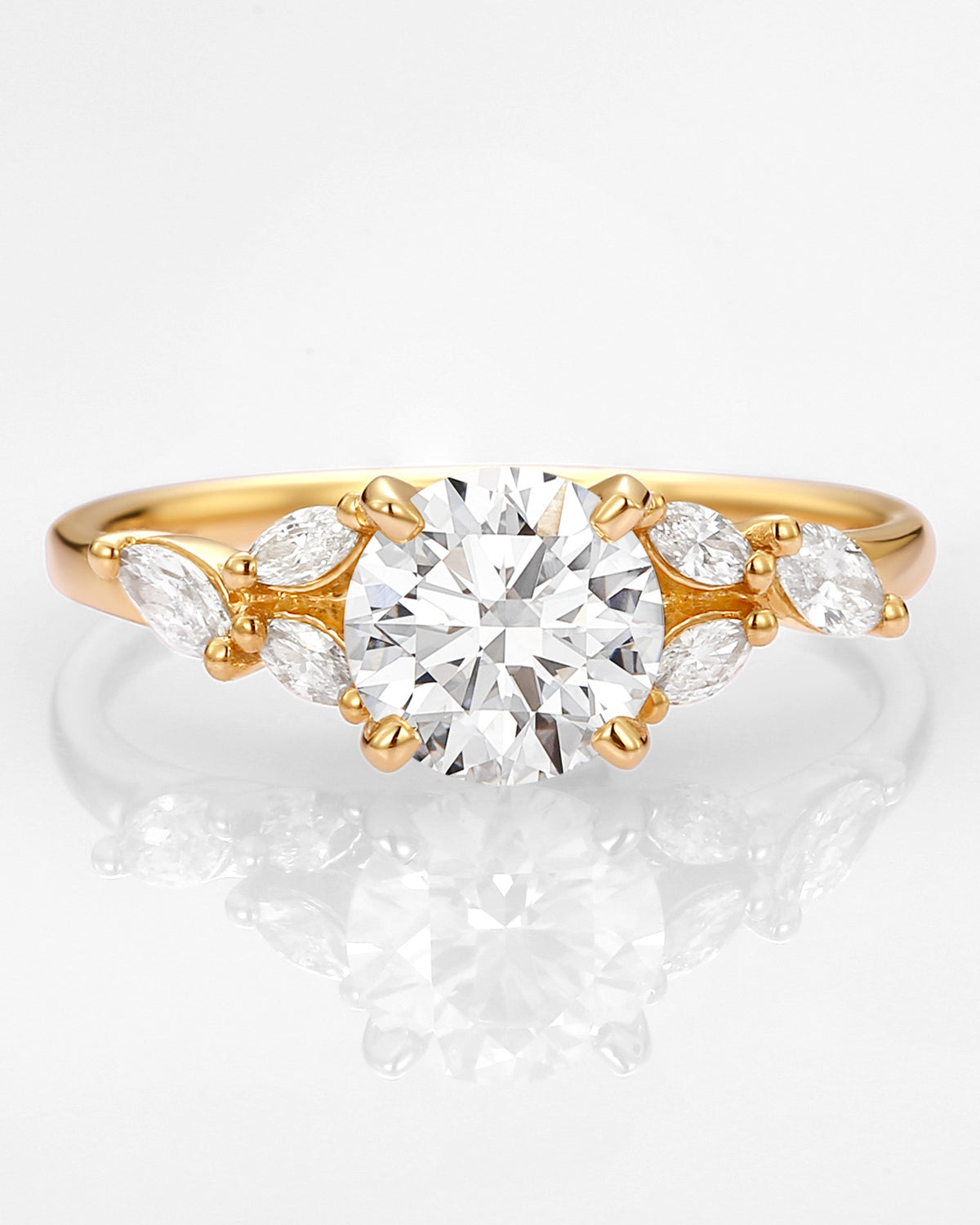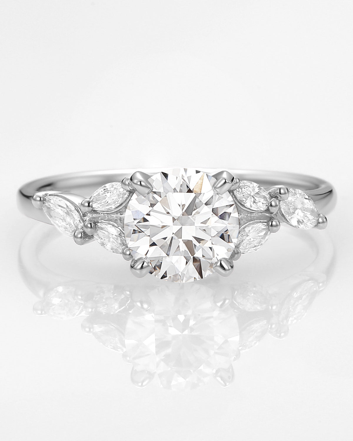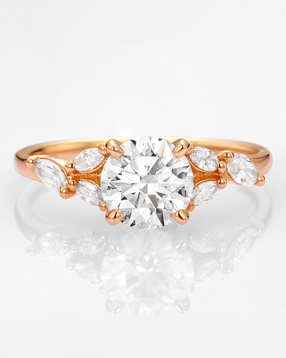 Round cut diamond rings include 1.0-2.0ct round lab grown diamond classic four-prong solitaire ring, 1.0-2.0ct round lab grown diamond halo ring, 1.0-2.0ct round lab grown diamond gold ring, 1.0 -2.0ct round lab-grown diamond rose gold ring, 1.0-2.0ct round lab grown diamond leaf ring, etc. Round diamonds are classic diamond ring that you can buy with confidence!