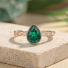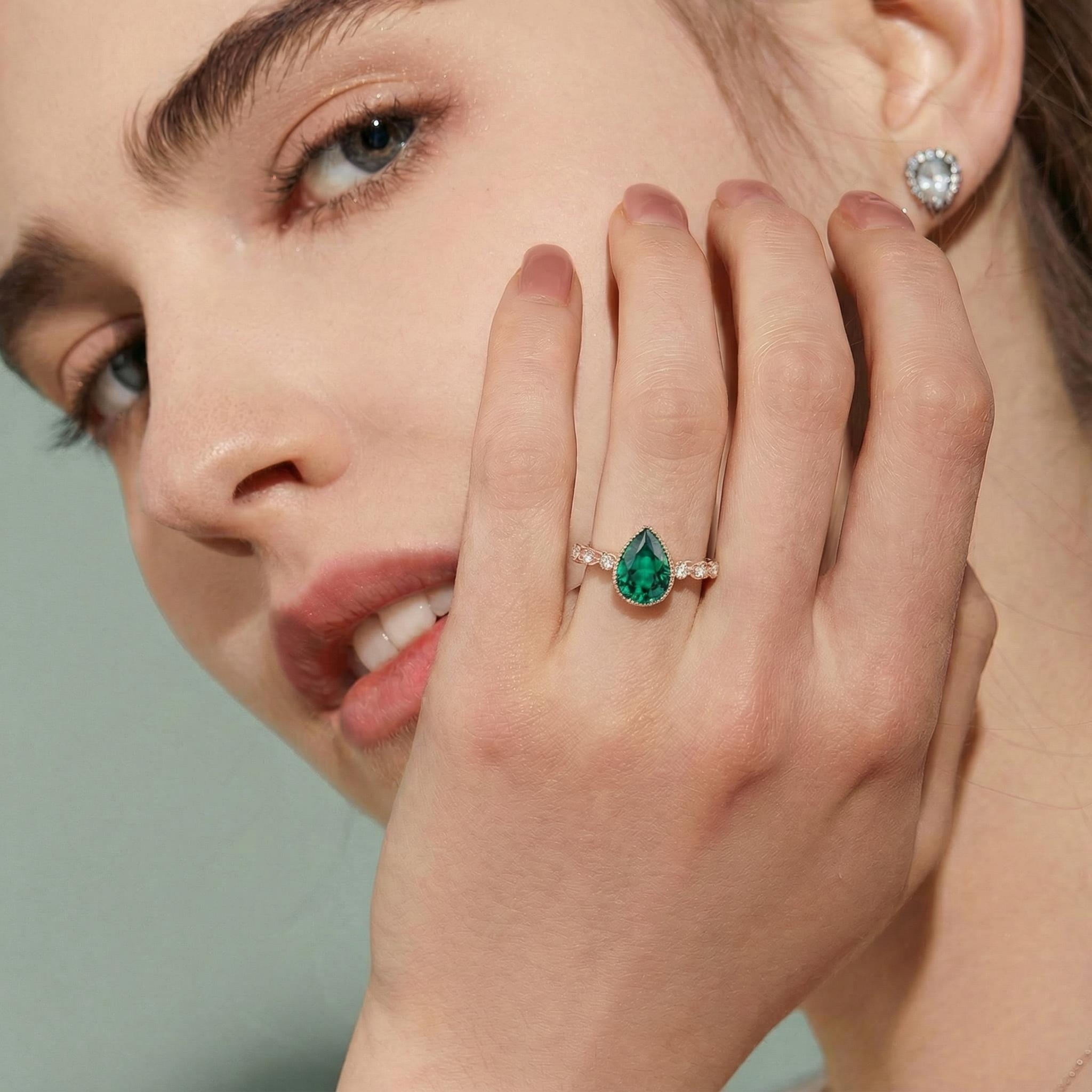 1.5ct Pear Emerald Vintage Milgrain Bezel Ring