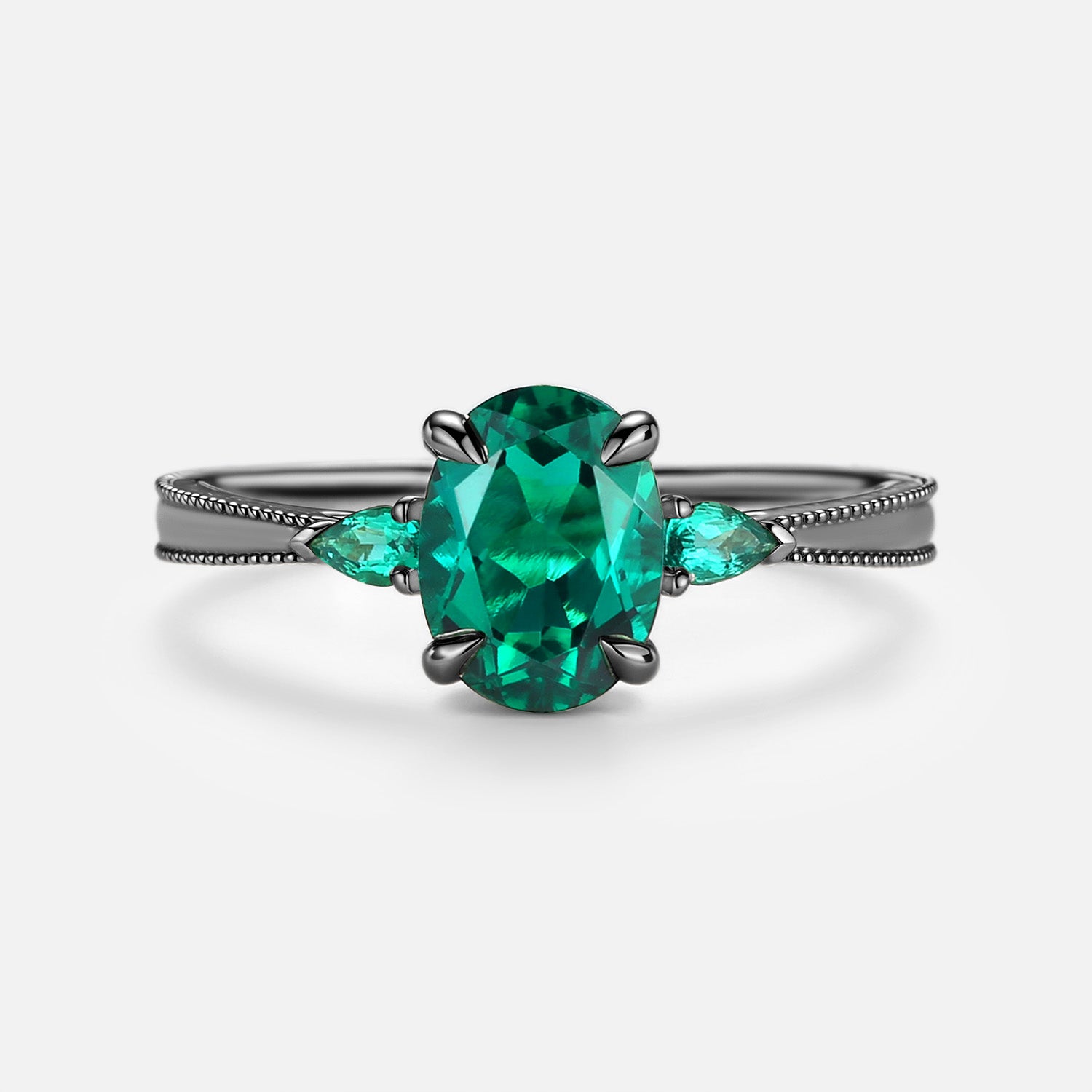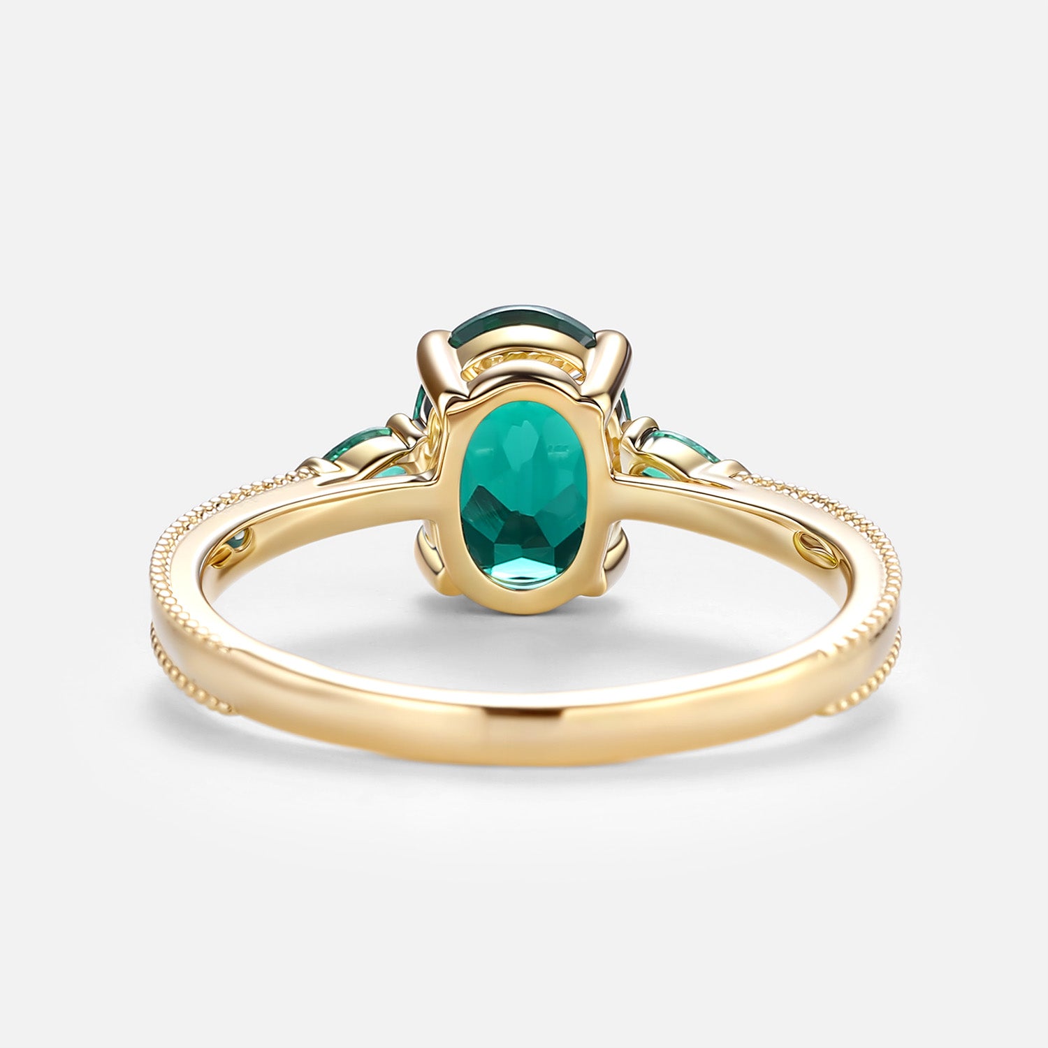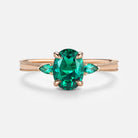 Vintage Oval Cut Lab Emerald Engagement Ring - Foliate