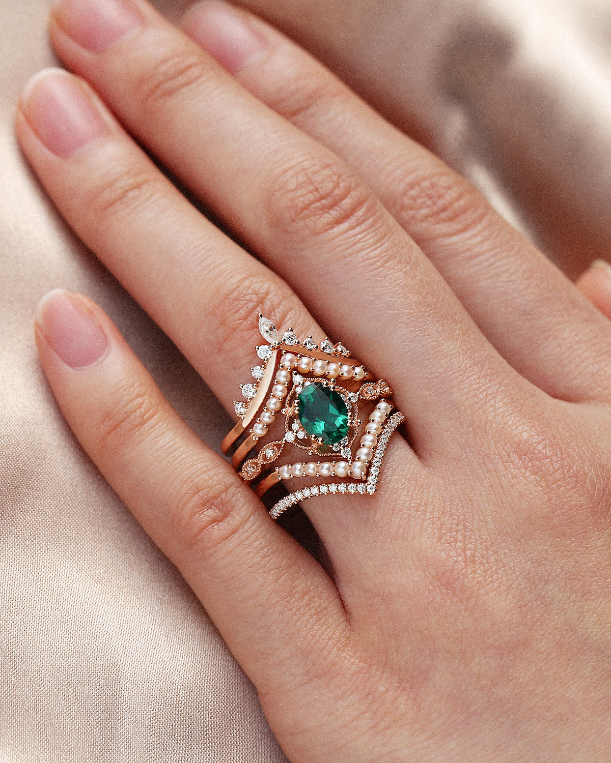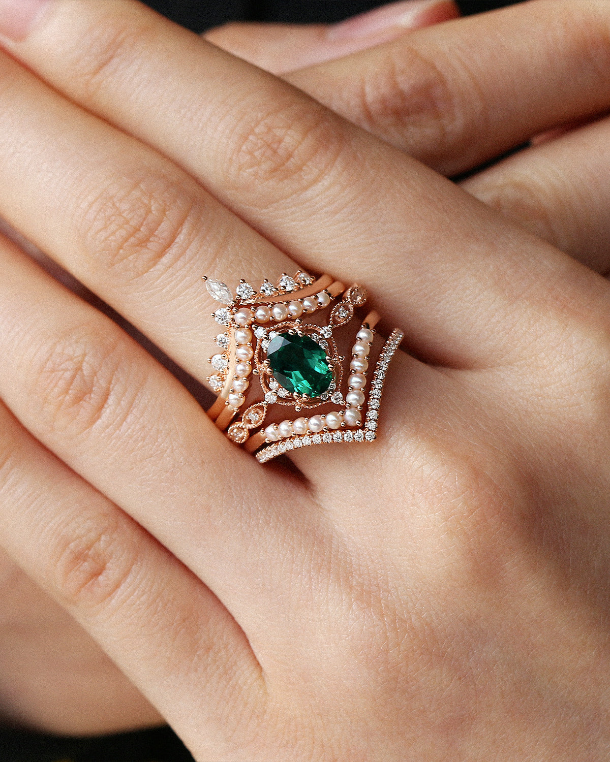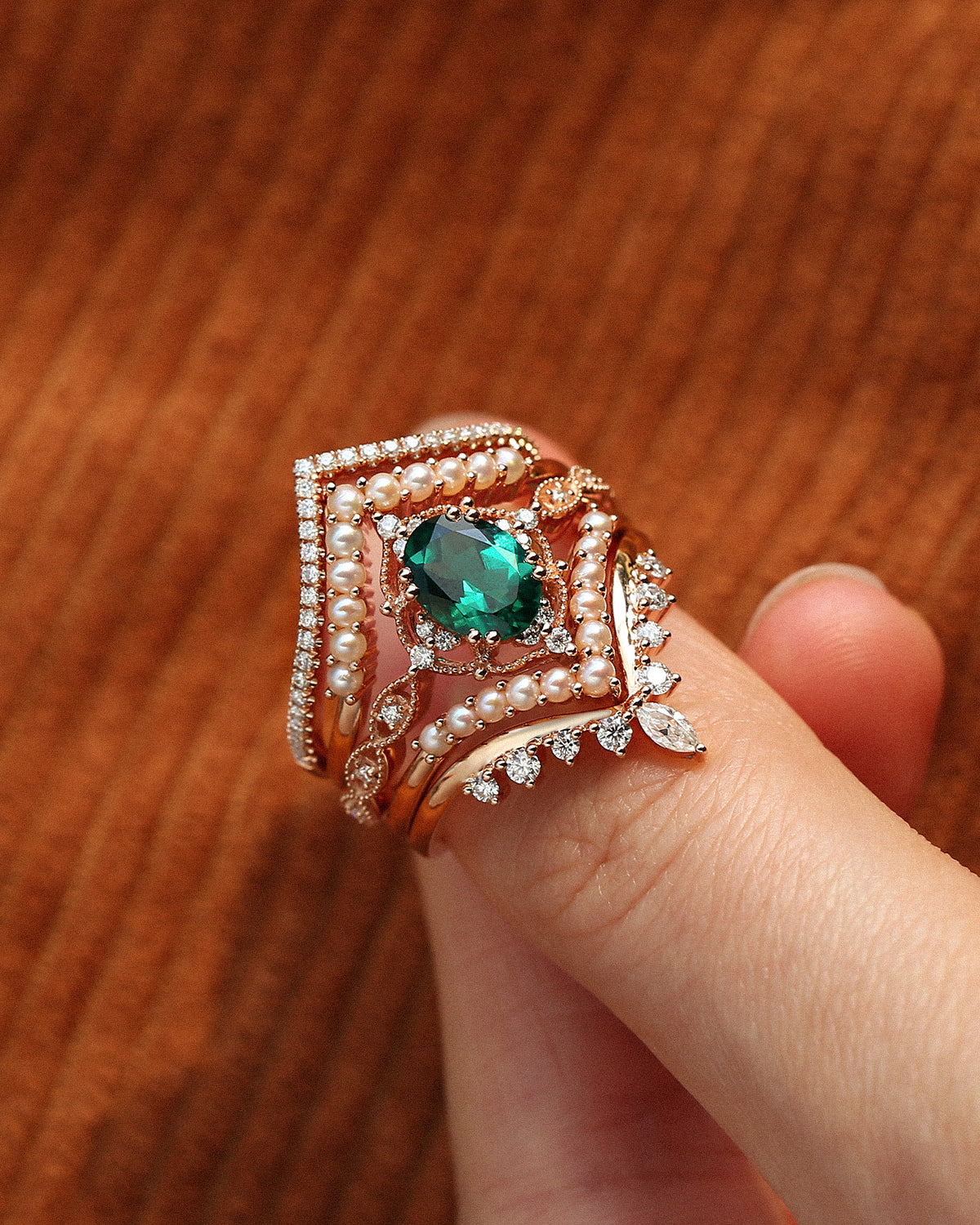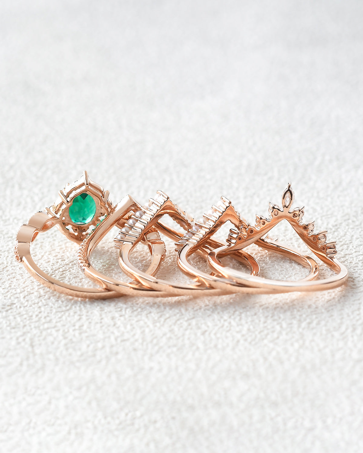 Beyond birthstone meaning and durability, emeralds symbolize love and new beginnings, and our emerald engagement rings seamlessly fit every core style: For Nature Inspired tastes, bands etched with delicate leaves or vines pair the gem’s earthy glow with organic details that feel like a stroll through greenery; Signature Vintage designs feature rose gold settings with filigree or milgrain, harking back to old-world glamour while letting the emerald’s timeless hue take center stage; and Classic Engagement styles lean into sleek white gold solitaires—no extra frills, just the emerald’s lush green shining bright to honor traditional romance.