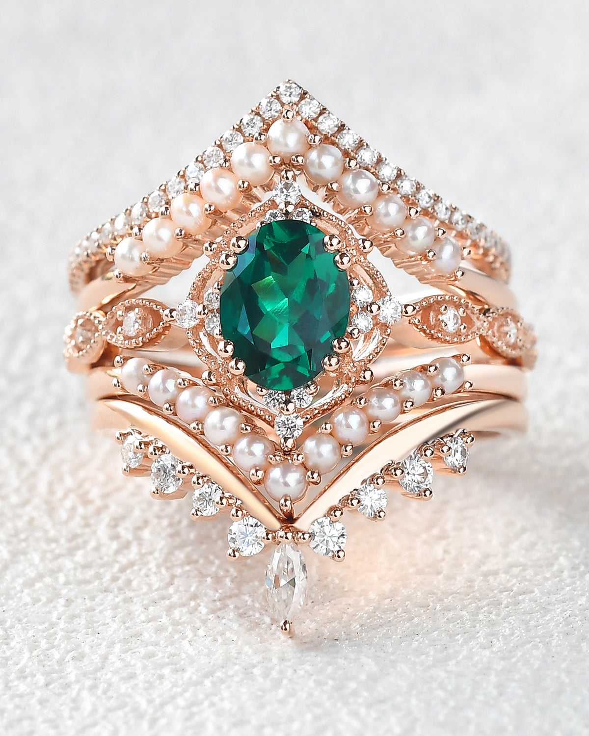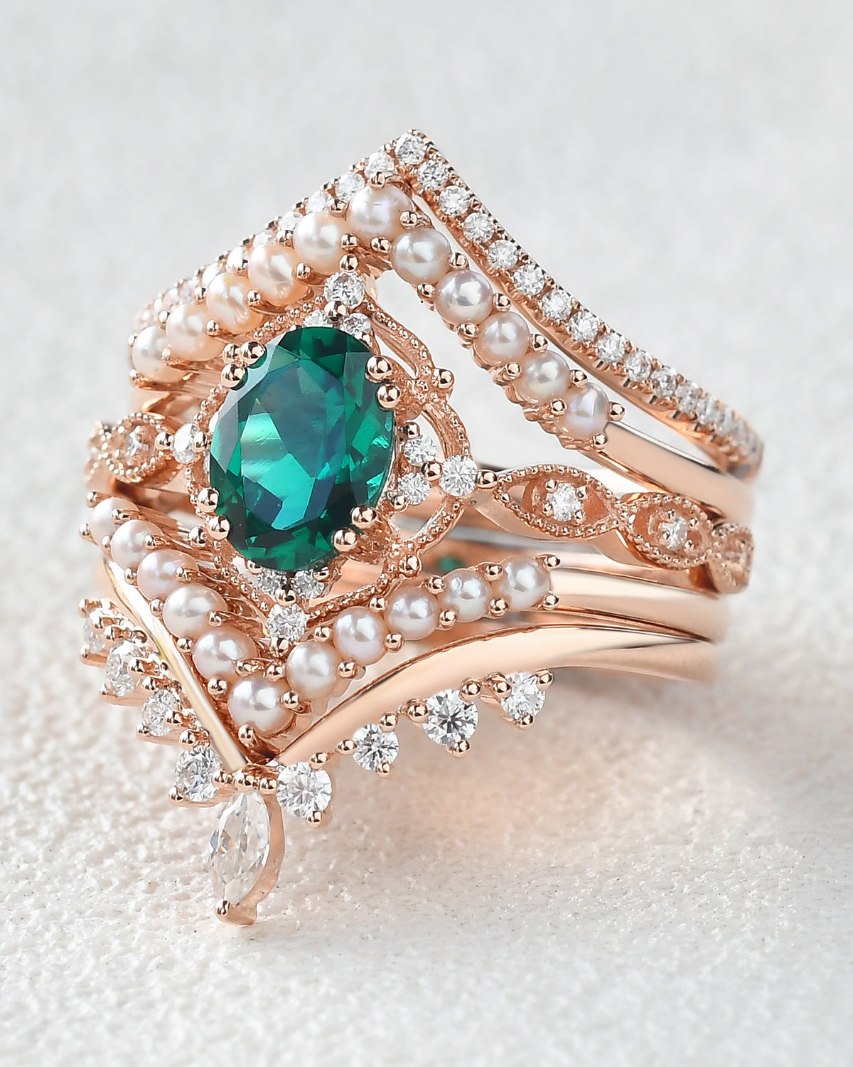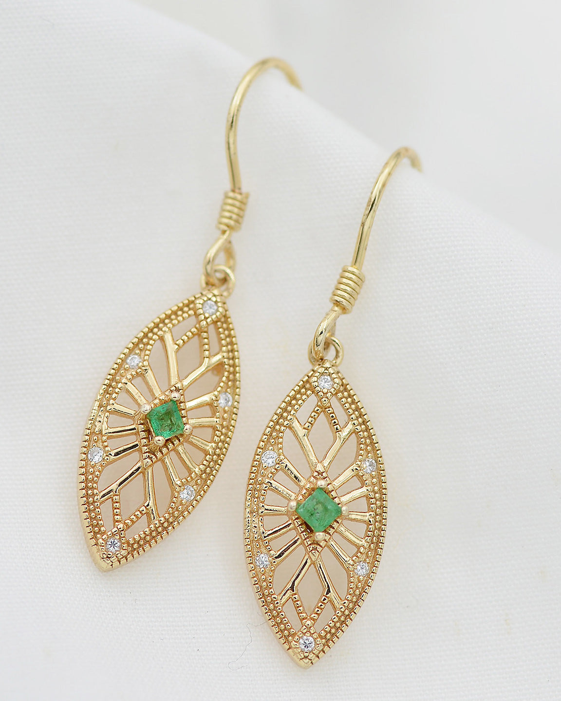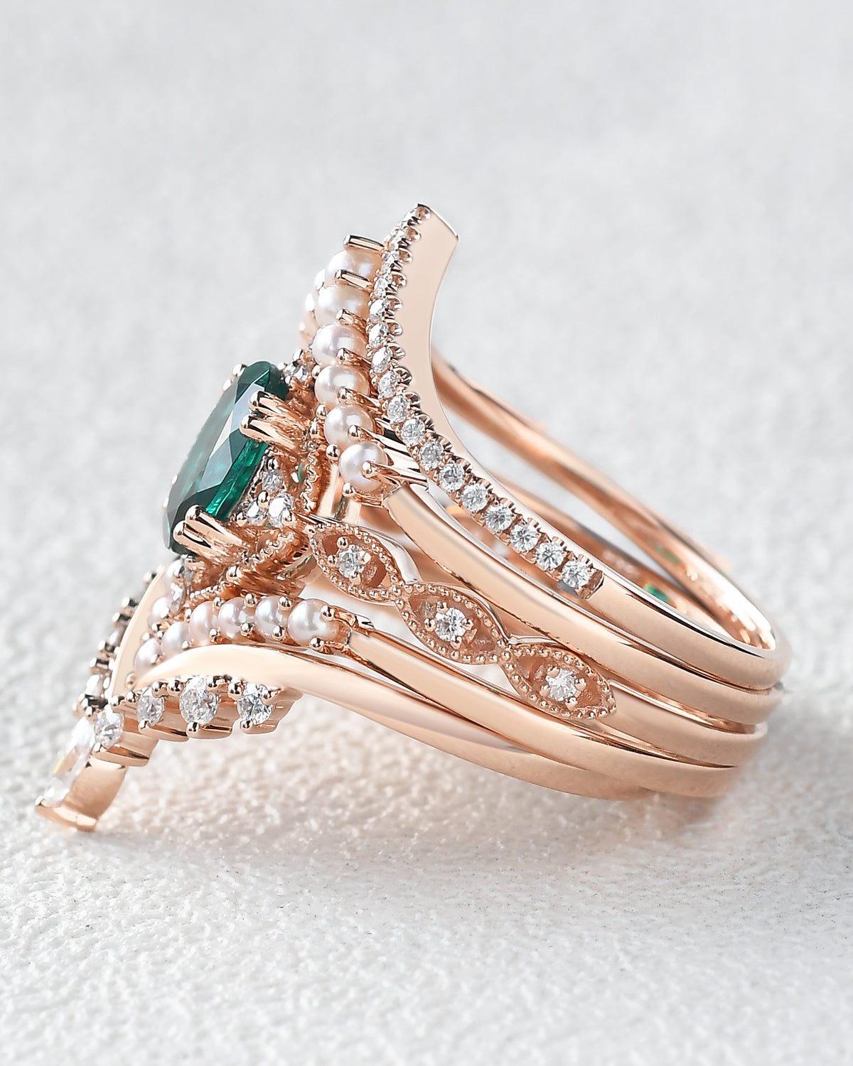 Beyond birthstone meaning and durability, emeralds symbolize love and new beginnings, and our emerald engagement rings seamlessly fit every core style: For Nature Inspired tastes, bands etched with delicate leaves or vines pair the gem’s earthy glow with organic details that feel like a stroll through greenery; Signature Vintage designs feature rose gold settings with filigree or milgrain, harking back to old-world glamour while letting the emerald’s timeless hue take center stage; and Classic Engagement styles lean into sleek white gold solitaires—no extra frills, just the emerald’s lush green shining bright to honor traditional romance.