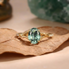 Oval Leafy Lab Green Sapphire Engagement Ring - Folium