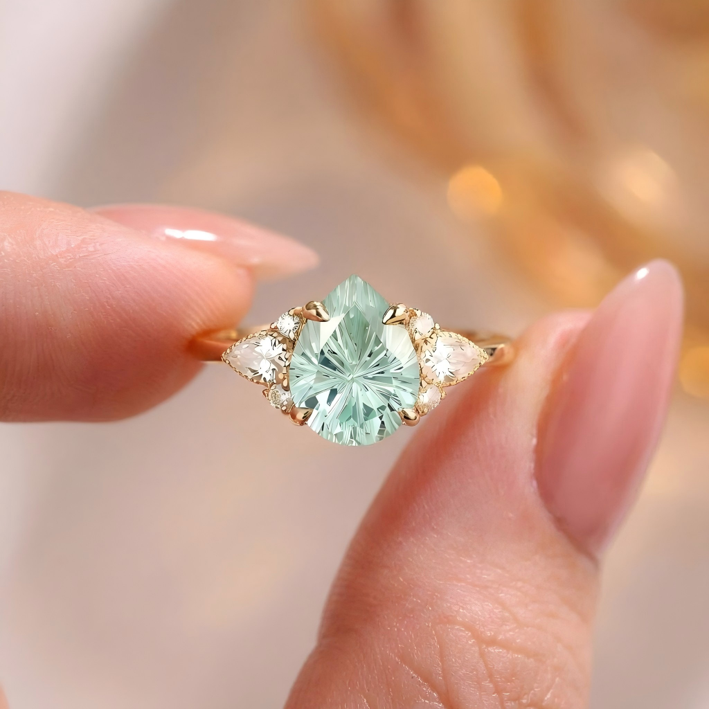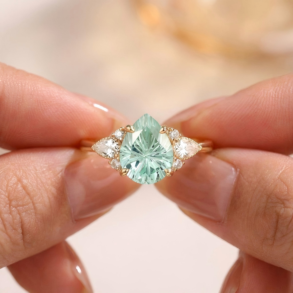 Pear Fireworks Cut Lab Green Sapphire Engagement Ring - Fructus