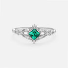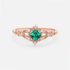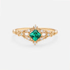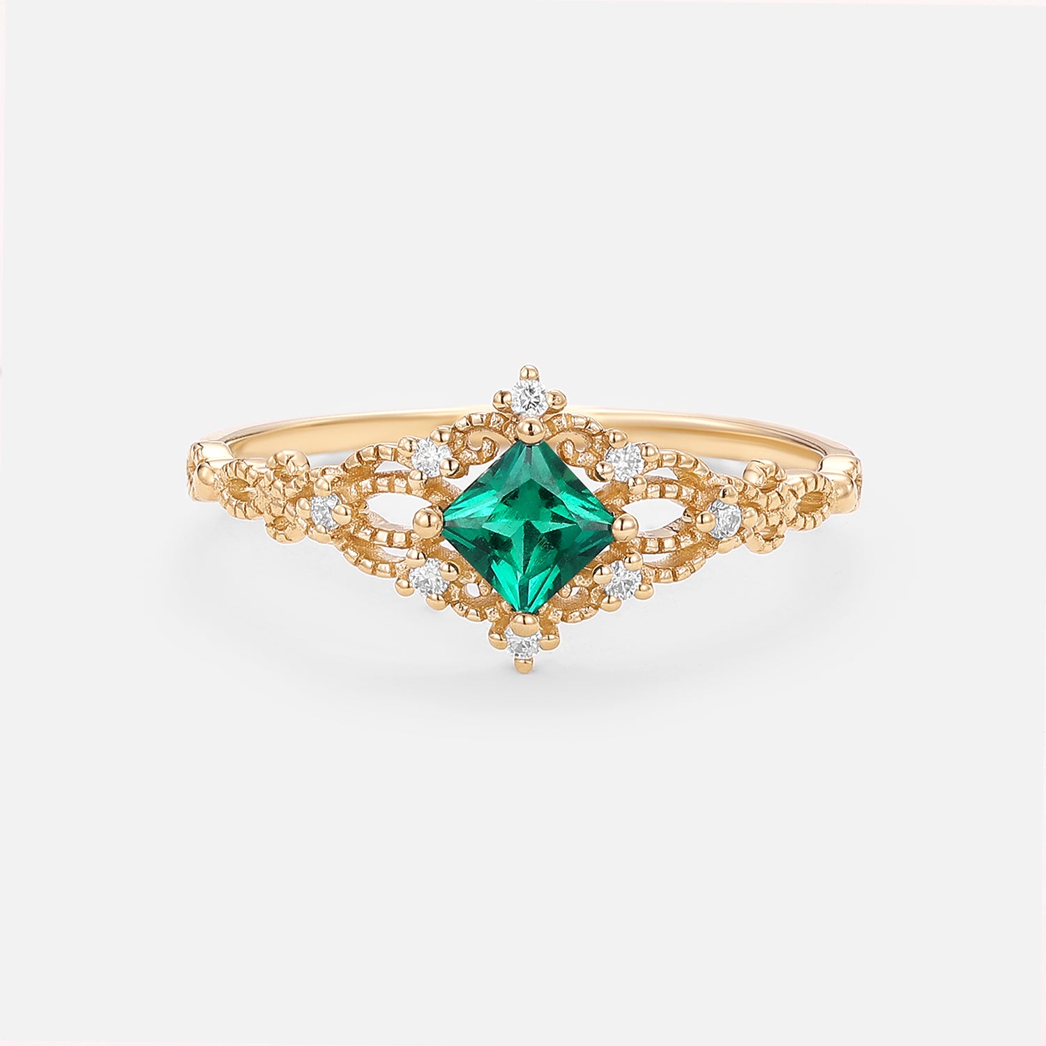 Felicegals 4mm Princess Cut Emerald Yellow Gold Ring Moissanite Milgrain Ring Birthstone Emerald Vintage Ring Anniversary Gift