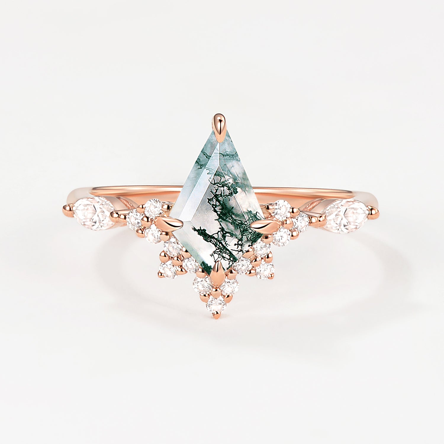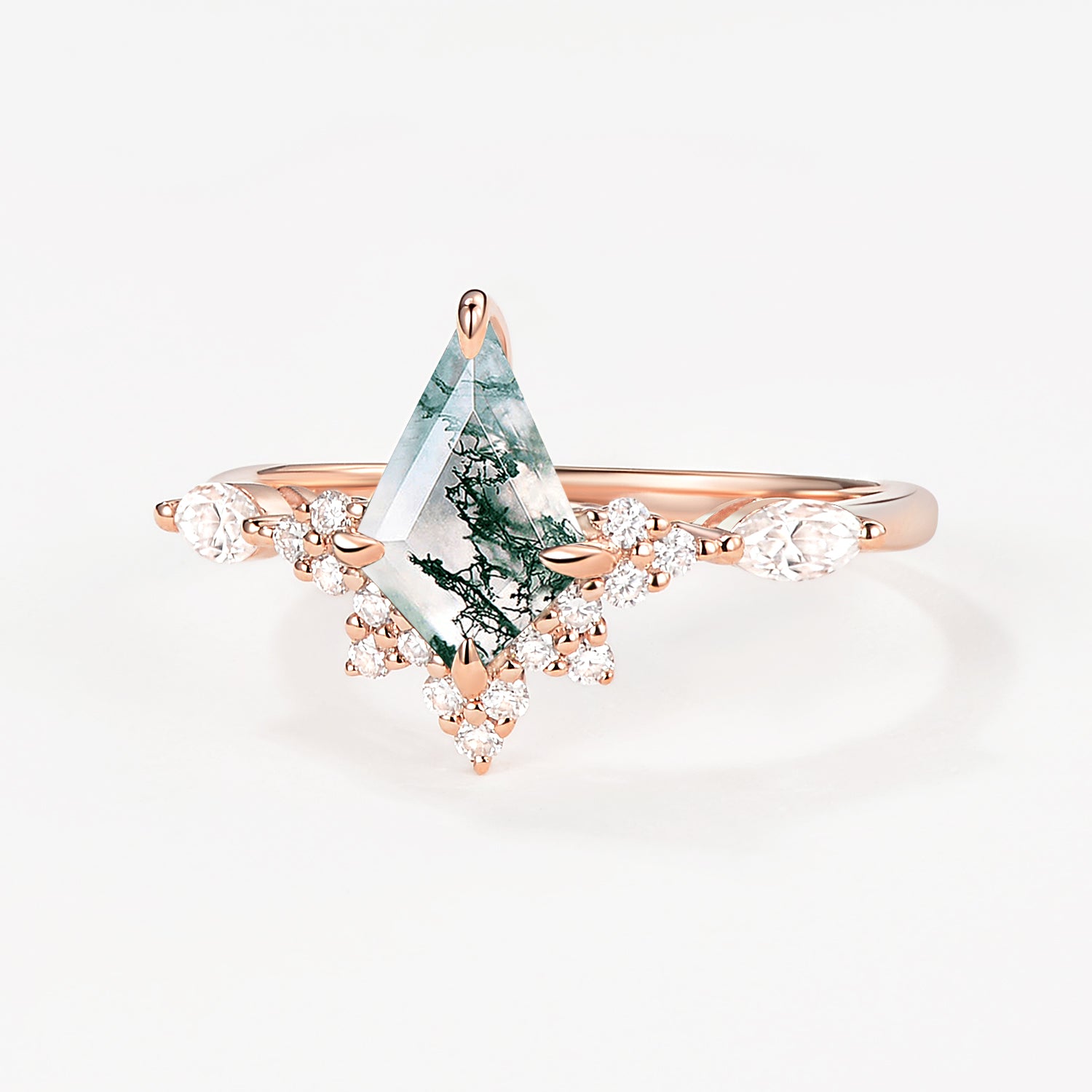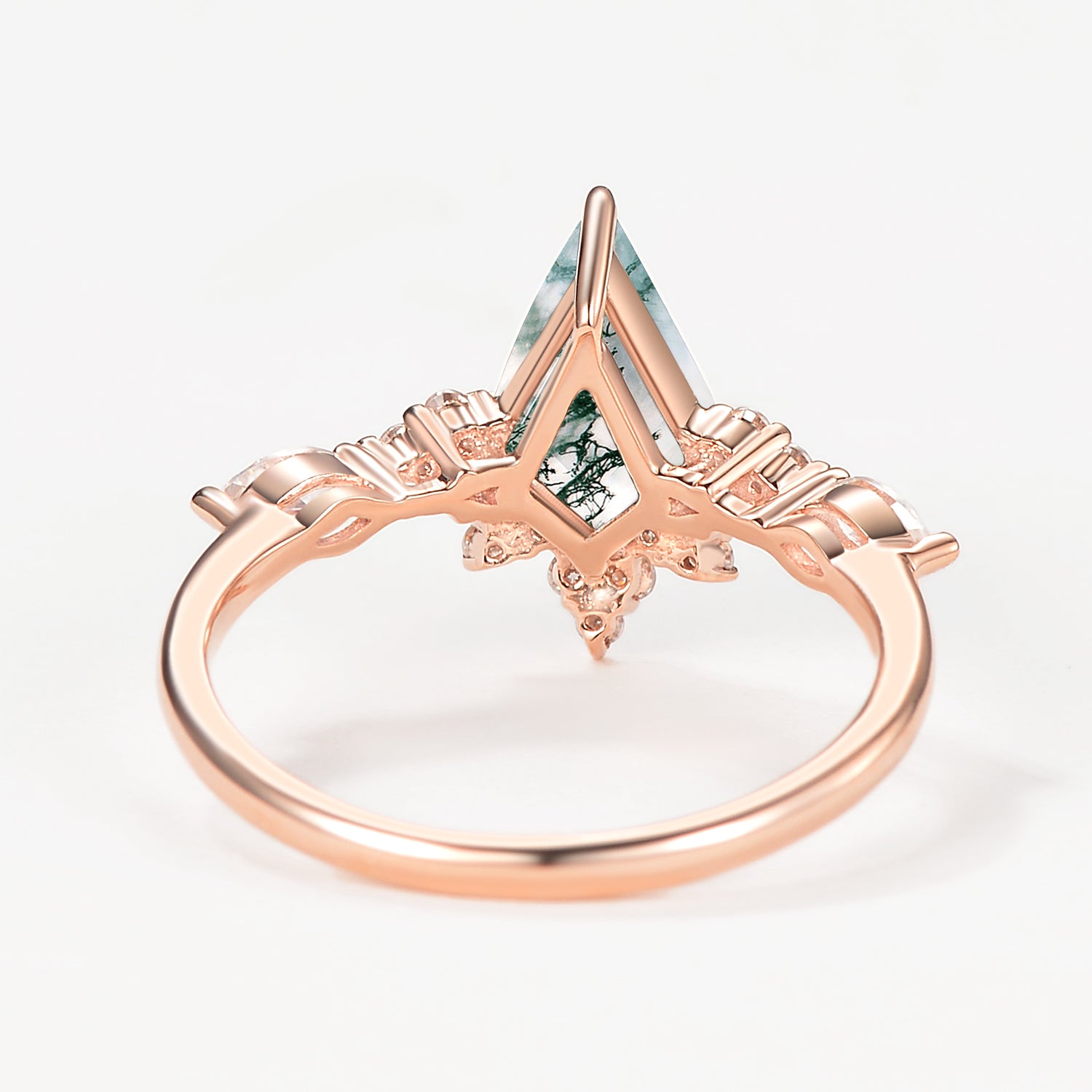 My fiancé proposed with this stunning ring on a romantic WV getaway in the mountains and it is absolutely GORGEOUS. Photos do not do it justice. The clarity of the moss agate stone is perfect and I love the accent of the stone that he customized and added to the wedding band! I love this ring so much! Thank you for creating such unique pieces for girls like me that prefer the non- traditional route!