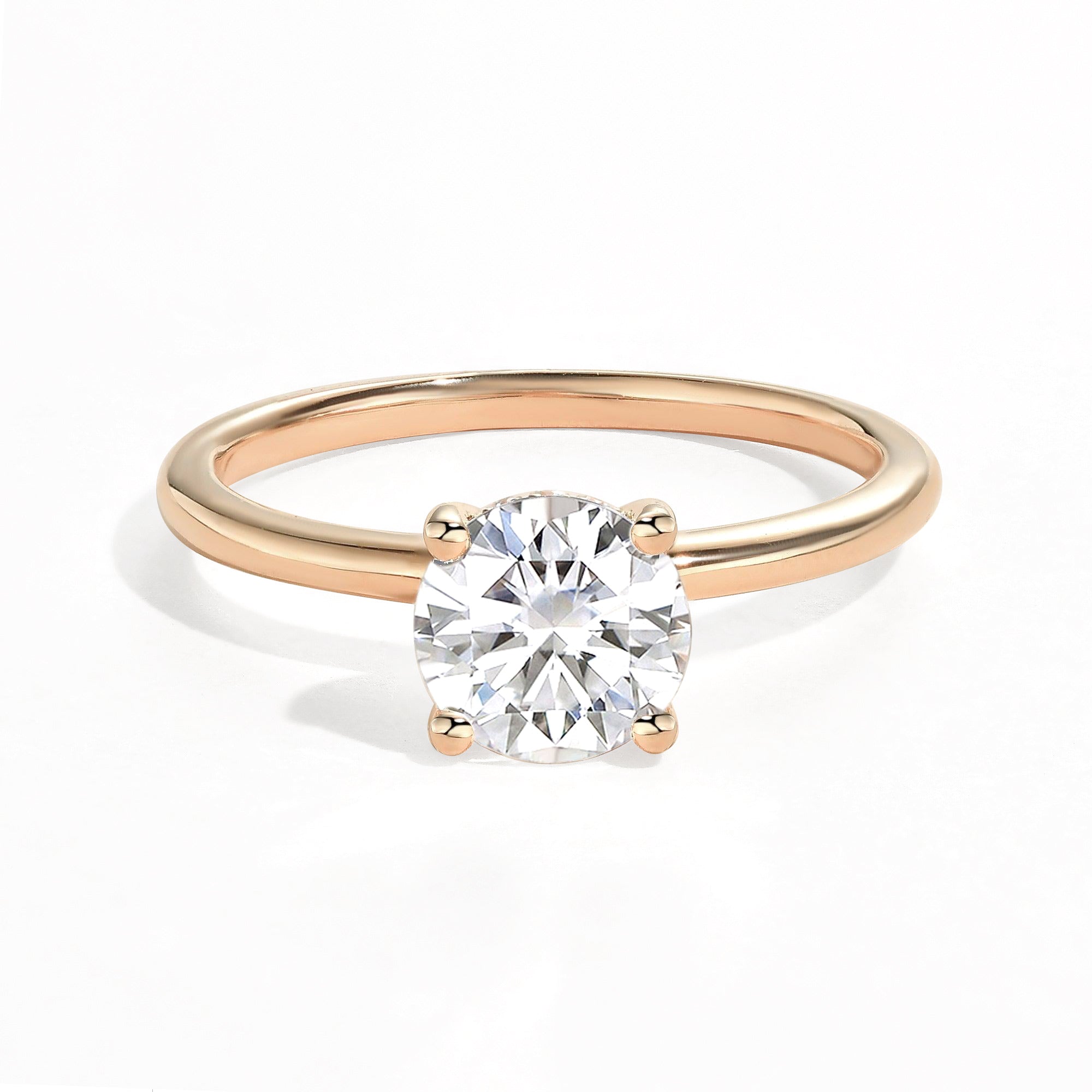 Felicegals 1.0ct Moissanite Round Cut Engagement Rose Gold Ring Solitaire Minimalist Wedding Ring Classic Four Prongs Unique Band Annversary Gift For Her