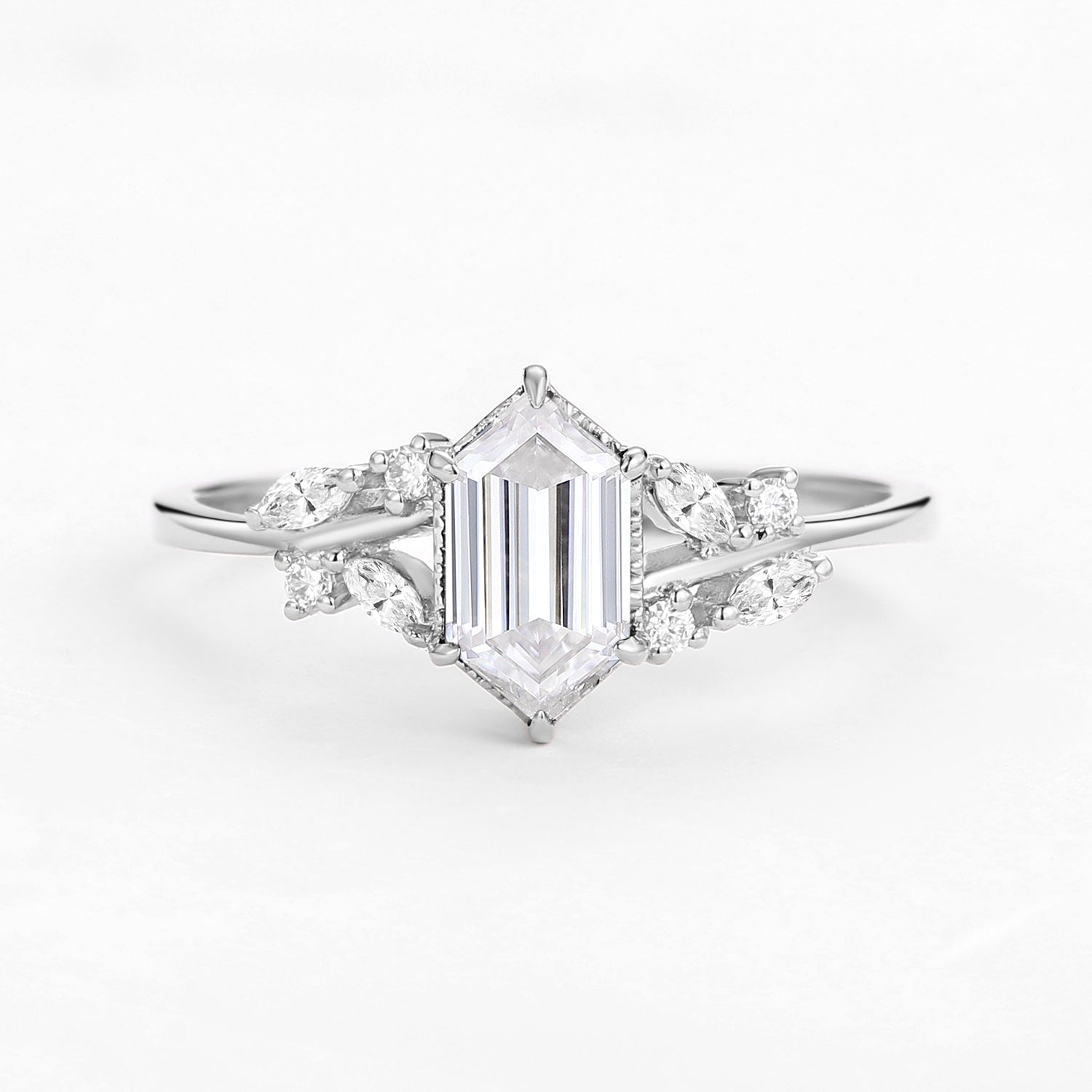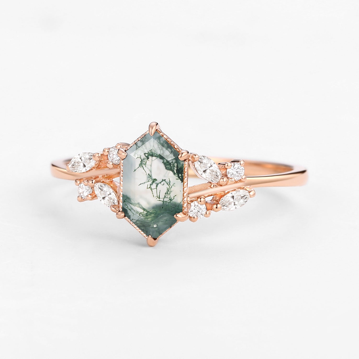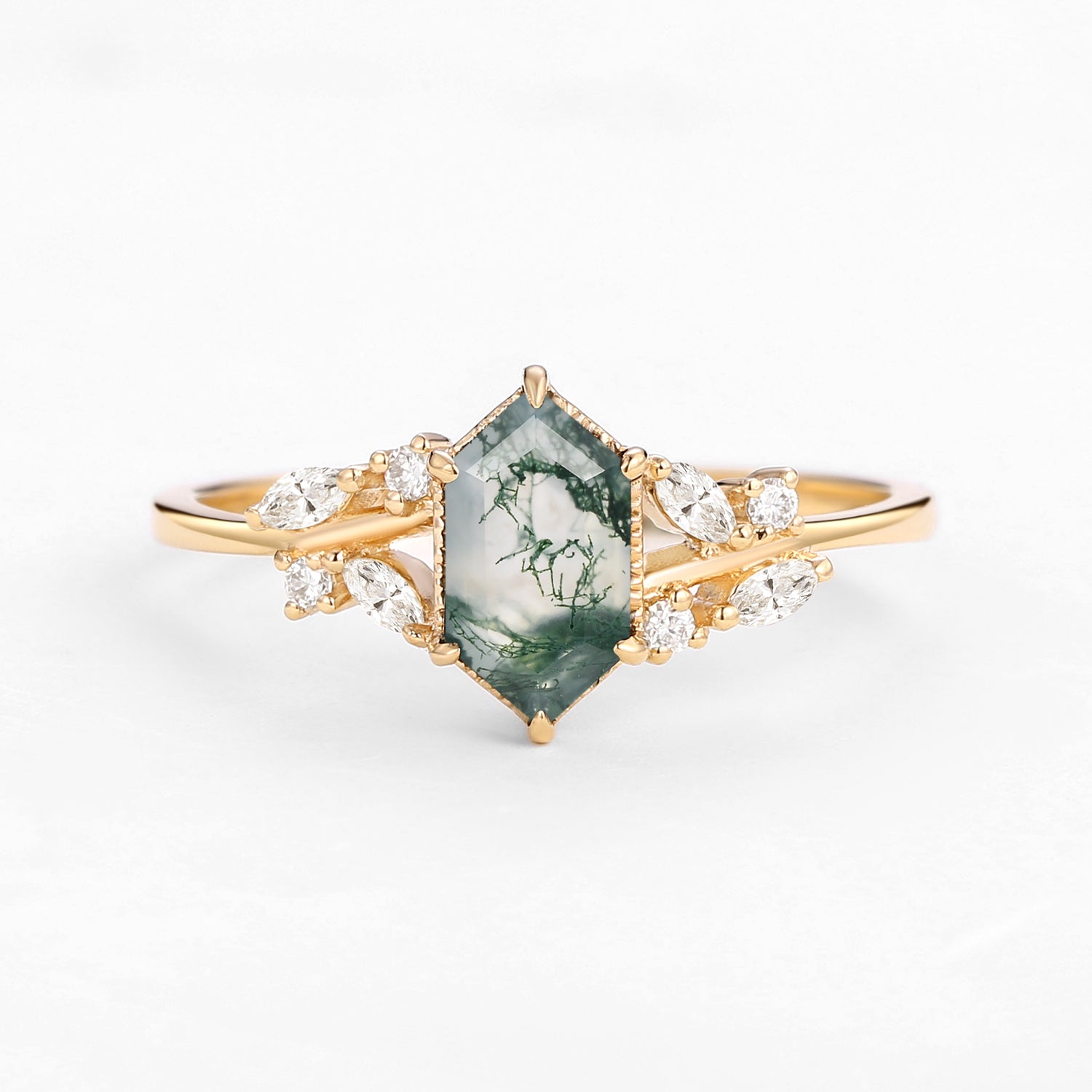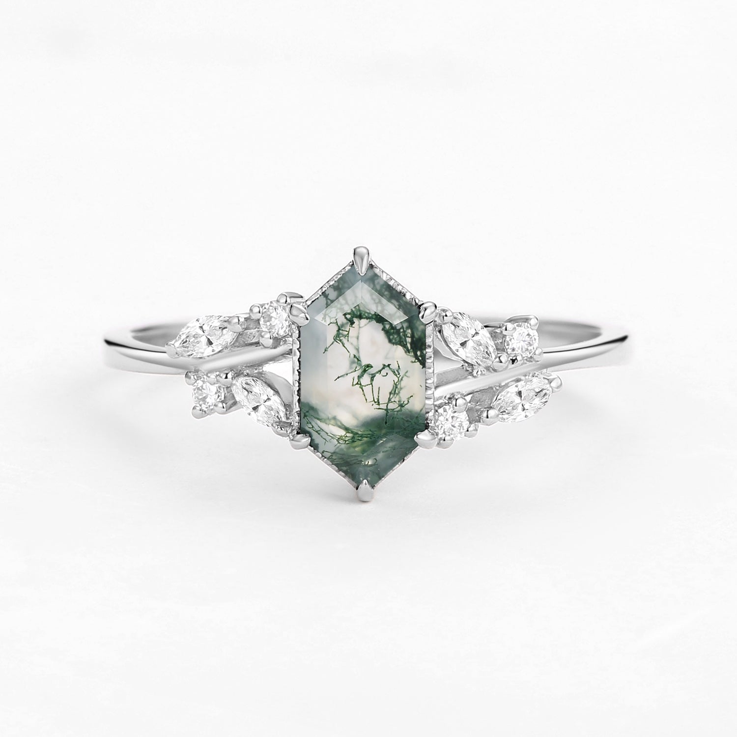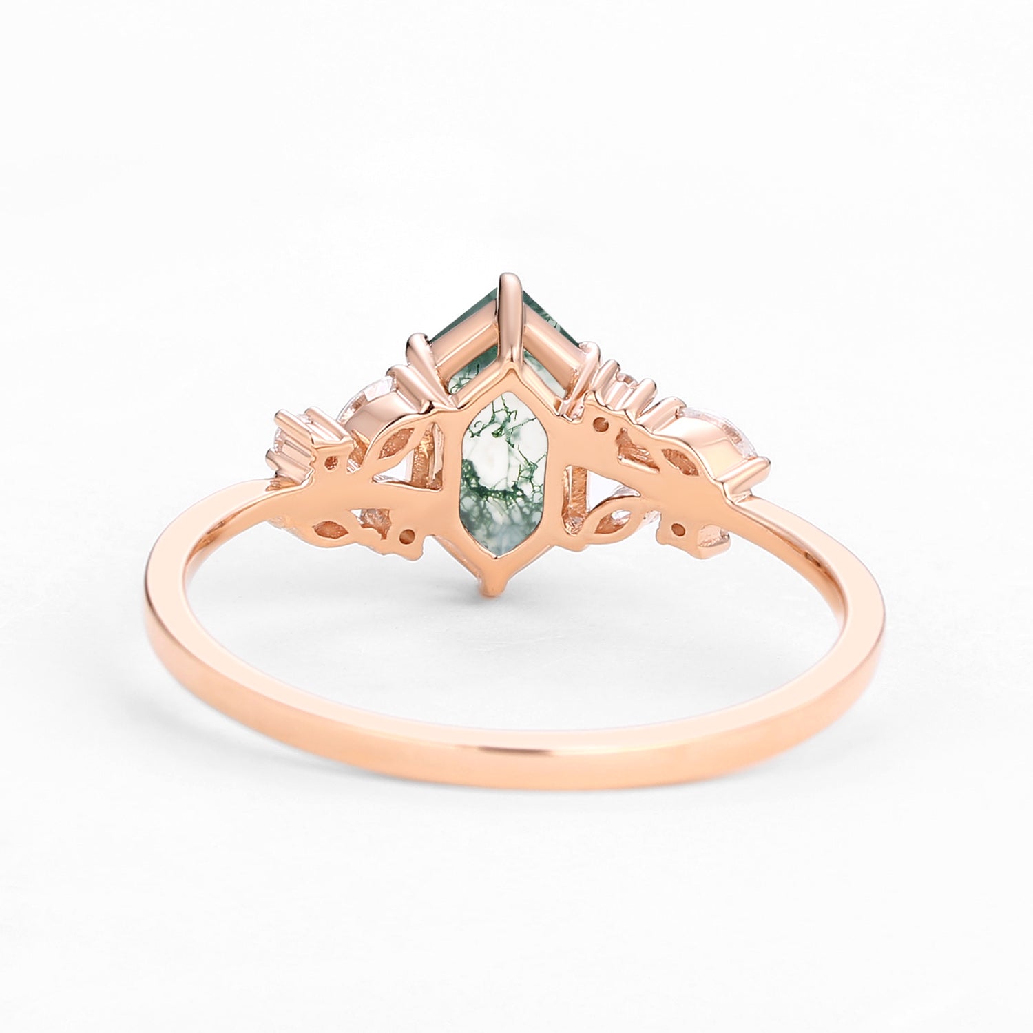 1.5ct Hexagon Moss Agate Leafy Moissanite Vintage Engagement Ring