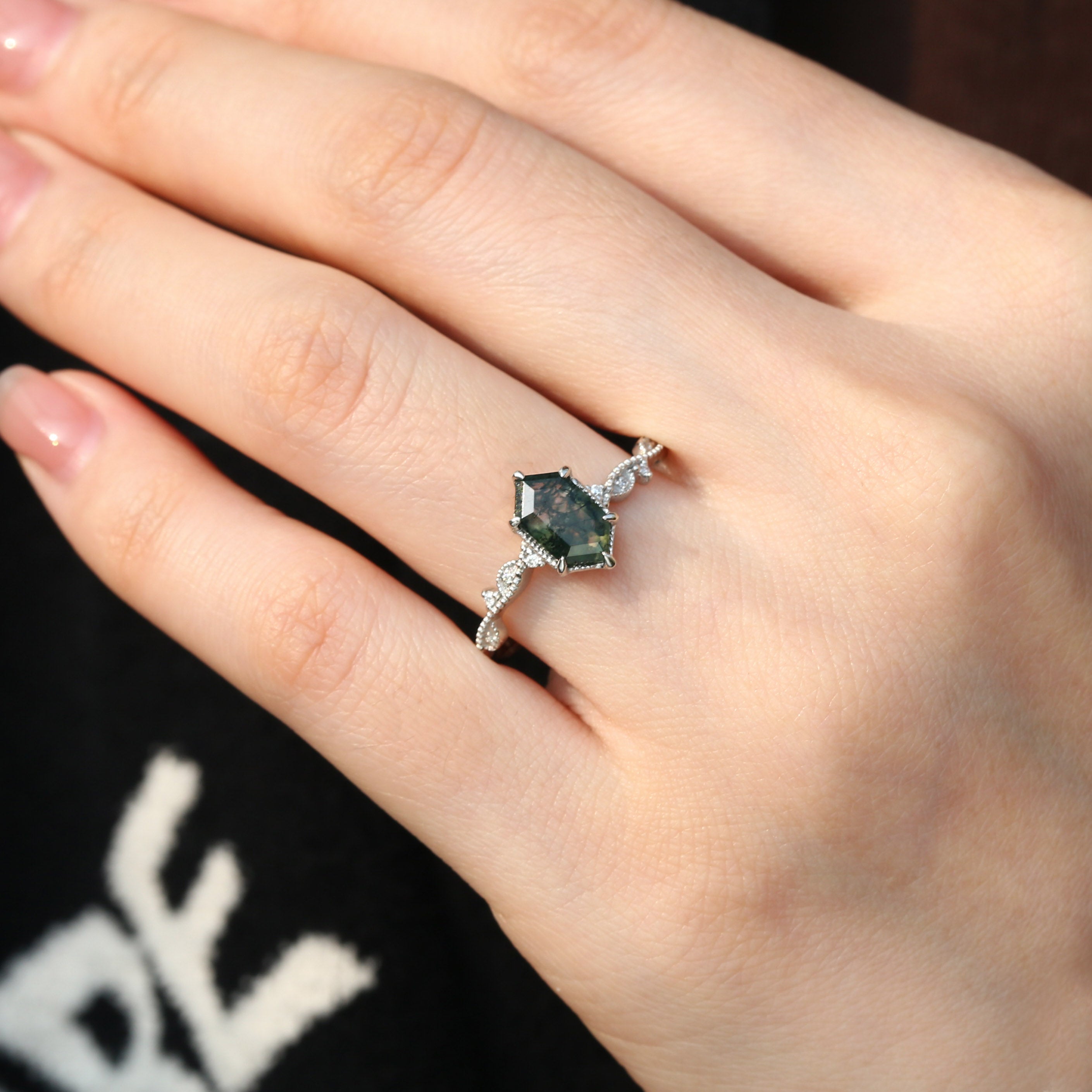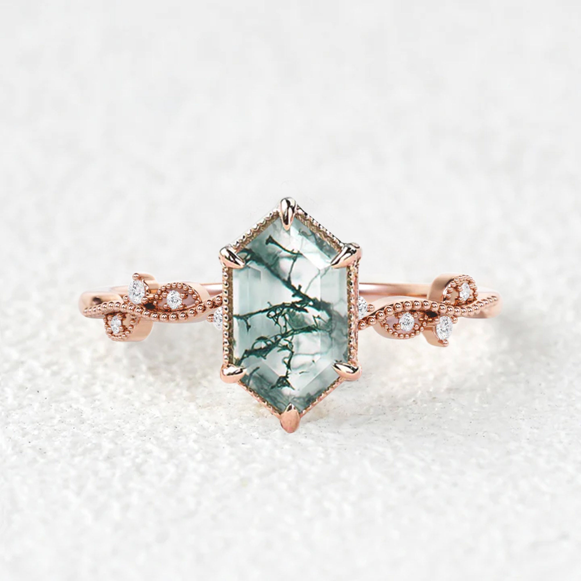 1.5ct Hexagon Moss Agate Vintage Vintage Ring