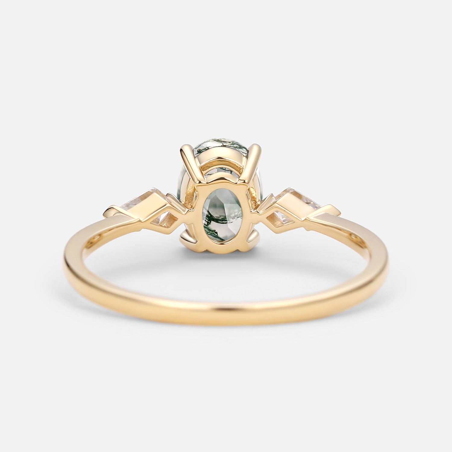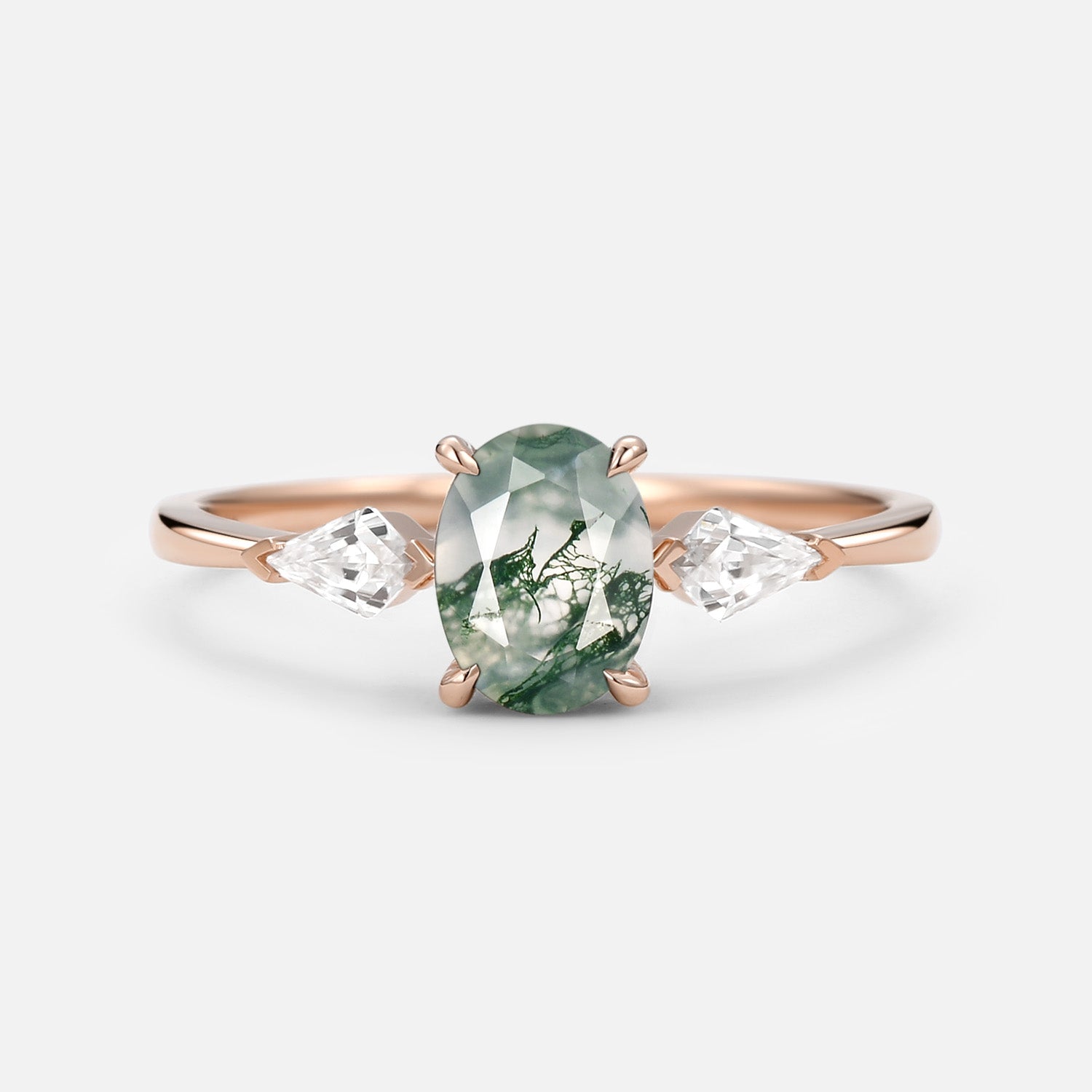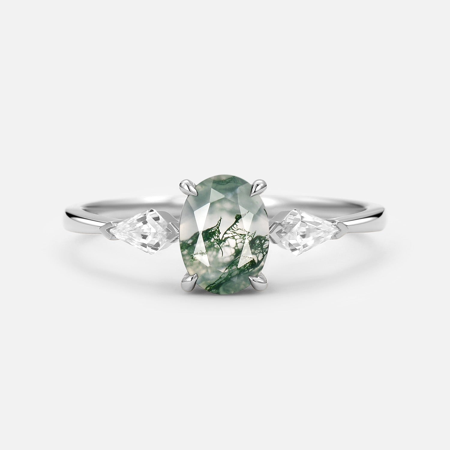 1.5ct Oval Moss Agate Three Stones Engagement Ring