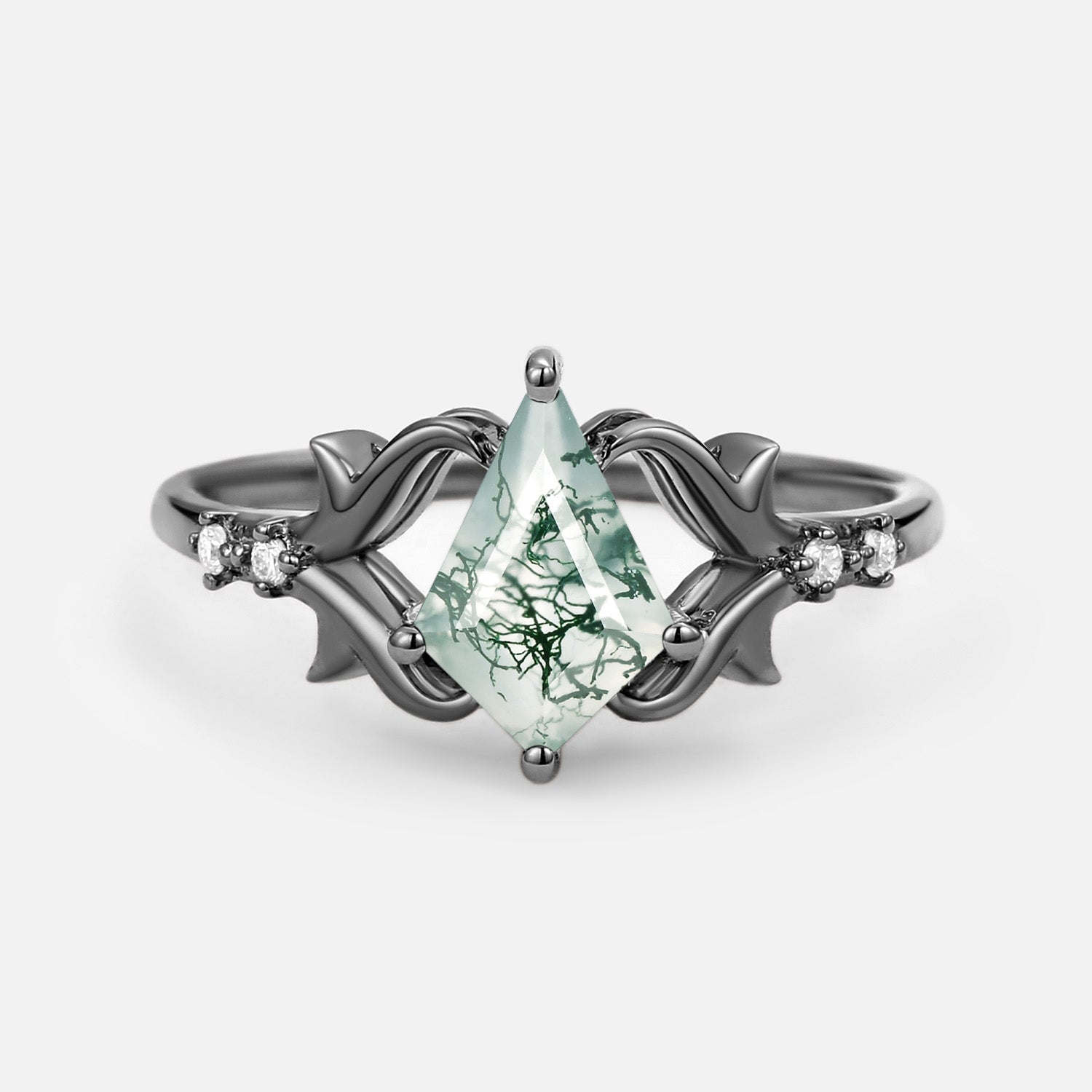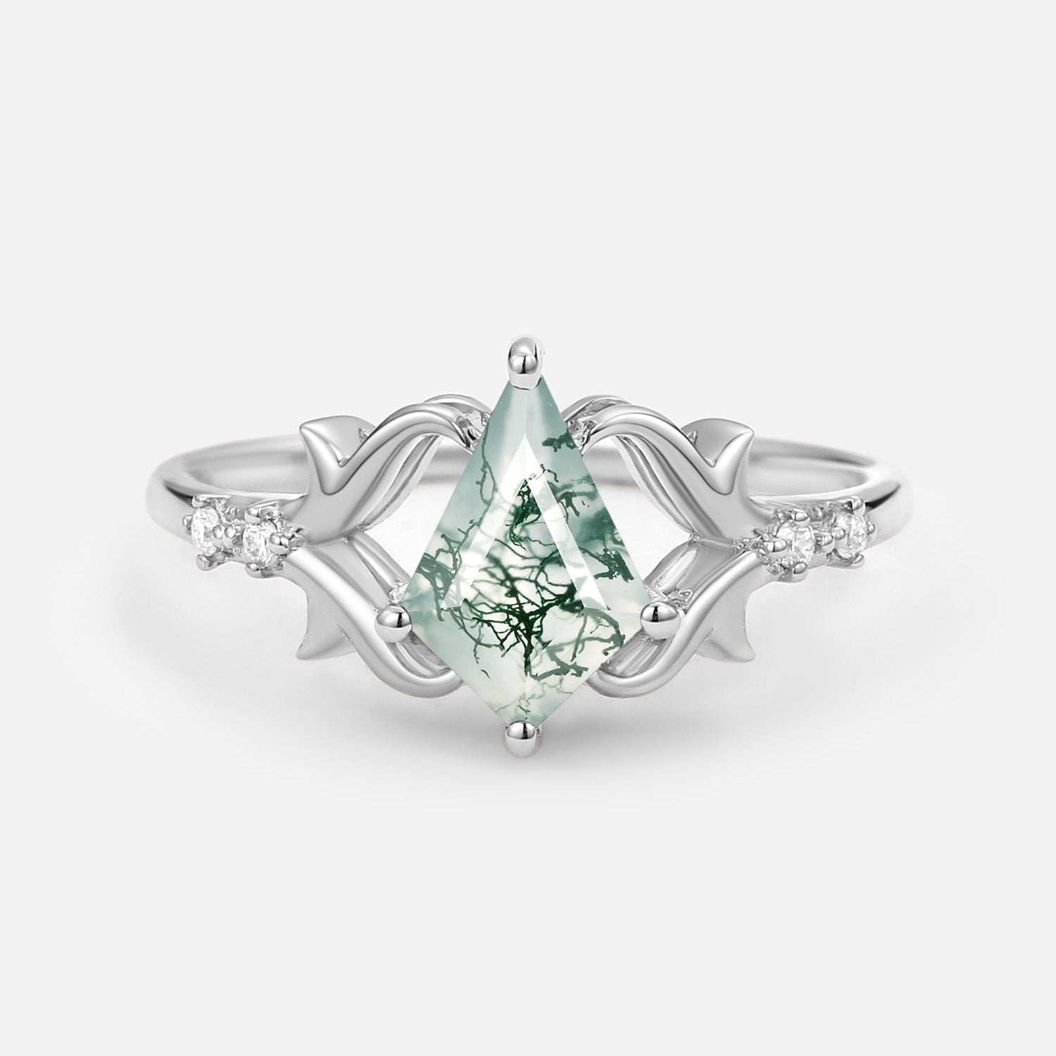 Elegant Kite Cut Moss Agate Engagement Ring - Tendril
