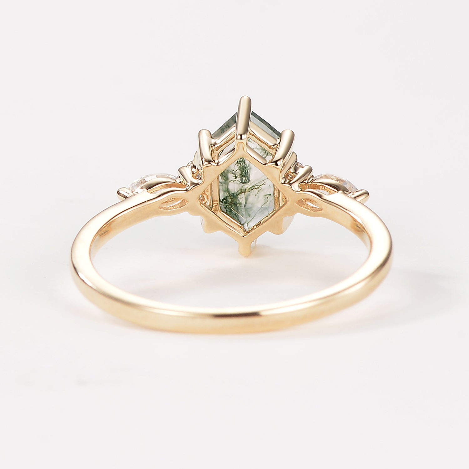 Hexagon Moss Agate Minimalist Marquise Engagement Ring Geometric Unique Engagement Ring
