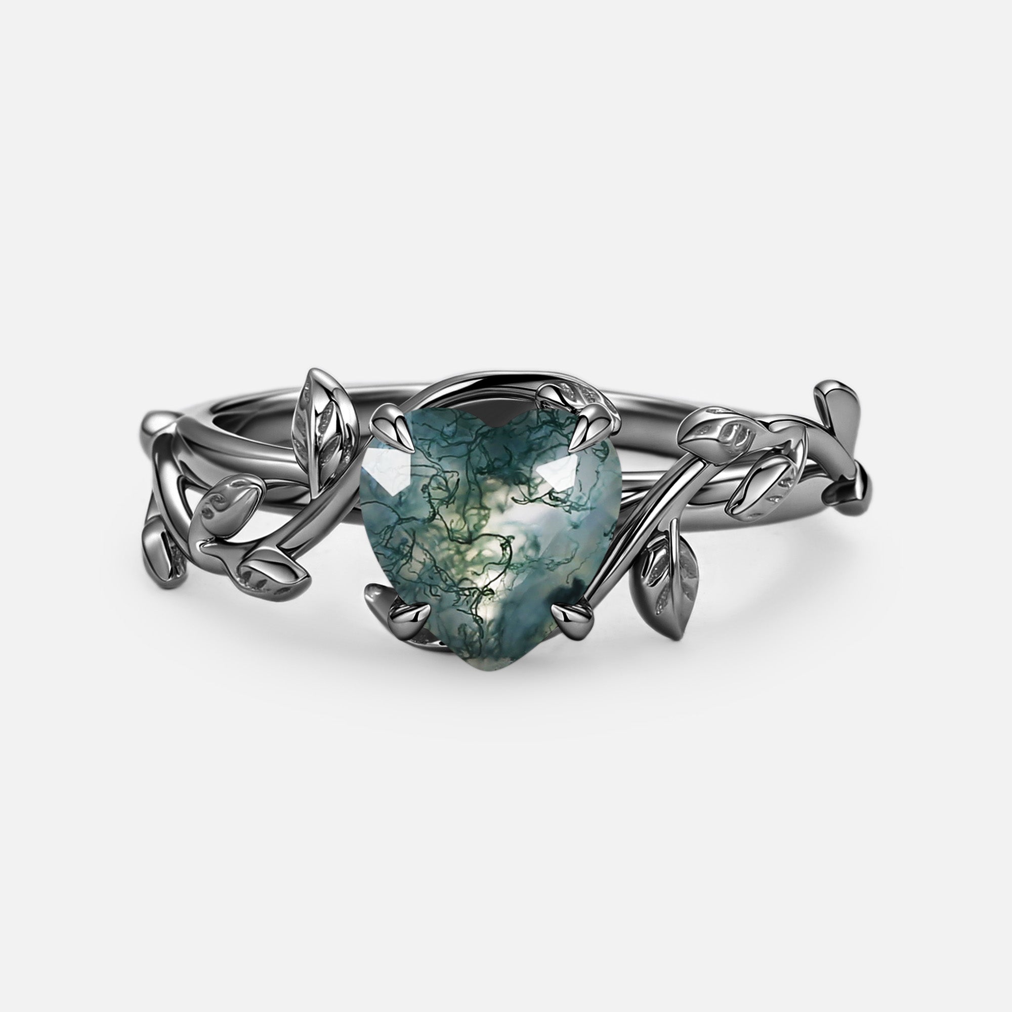 Heart Shaped Natural Moss Agate Engagement Ring - Emily