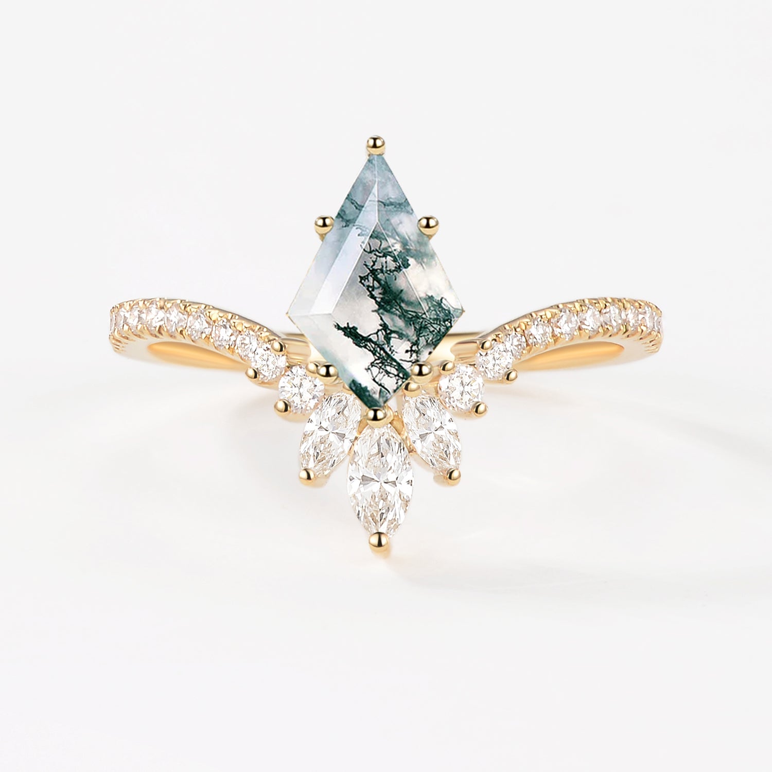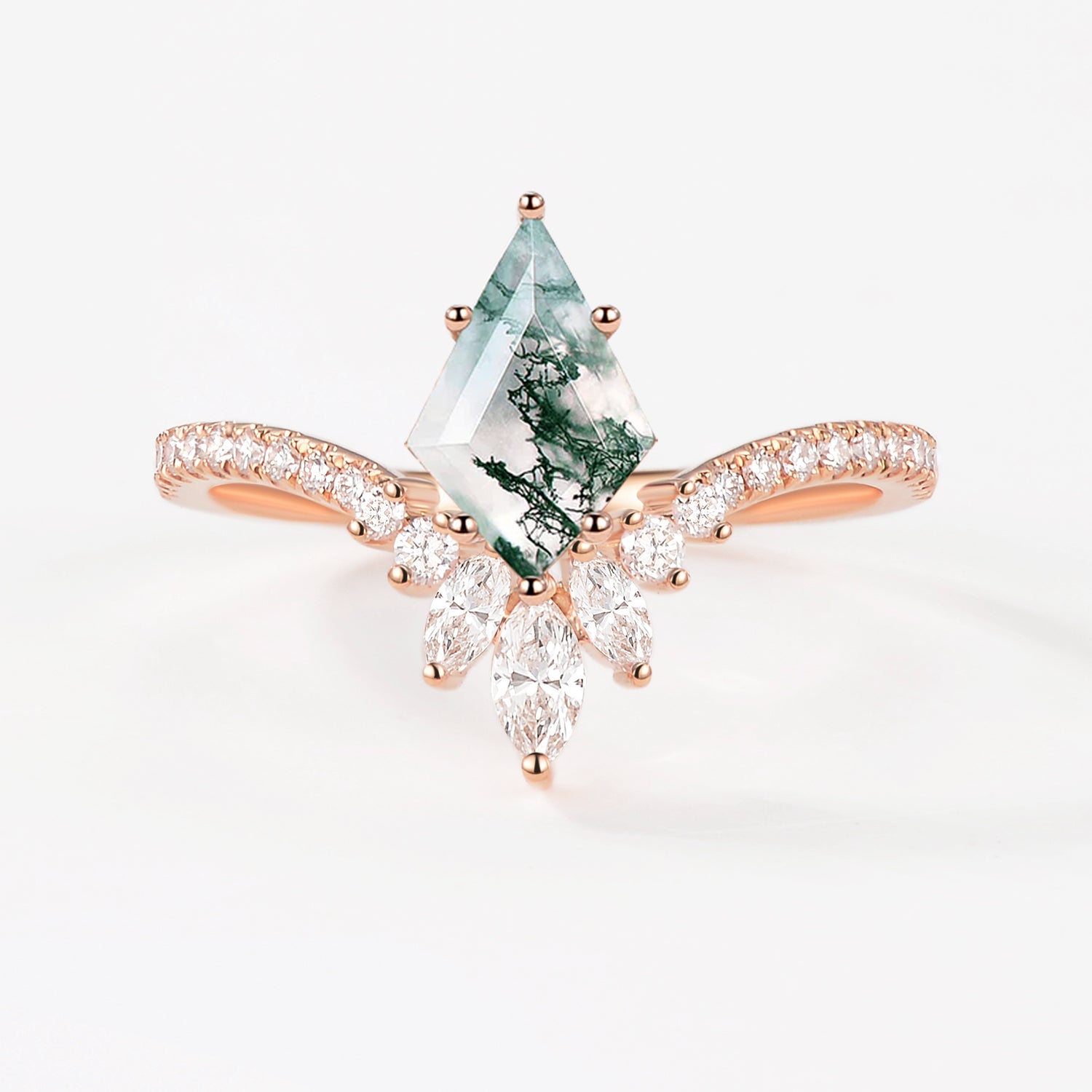 Kite Cut Moss Agate Chevron Engagement Ring - Sylph