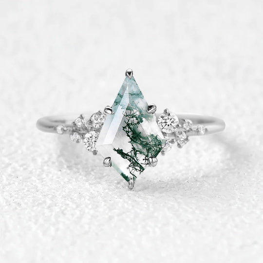 Large Kite Cut Moss Agate Stacking White Gold Ring