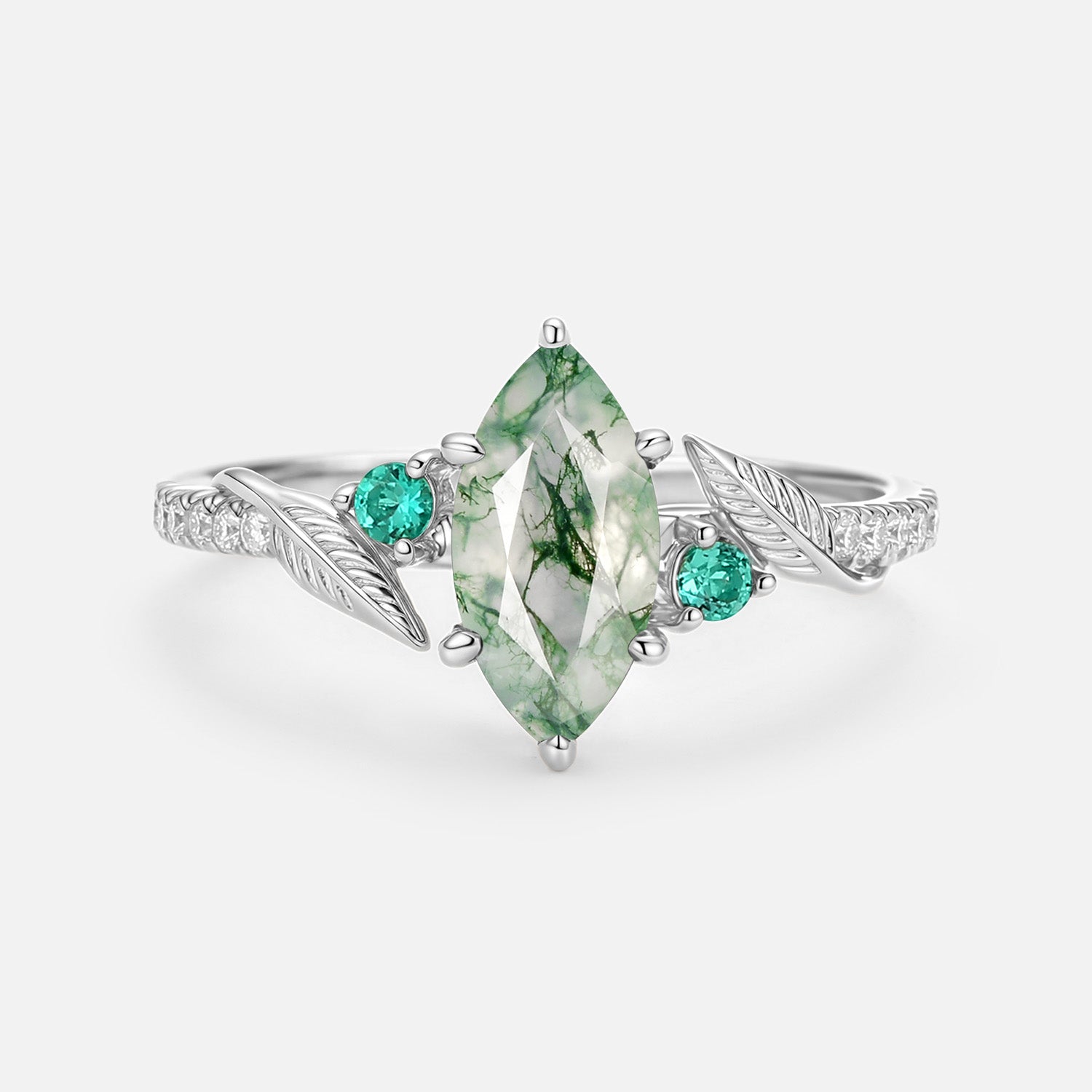 Moss Agate Marquise Leafy Vintage Engagement Ring - Aspen