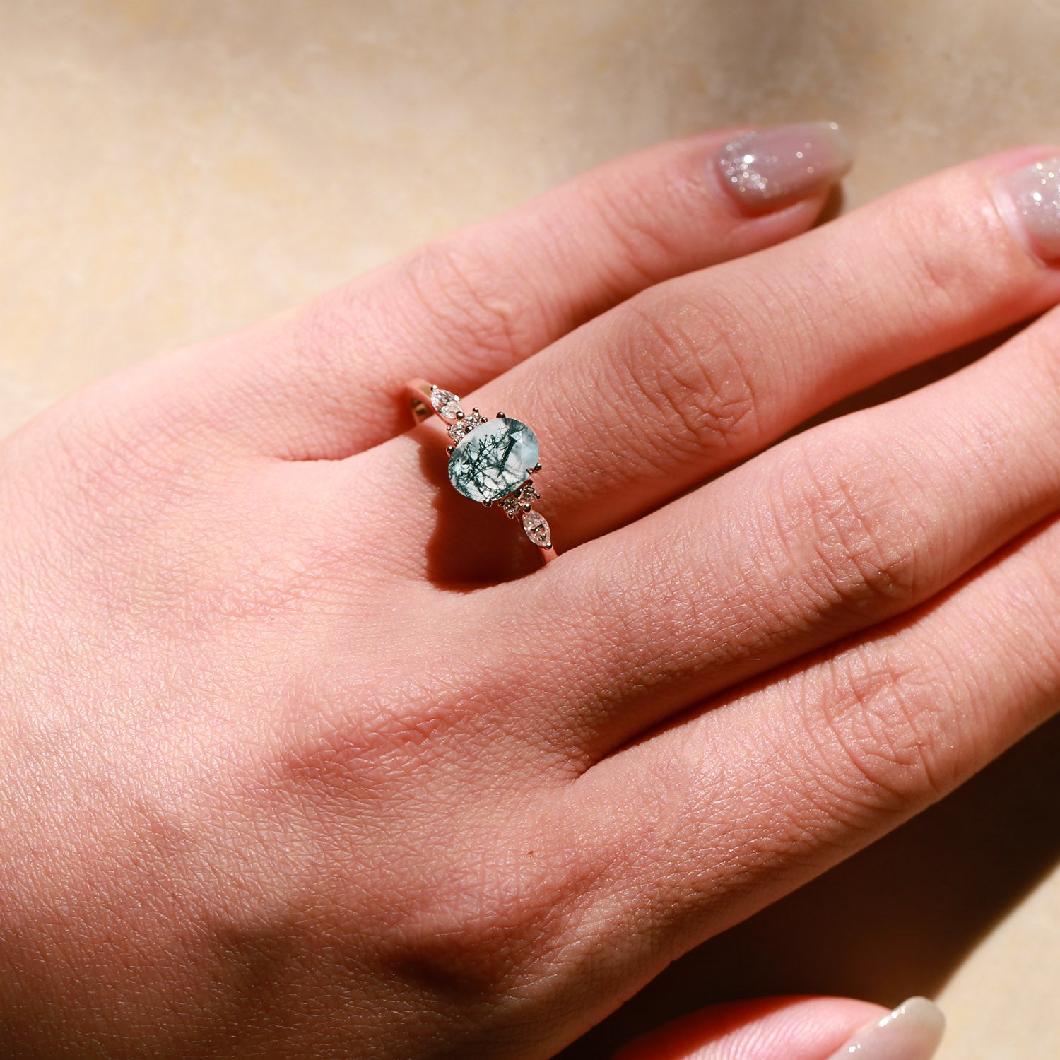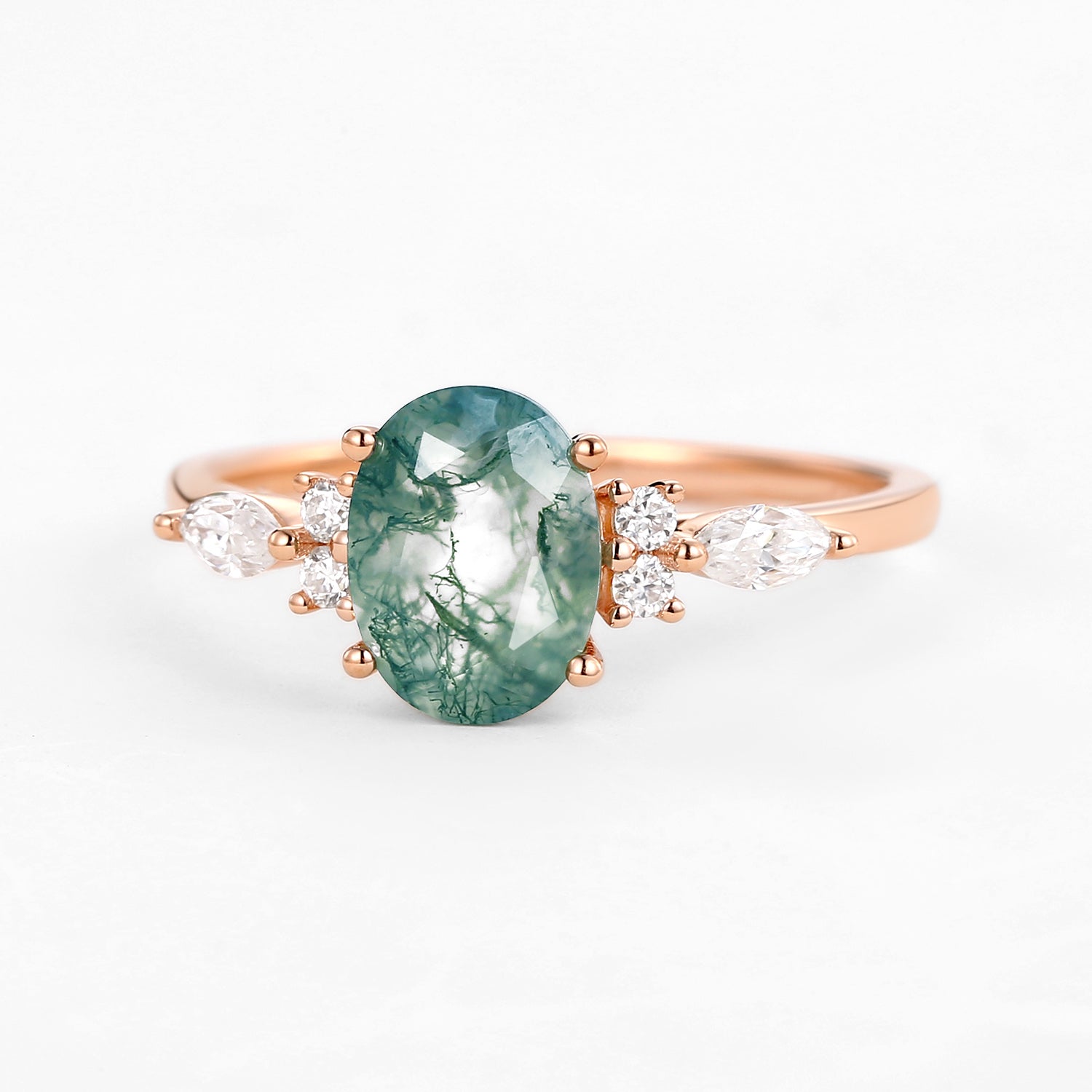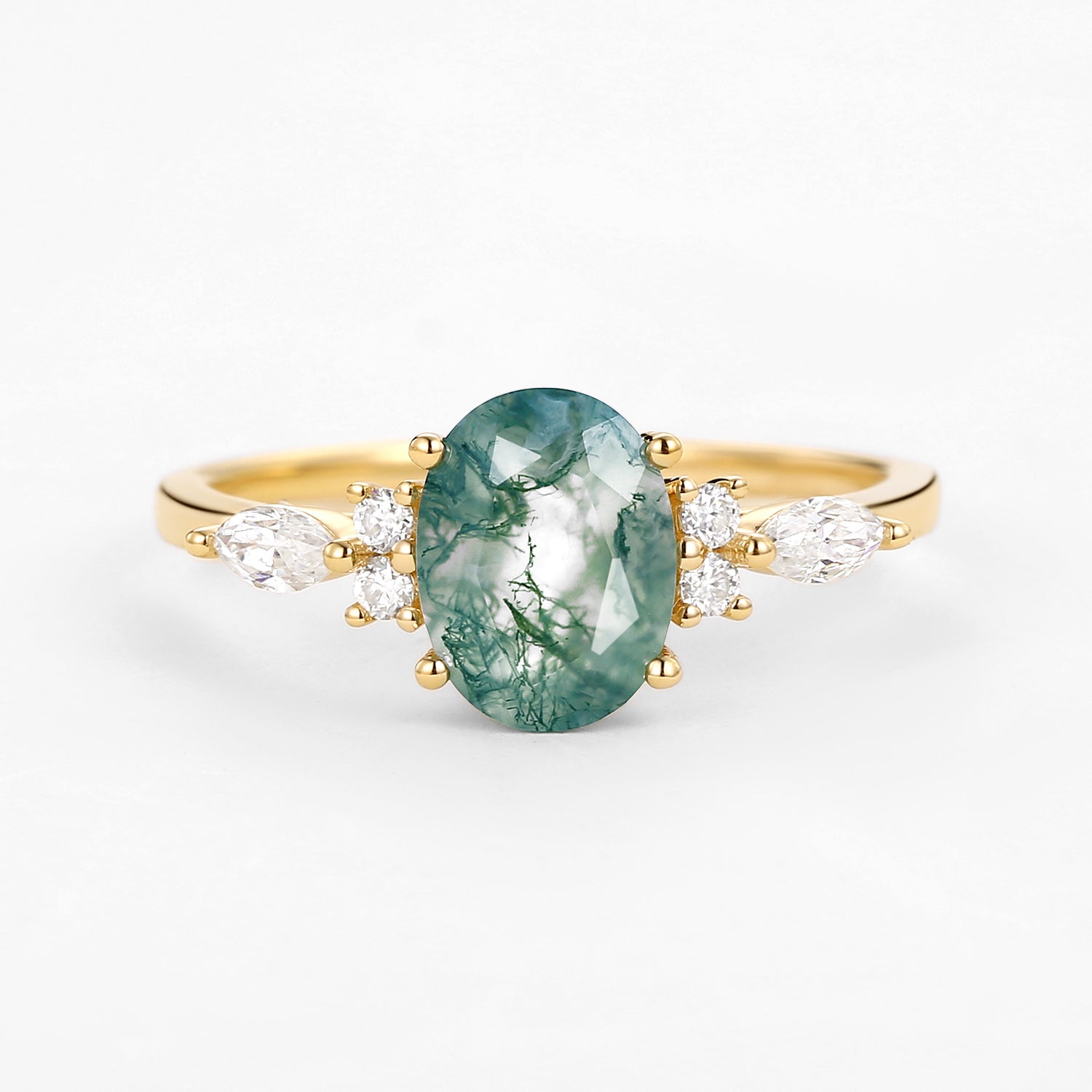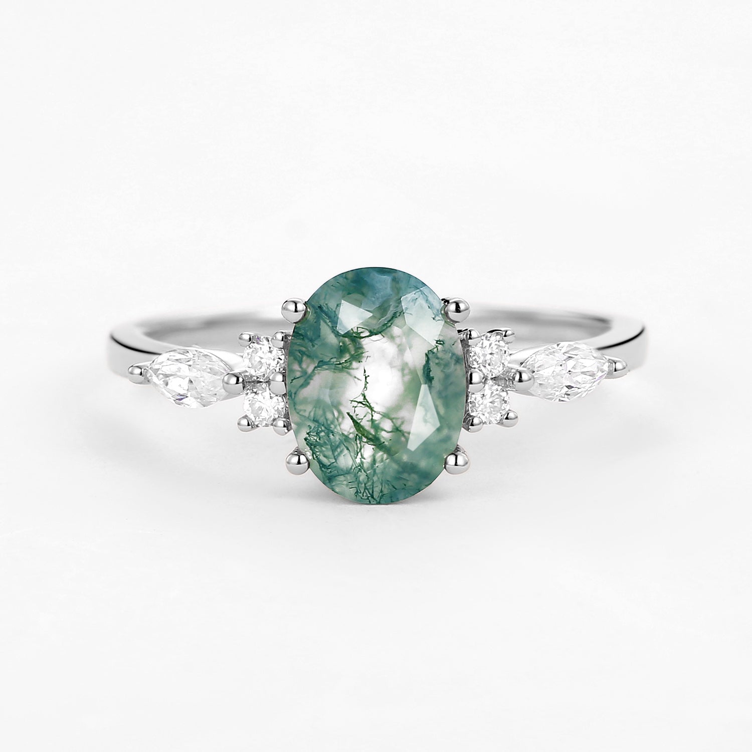 Oval Moss Agate Classic Engagement Ring