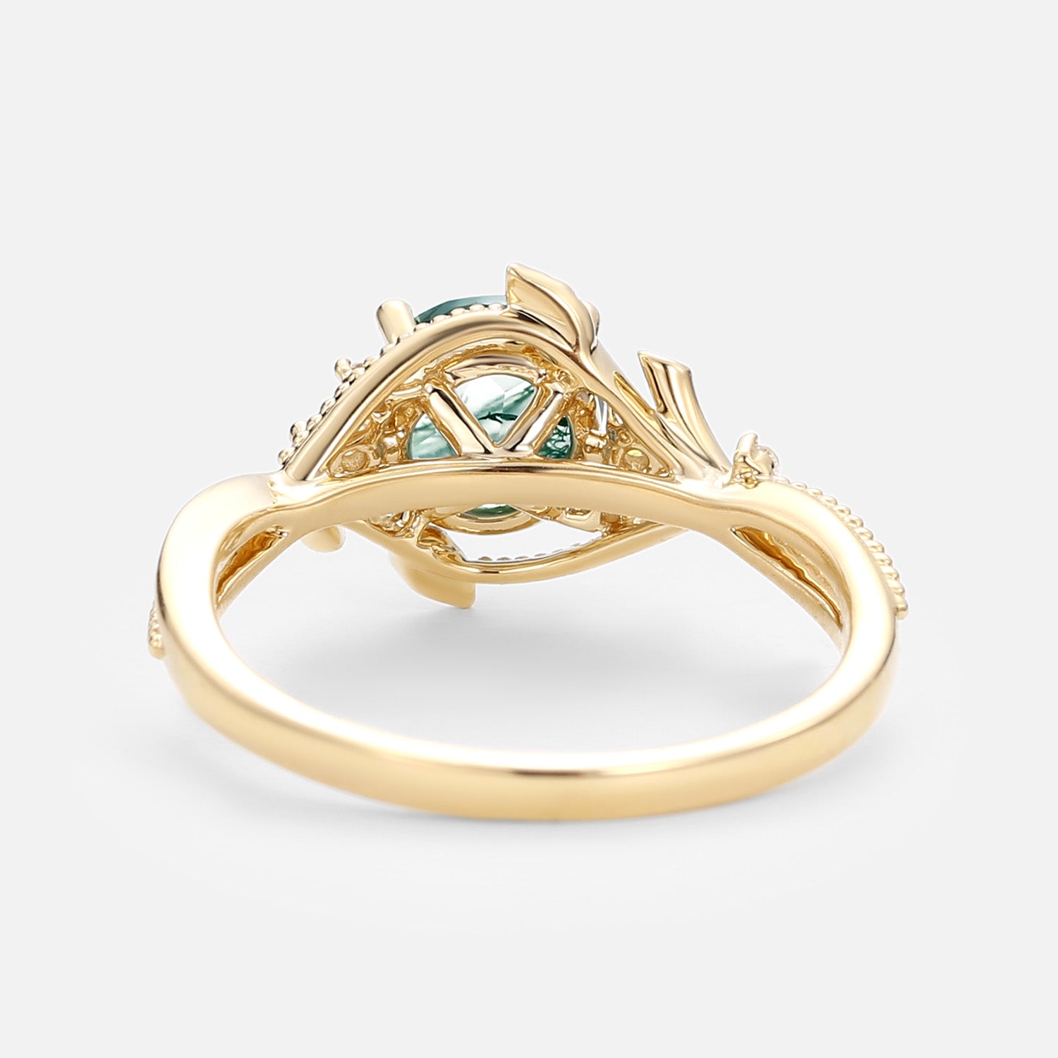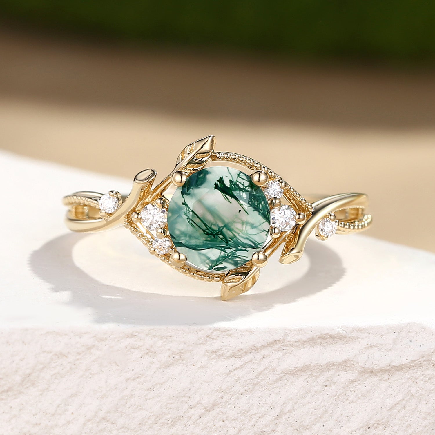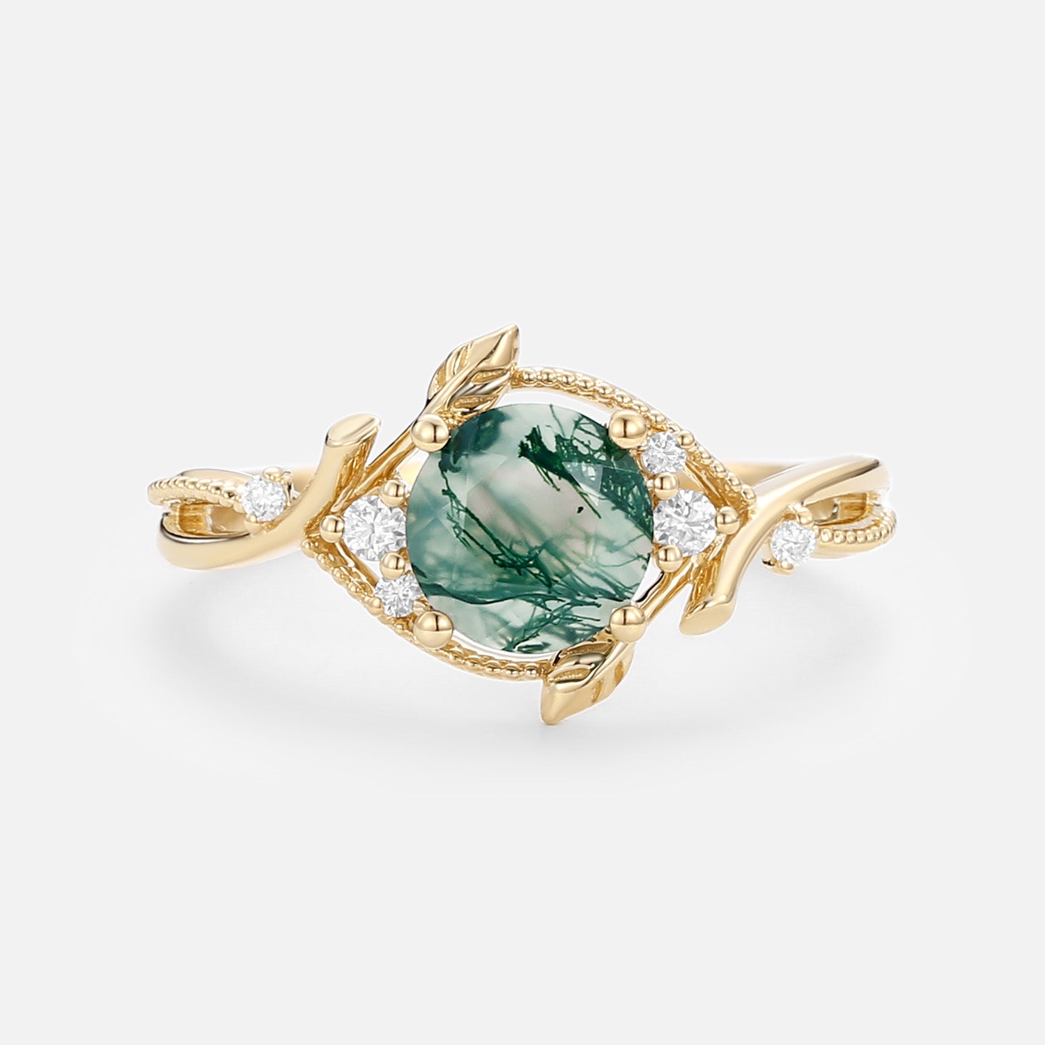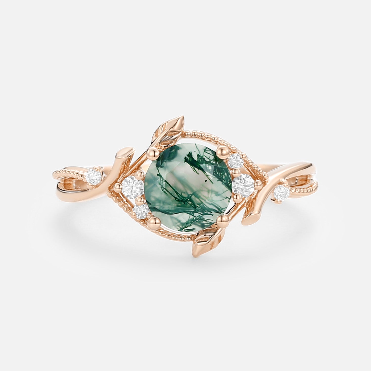 Round Leaf Moss Agate Twist Engagement Ring - Vyrra