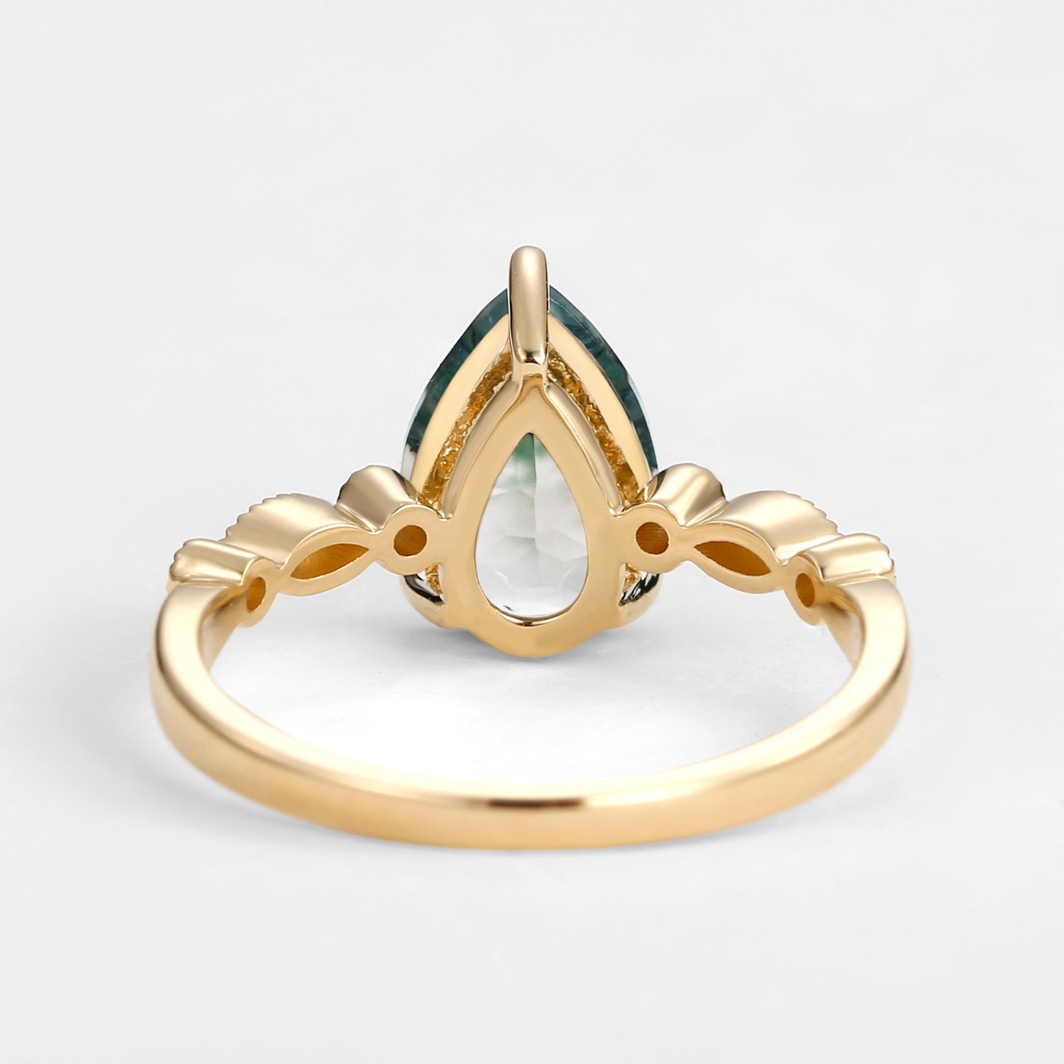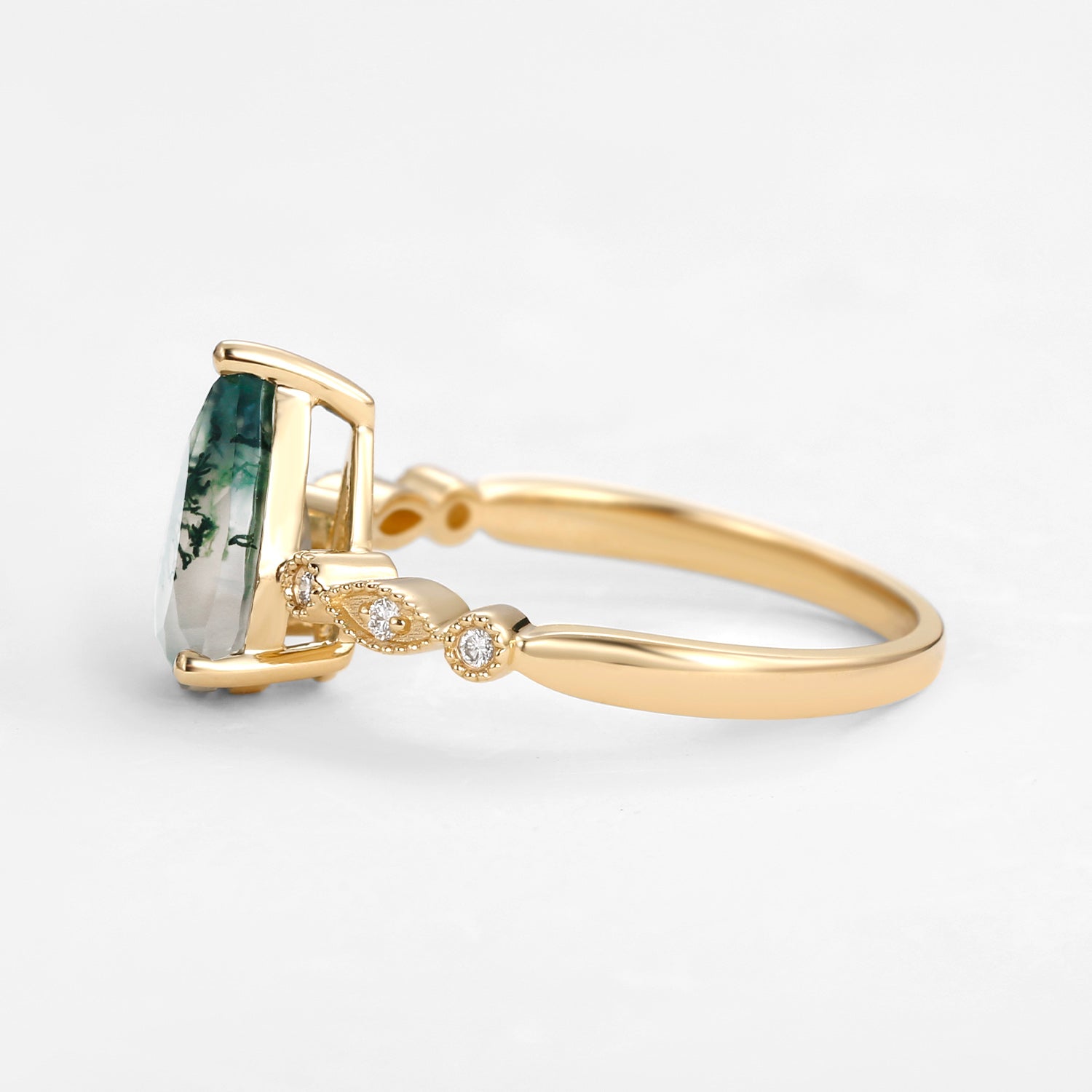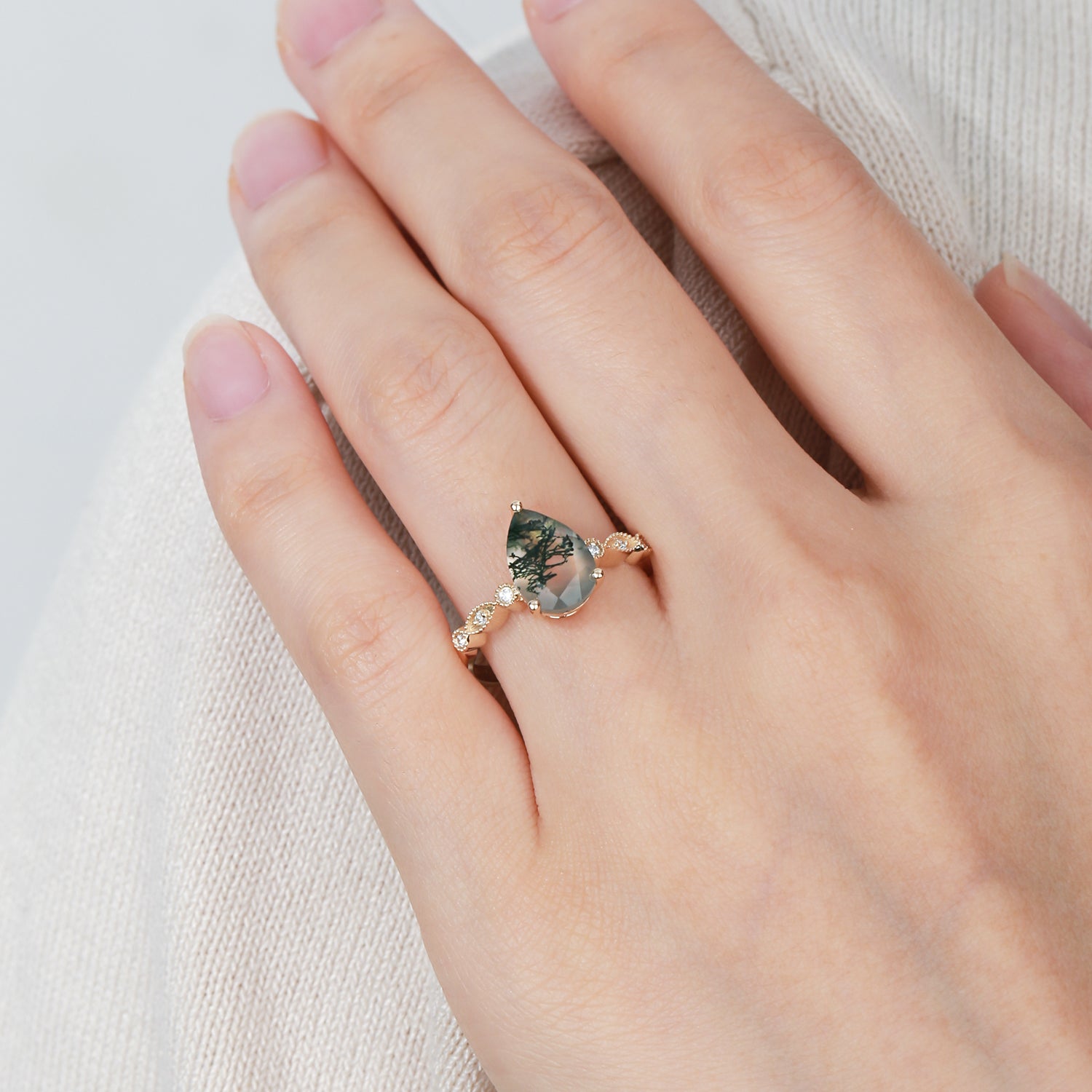 Unique Inspired Pear Shaped Moss Agate Engagement Ring