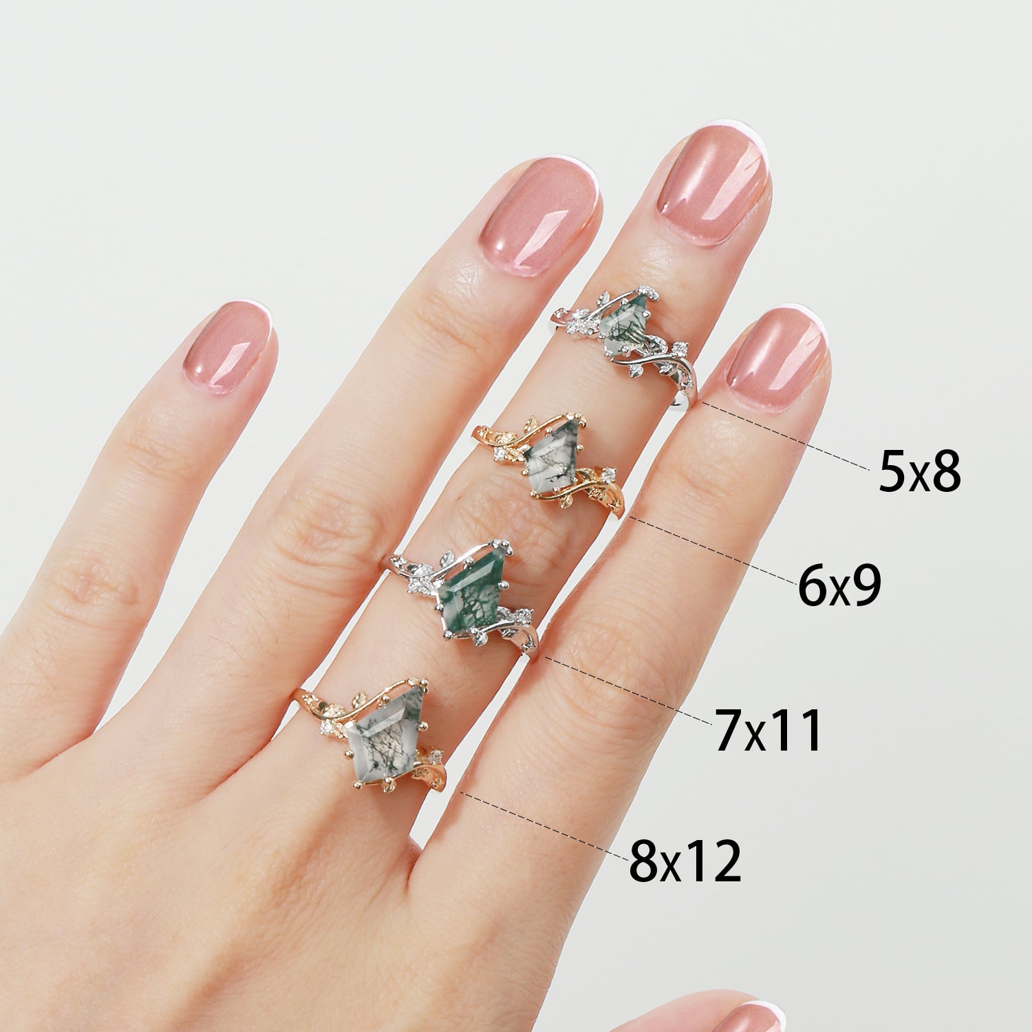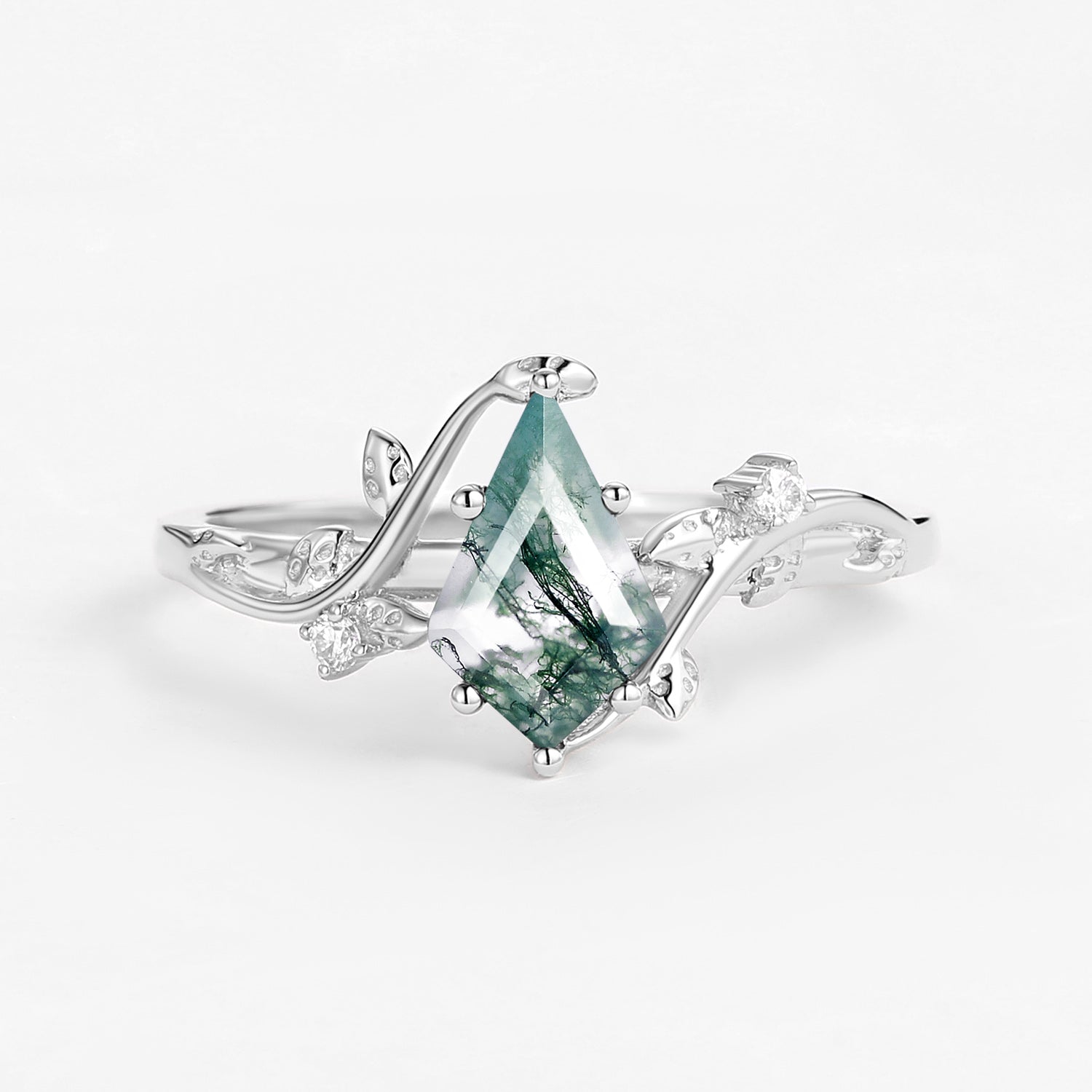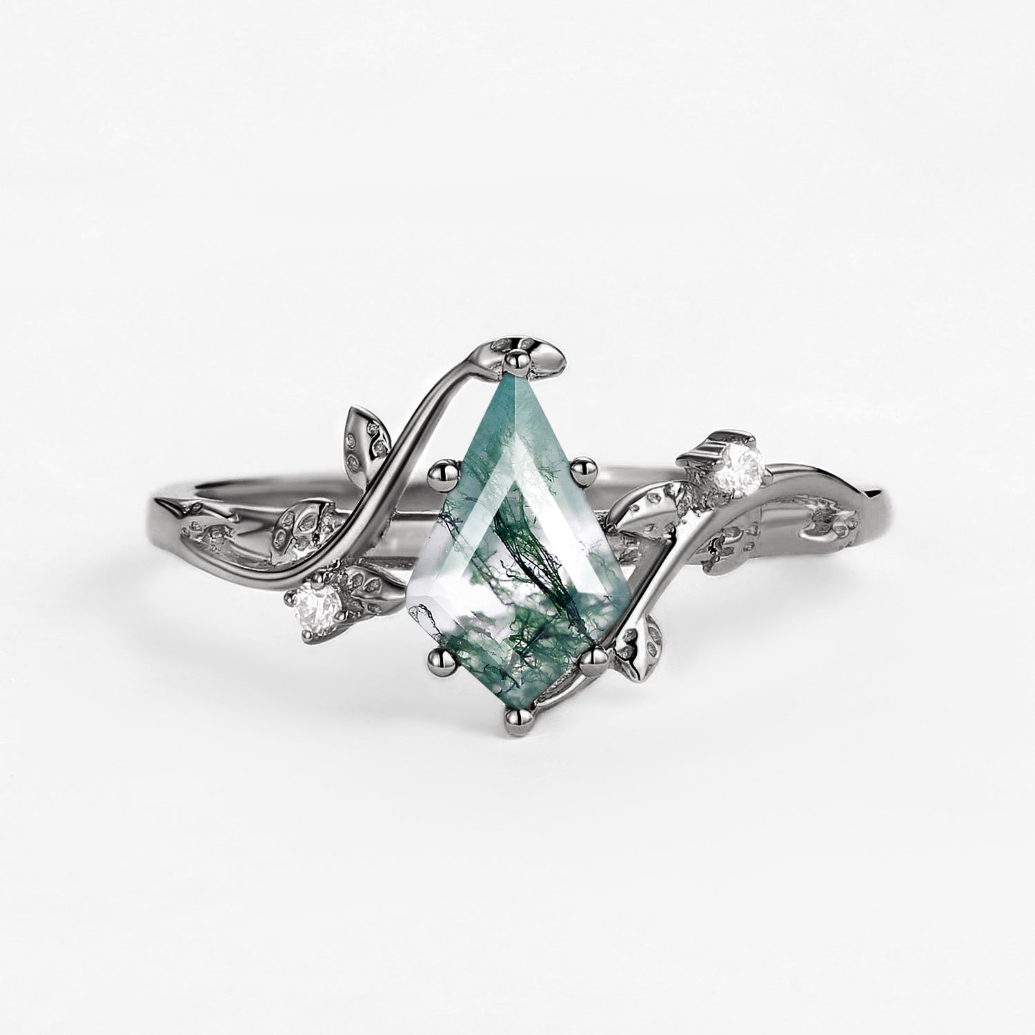 Unique Kite Cut Moss Agate Leafy Engagement Ring - Willow