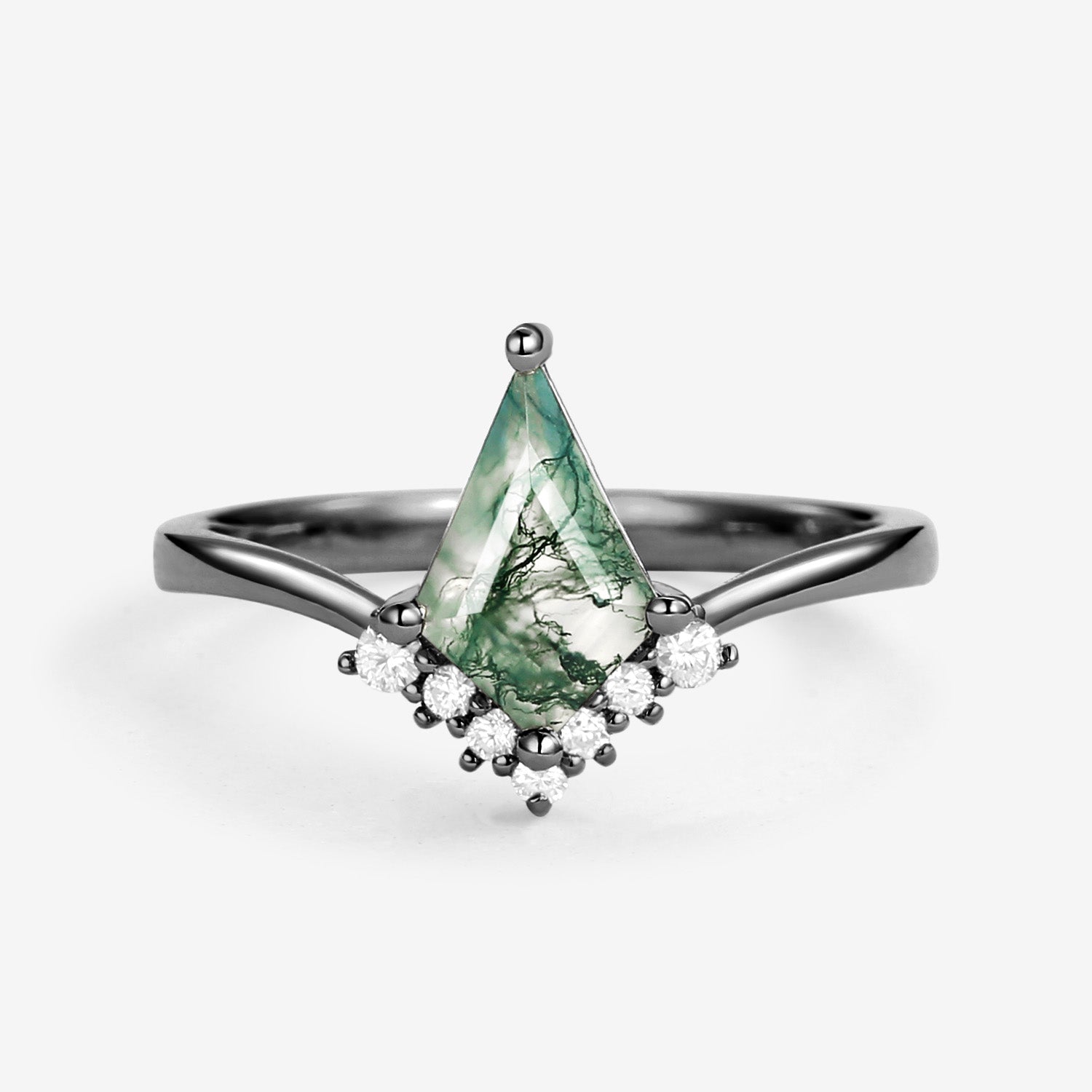 Unique Moss Agate Kite Cut Classic Engagement Ring - Nimbus