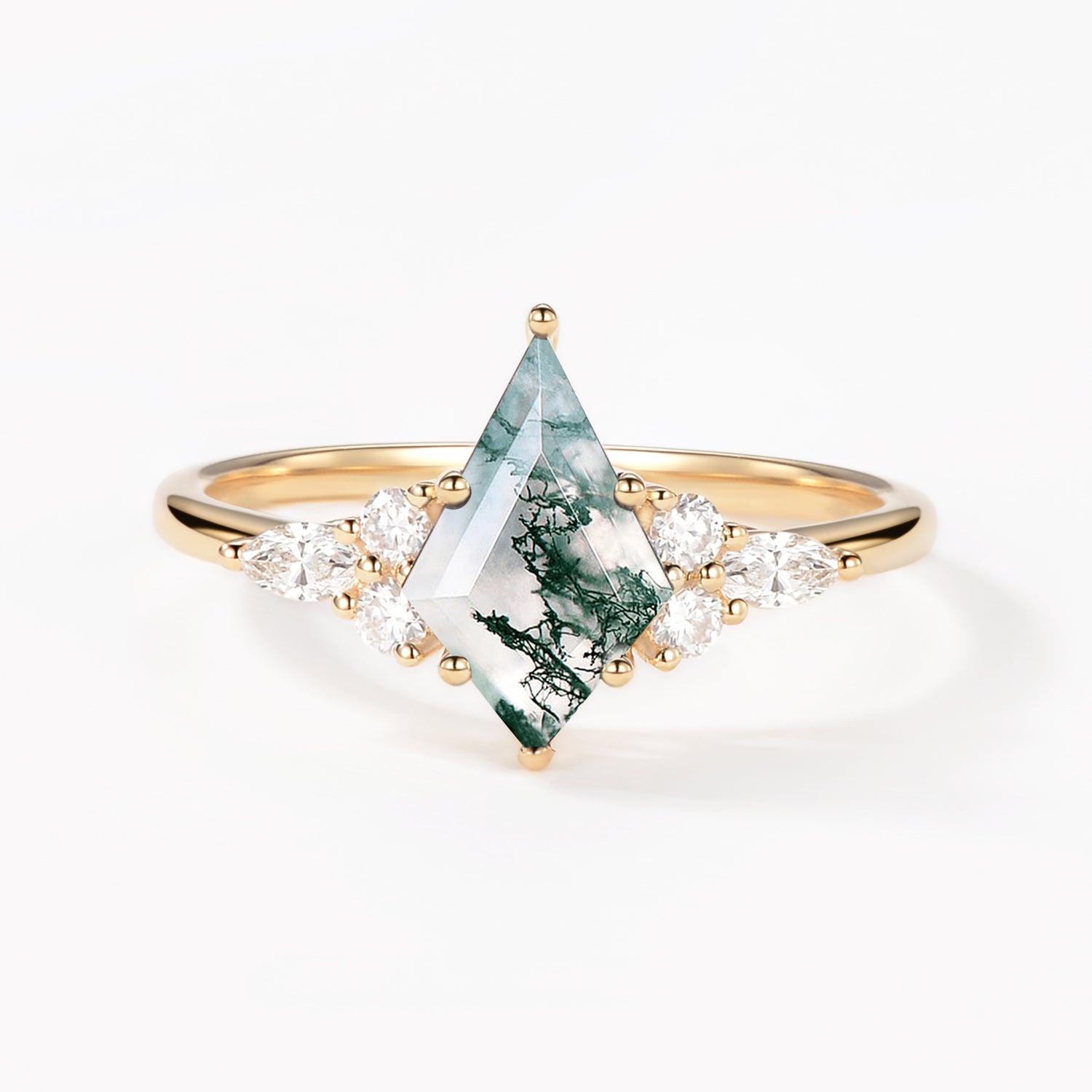 Unique Moss Agate Kite Cut Three Sides Stone Engagement Ring