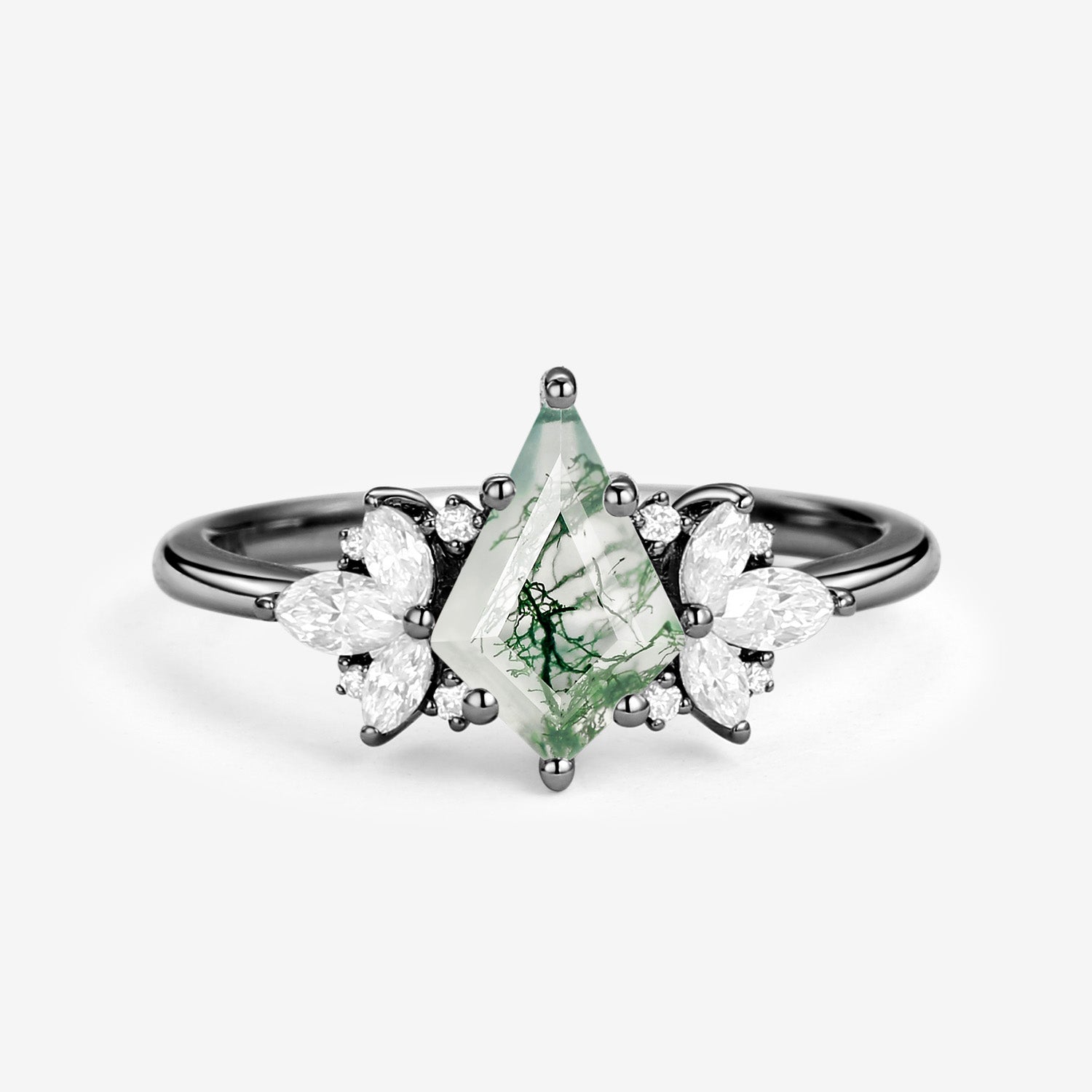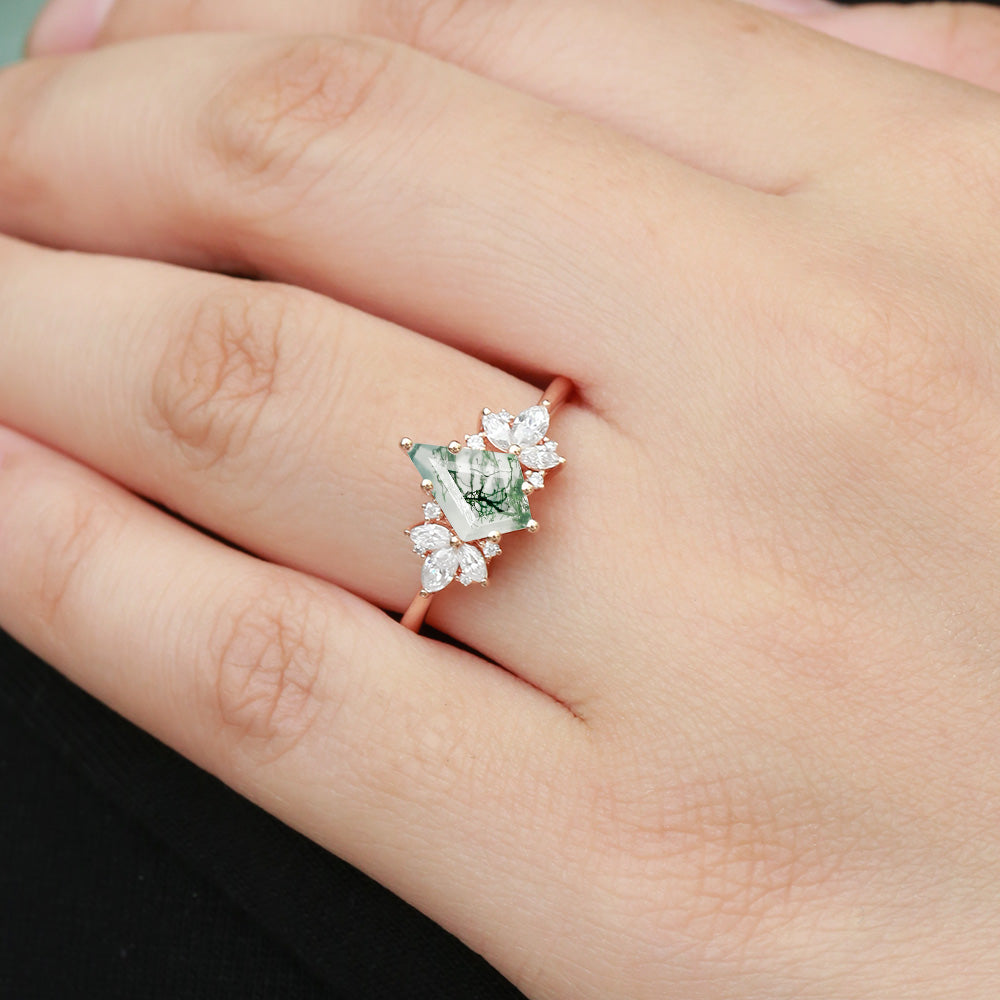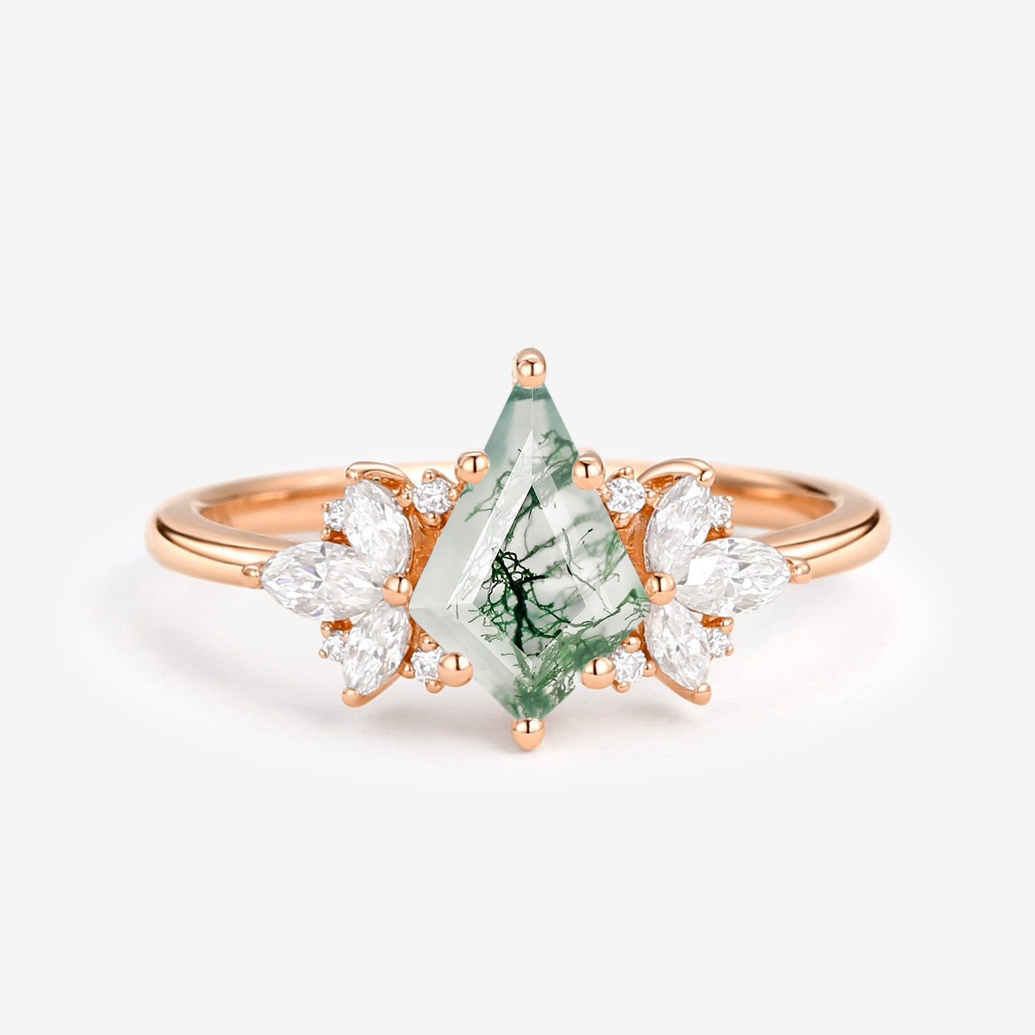 Unique Rose Gold Moss Agate Kite Cut Engagement Ring - Morpho