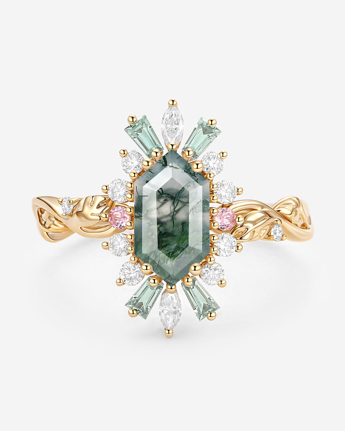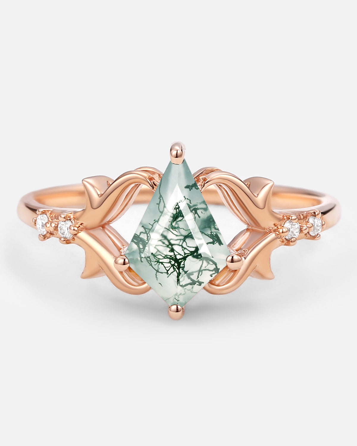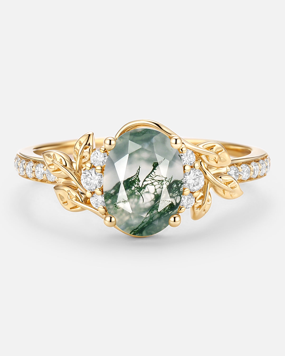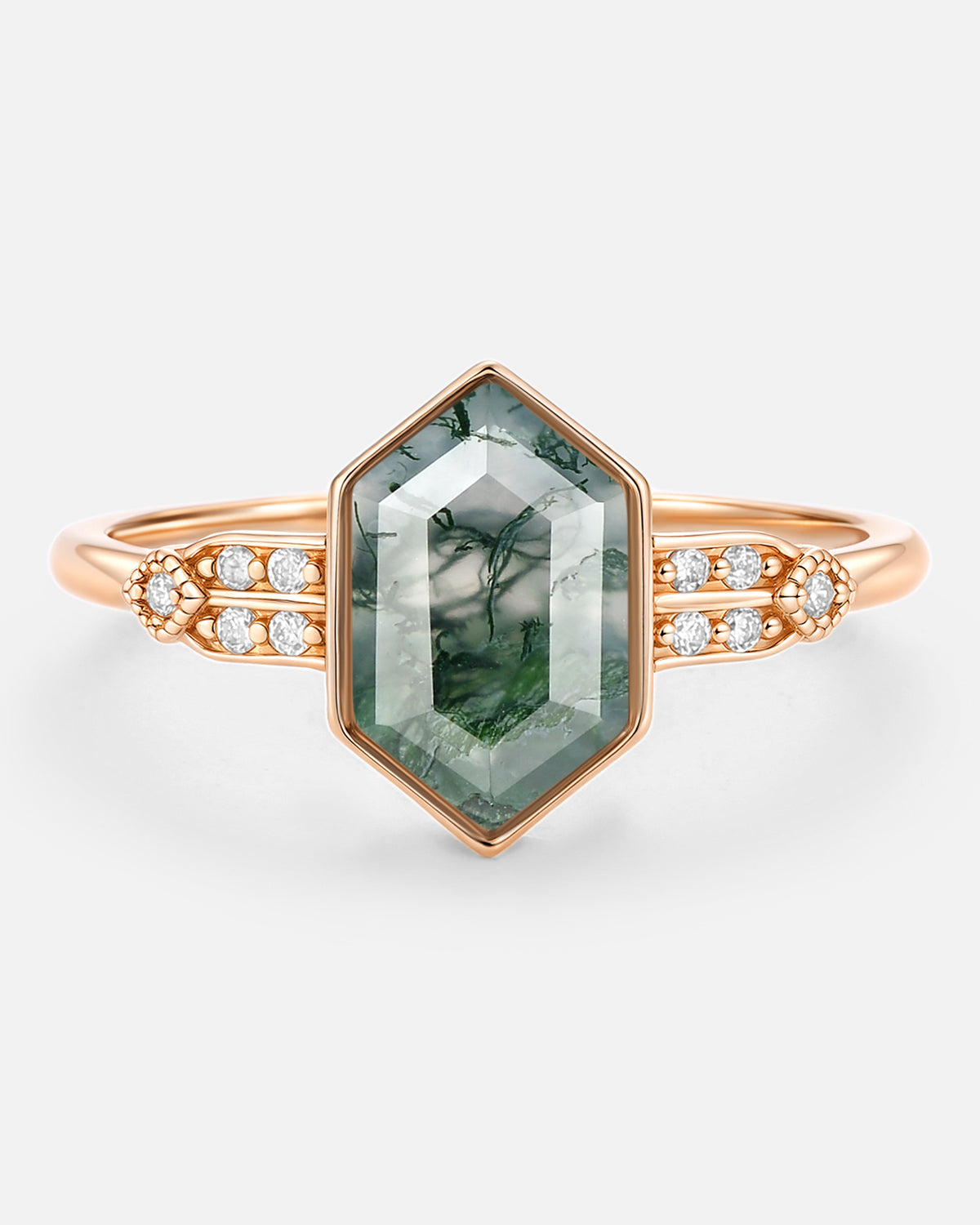 Moss Agate, the official zodiac stone for Gemini, is said to enhance their excellent communication skills. Geminis are witty and curious, they have rich imaginations and love to communicate and interact with others. Moss agate engagement rings are also believed to help Geminis organize their many thoughts, focus their energy, and bring them good luck.