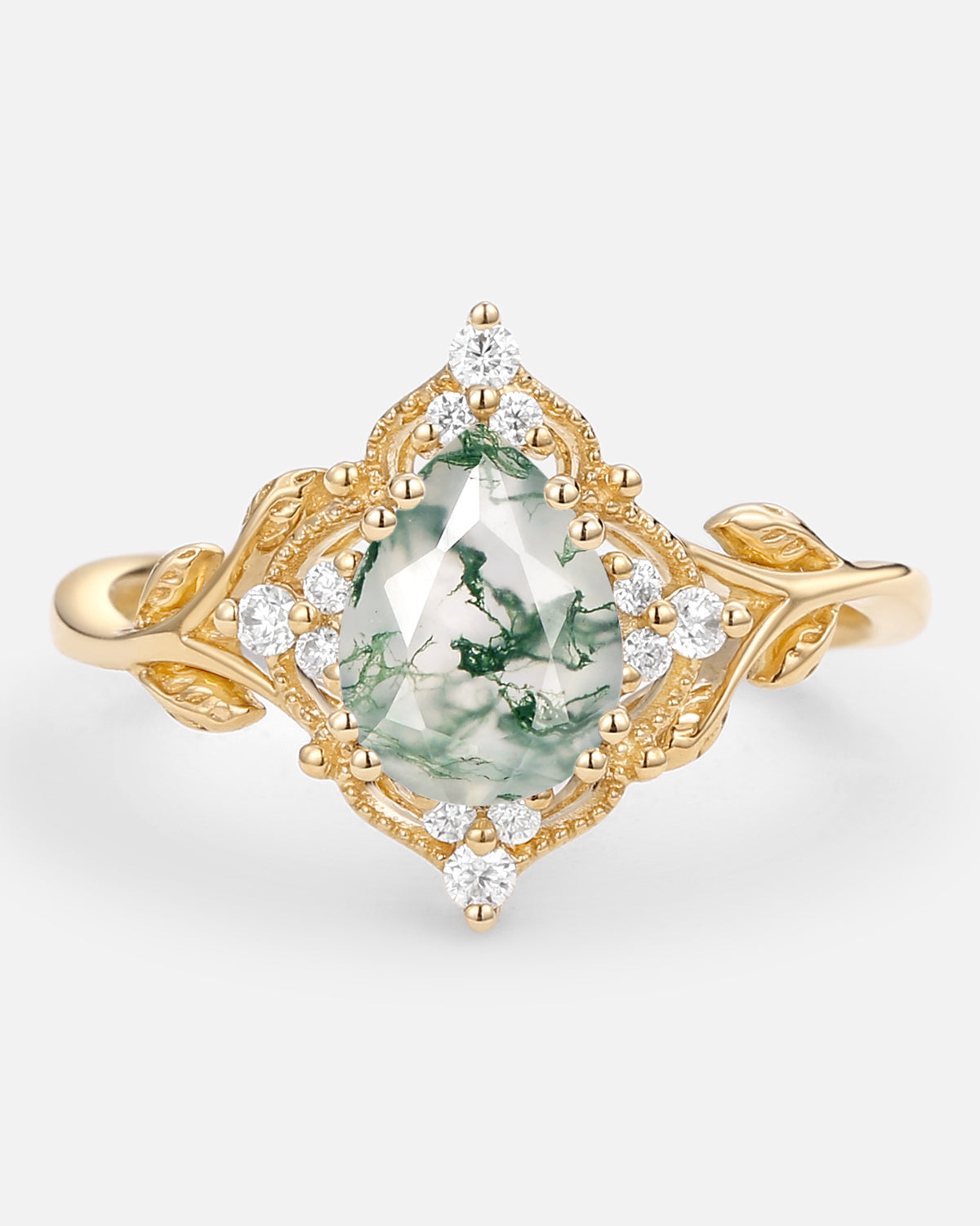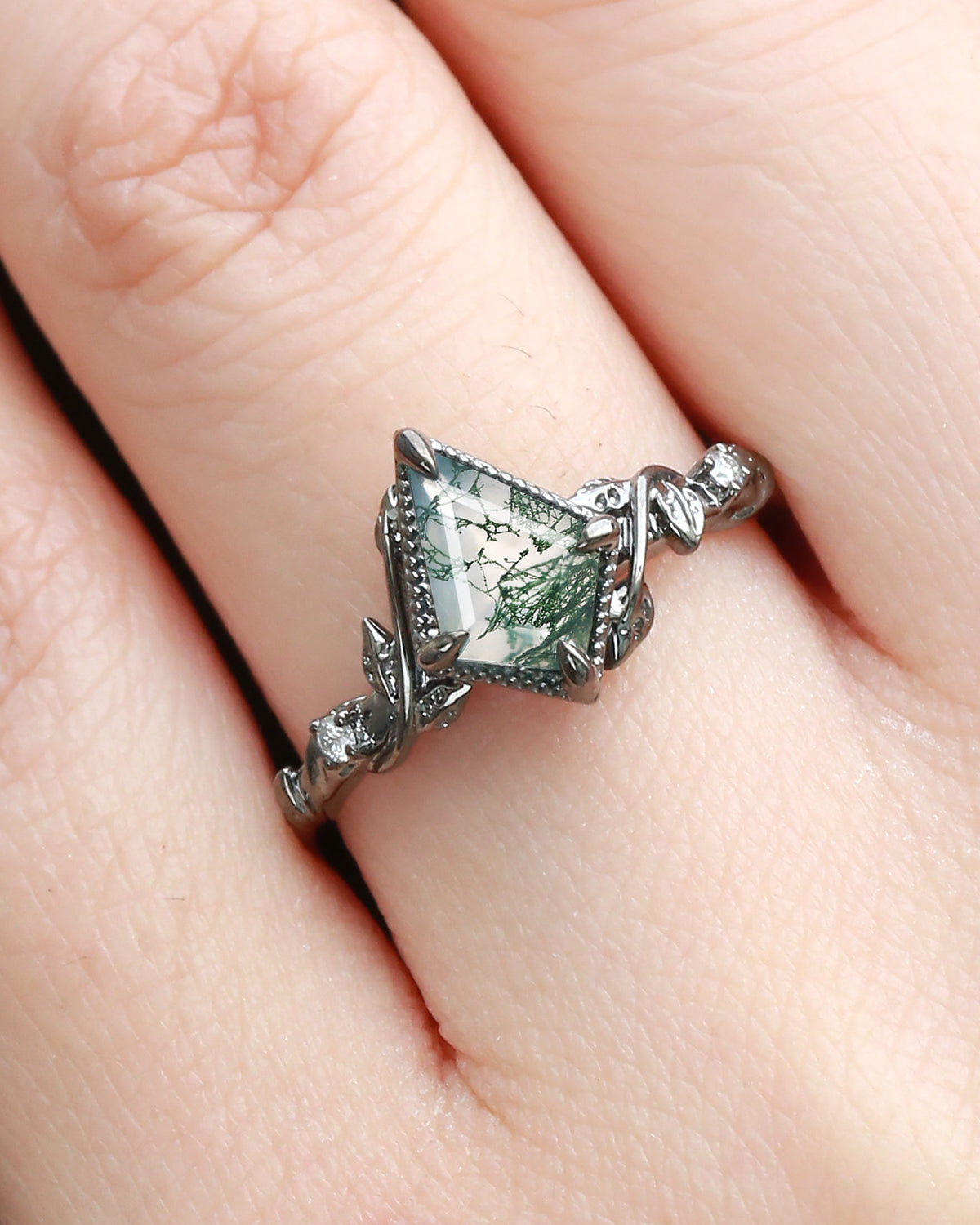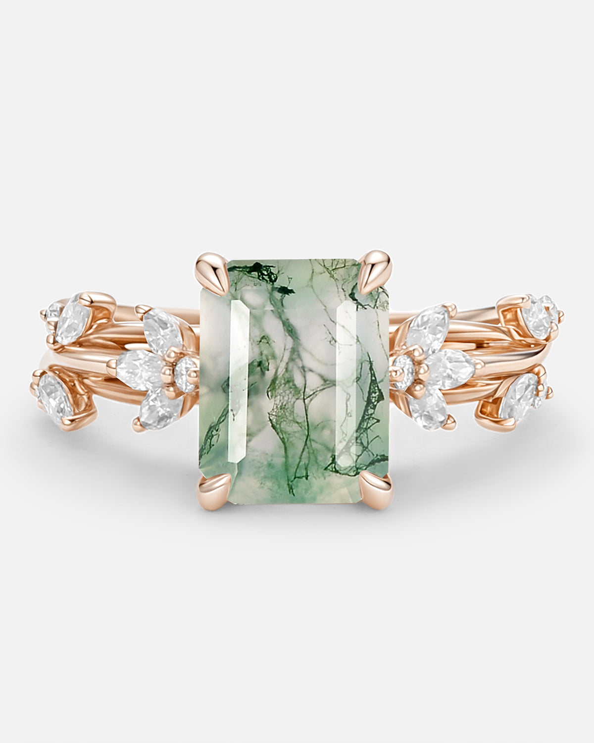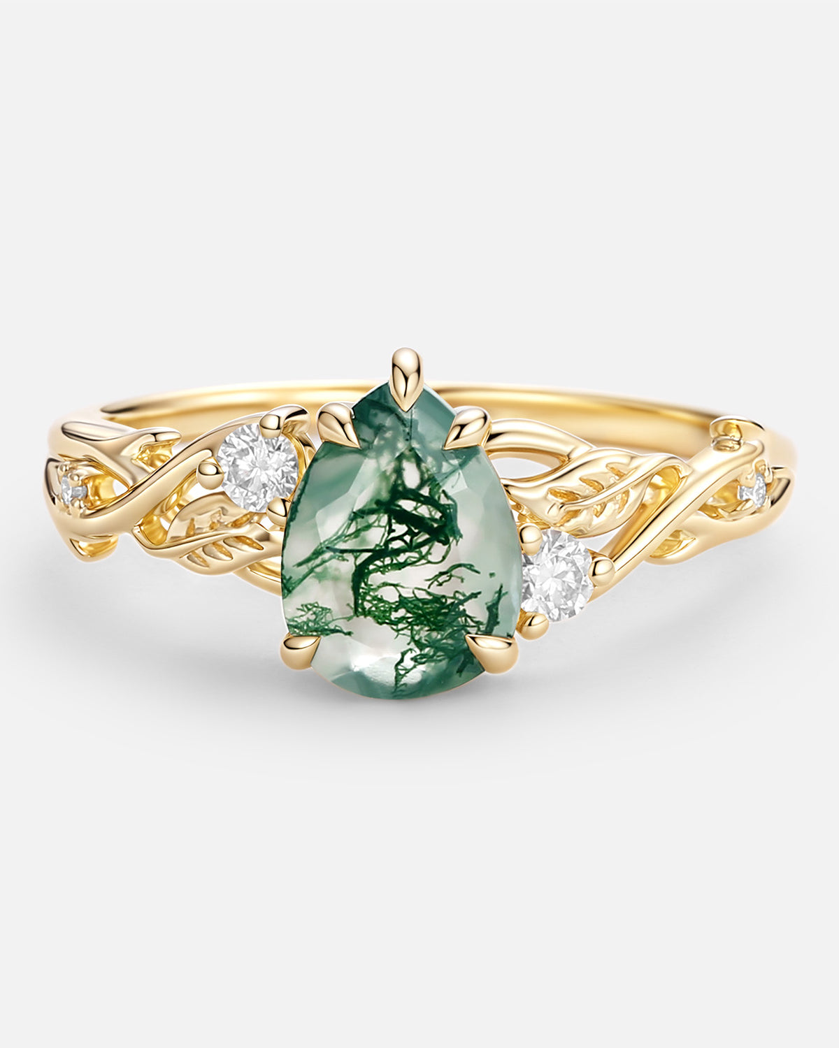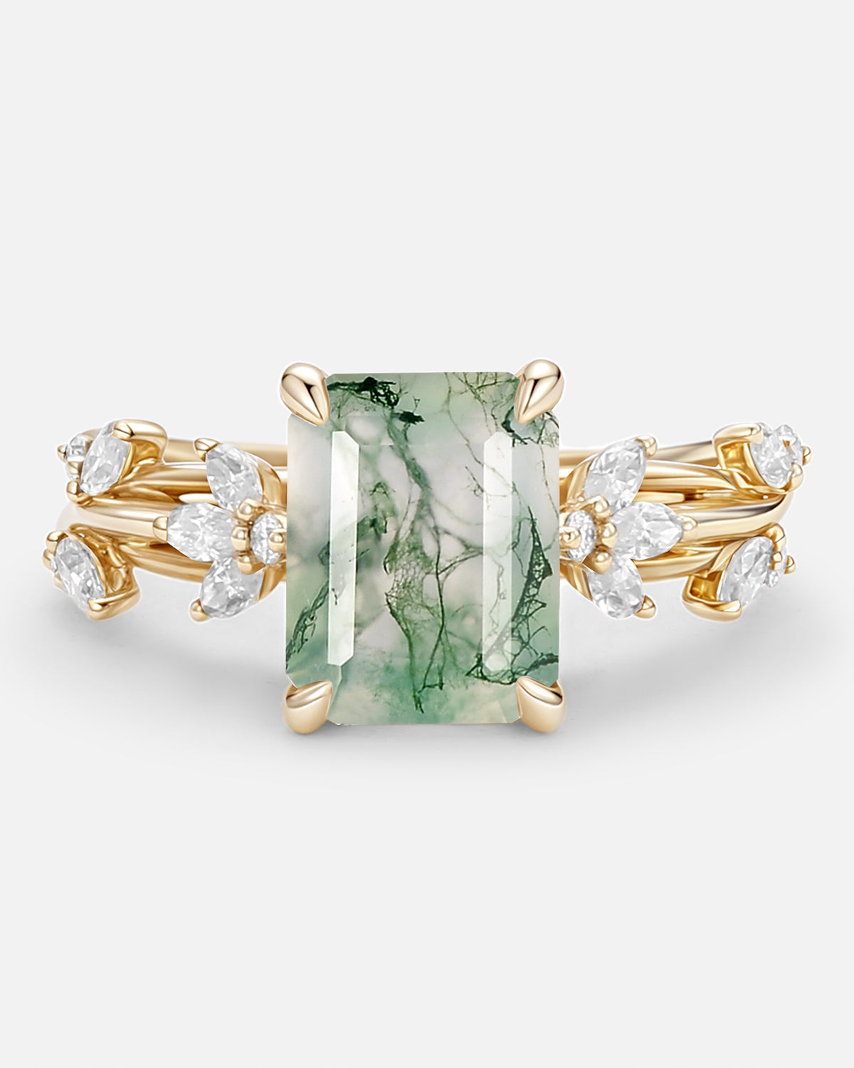 Moss Agate, the official zodiac stone for Gemini, is said to enhance their excellent communication skills. Geminis are witty and curious, they have rich imaginations and love to communicate and interact with others. Moss agate engagement rings are also believed to help Geminis organize their many thoughts, focus their energy, and bring them good luck.