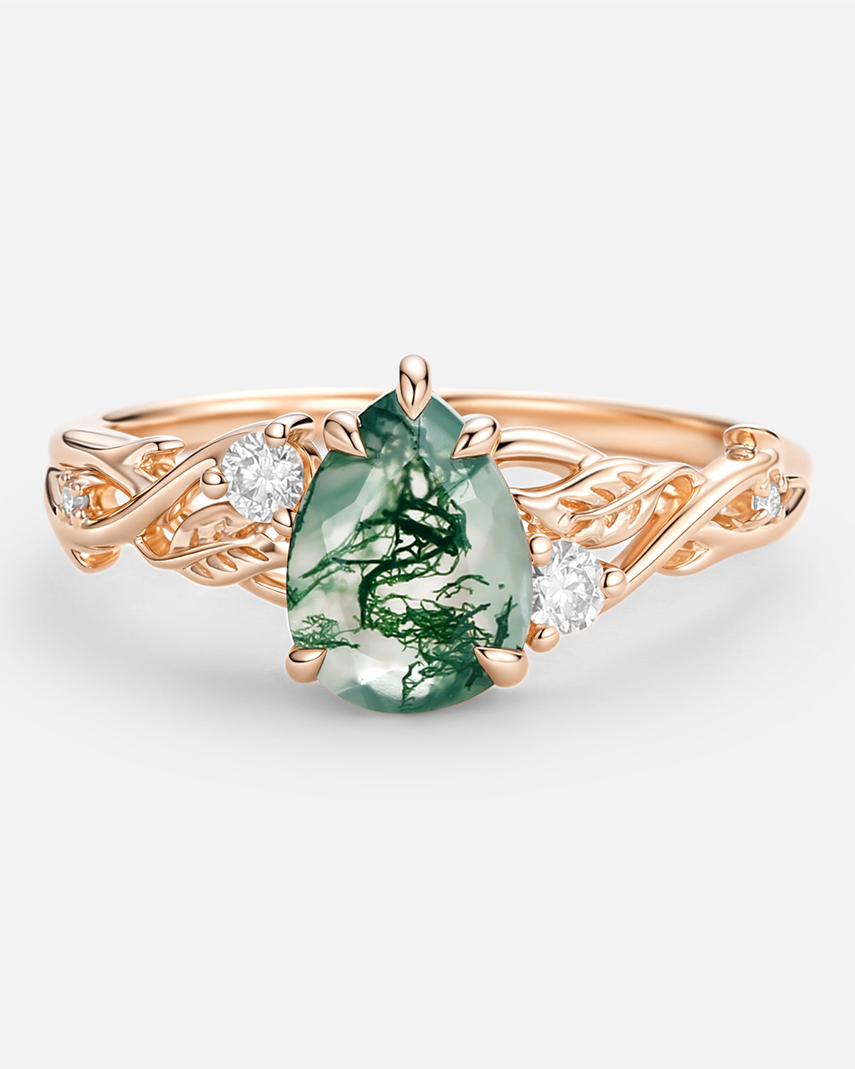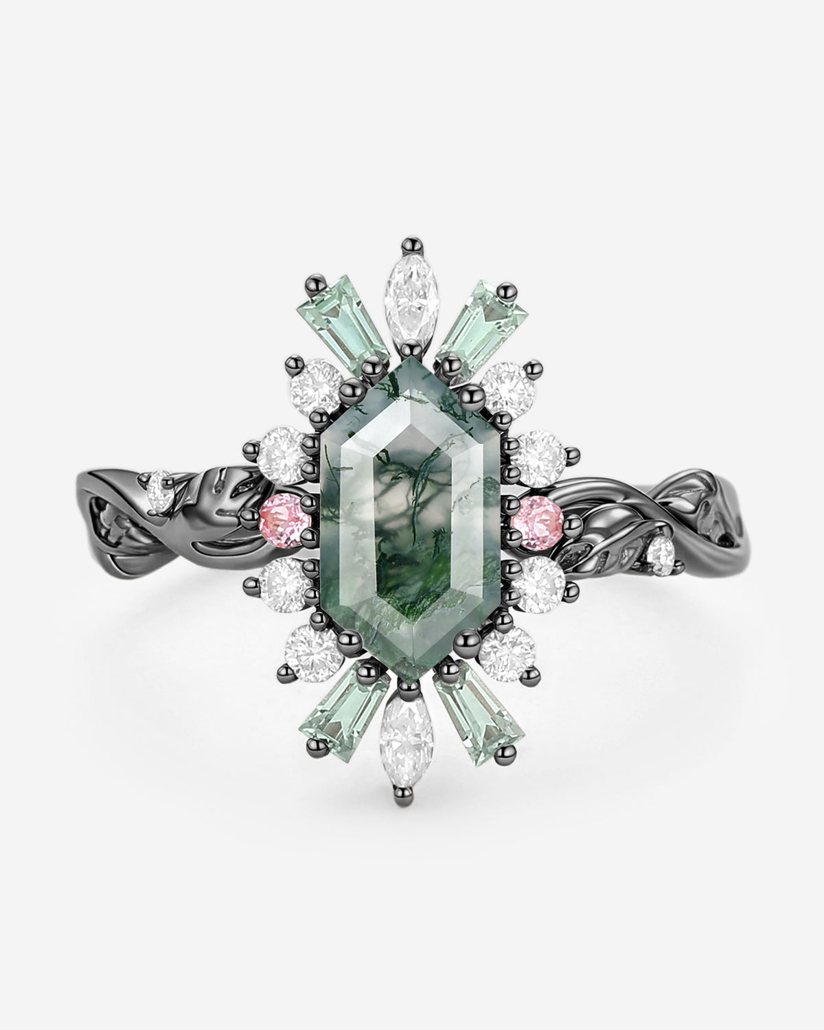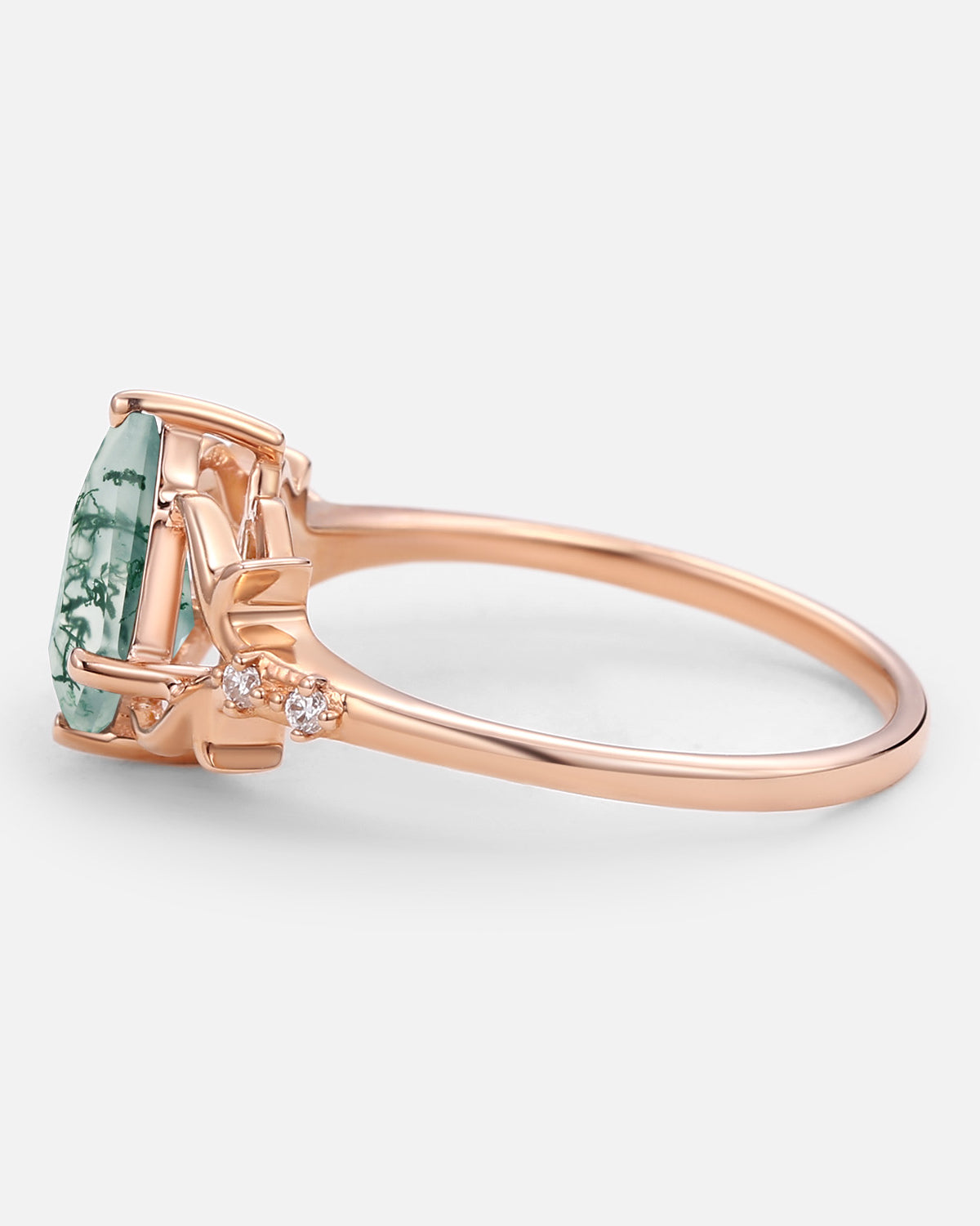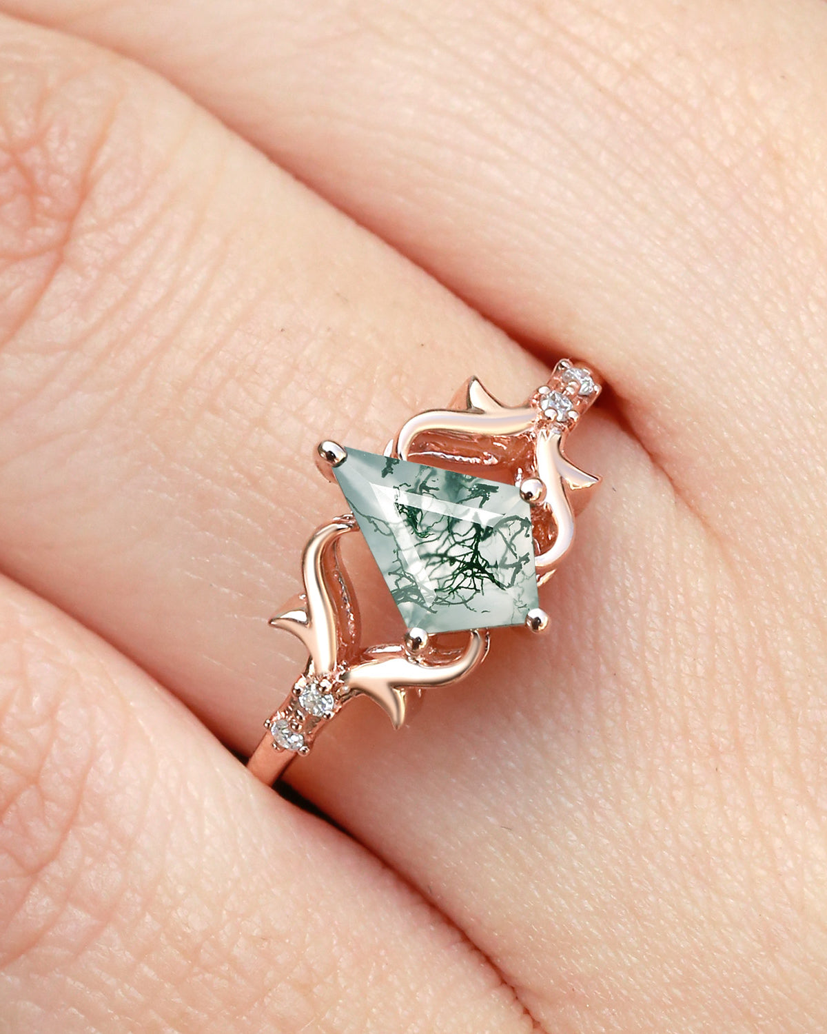 Moss Agate, the official zodiac stone for Gemini, is said to enhance their excellent communication skills. Geminis are witty and curious, they have rich imaginations and love to communicate and interact with others. Moss agate engagement rings are also believed to help Geminis organize their many thoughts, focus their energy, and bring them good luck.