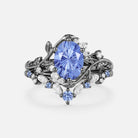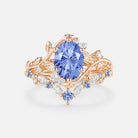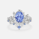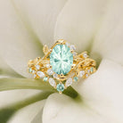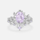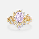 Firework Cut Oval Leafy Lab Green Sapphire Engagement Ring Set 2pcs - Lilac