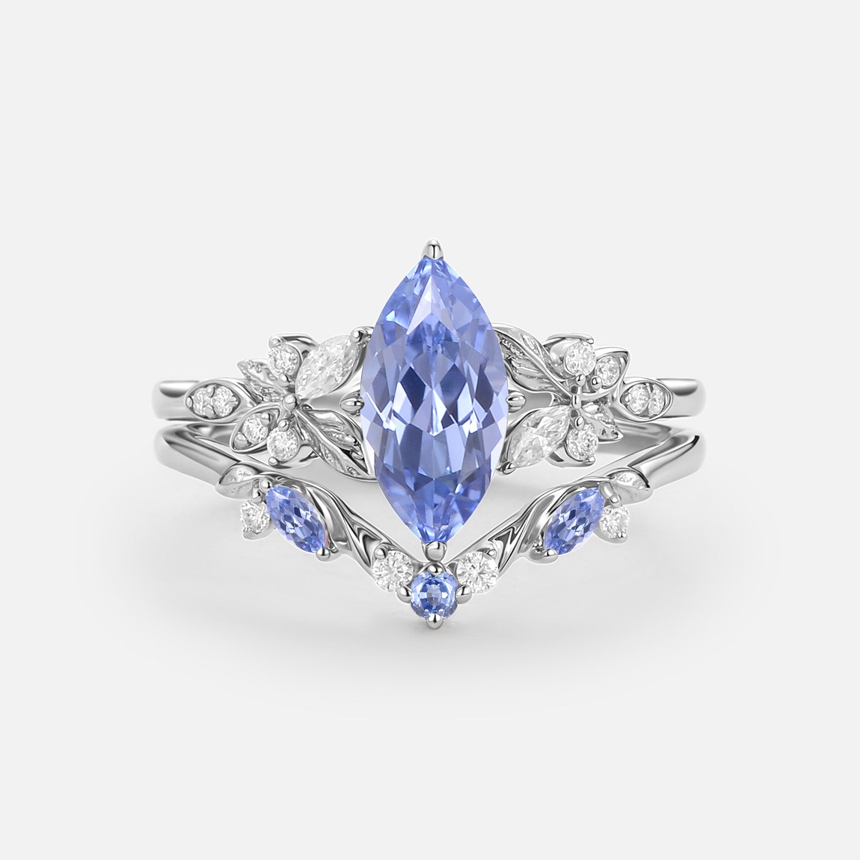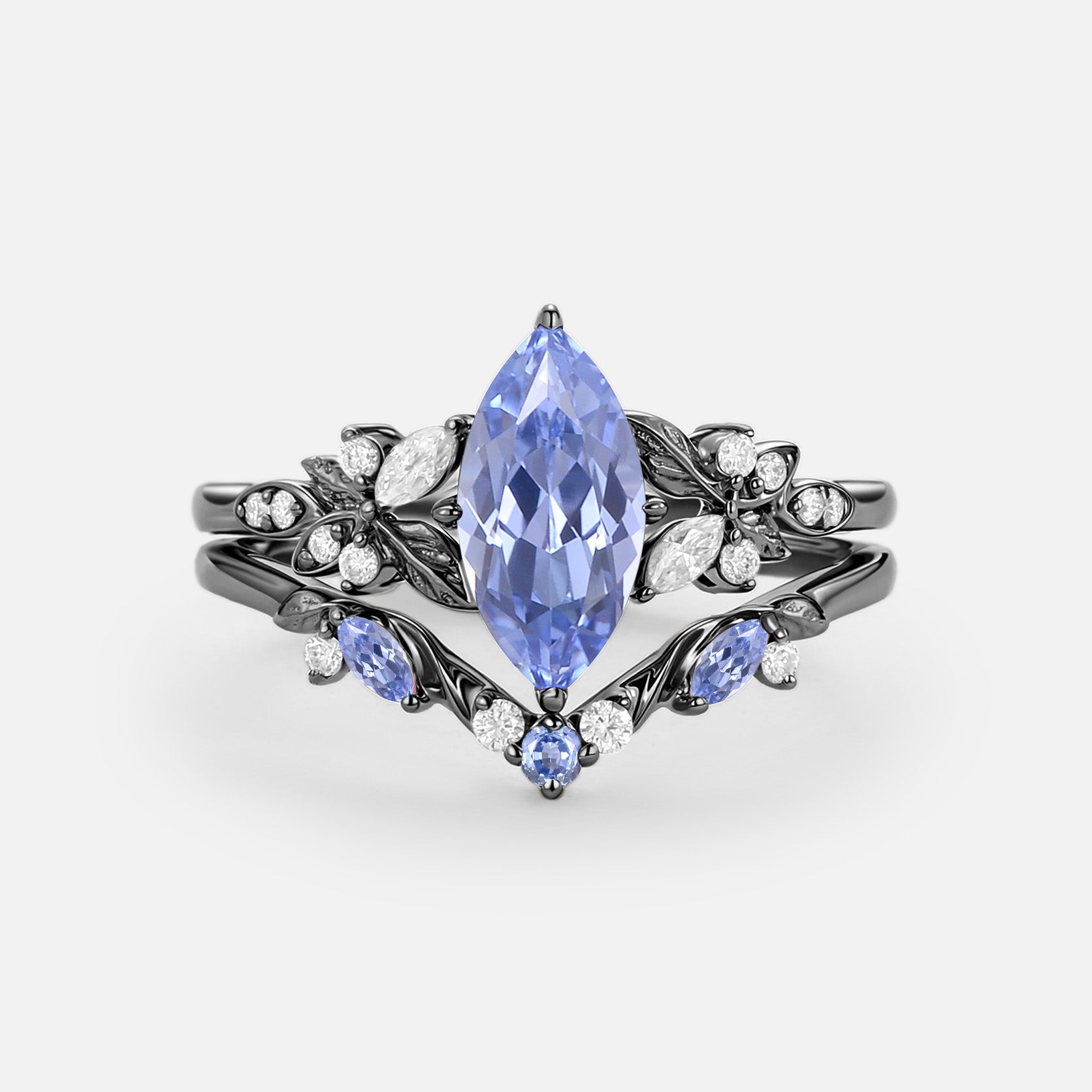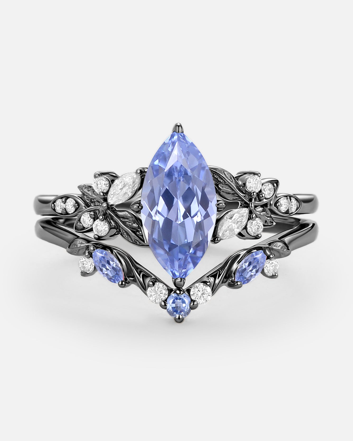 Kite Cut Salt and Pepper Diamonds Cluster Engagement Ring Set 2pcs - Rebecca