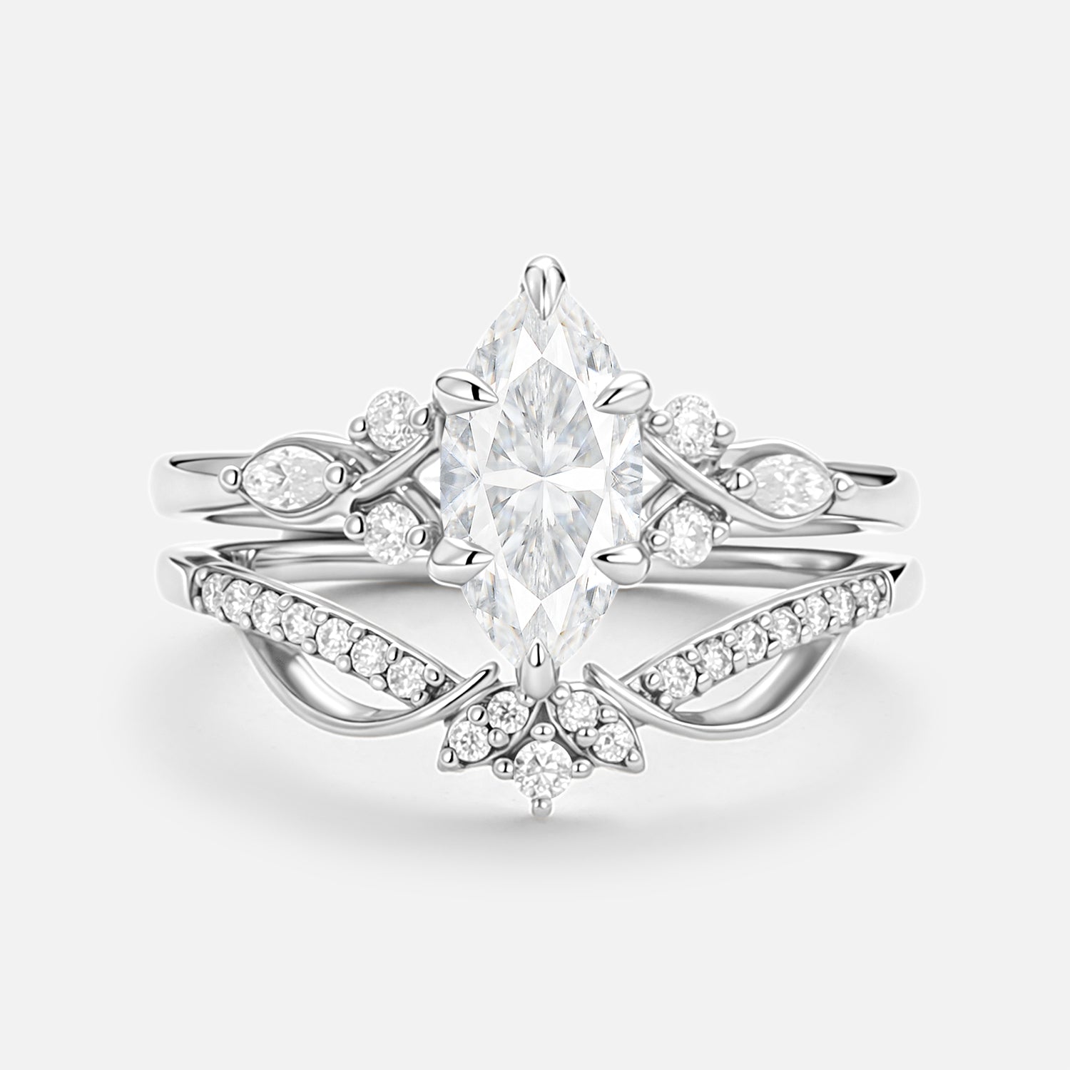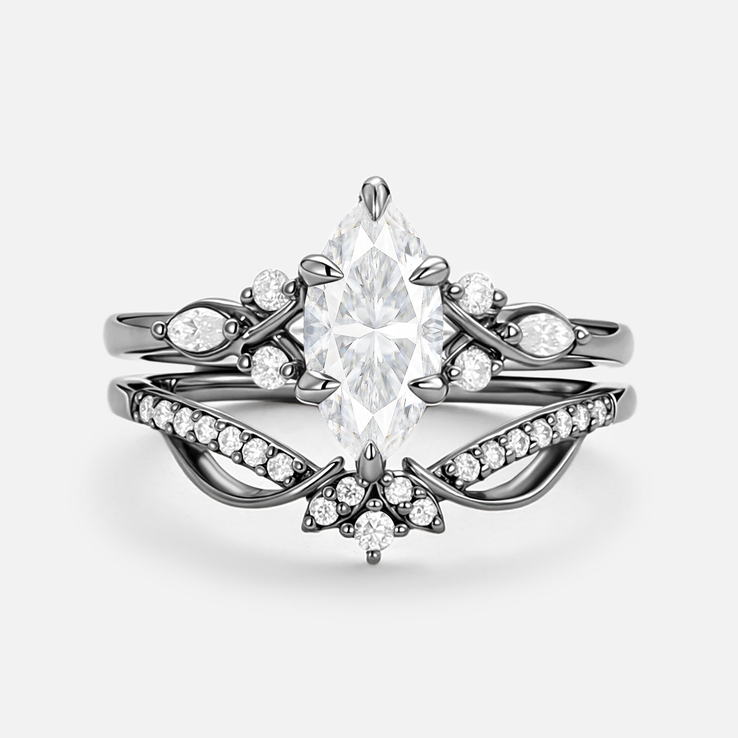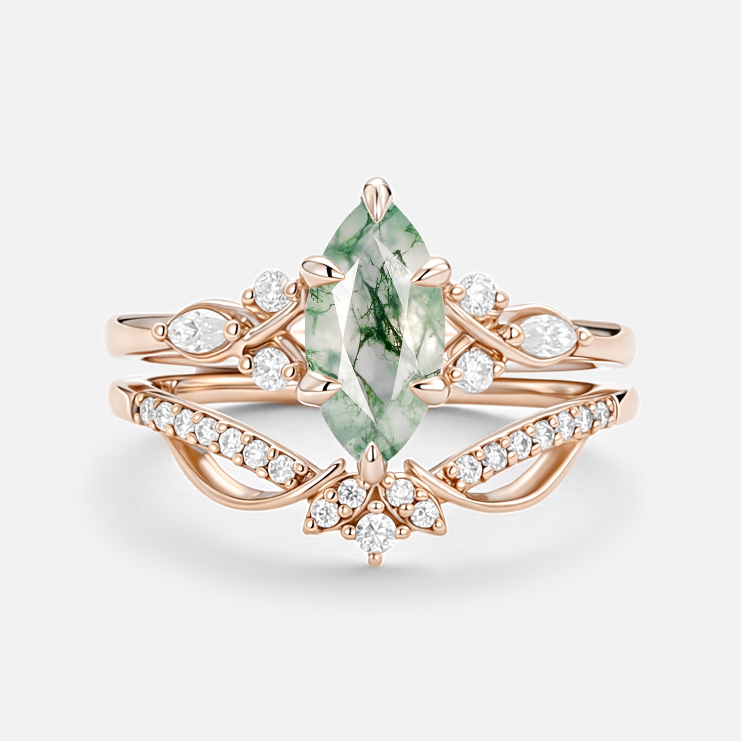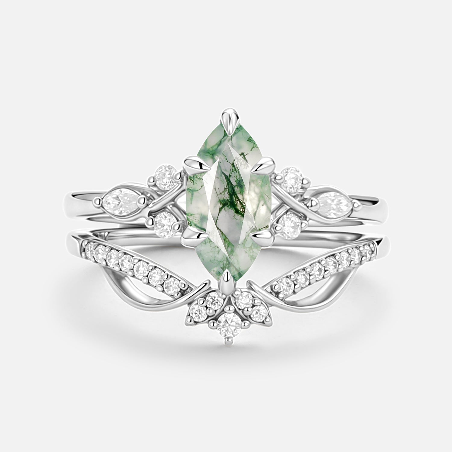 Marquise Cut Moss Agate infinity Engagement Ring Set 2pcs - Mirage