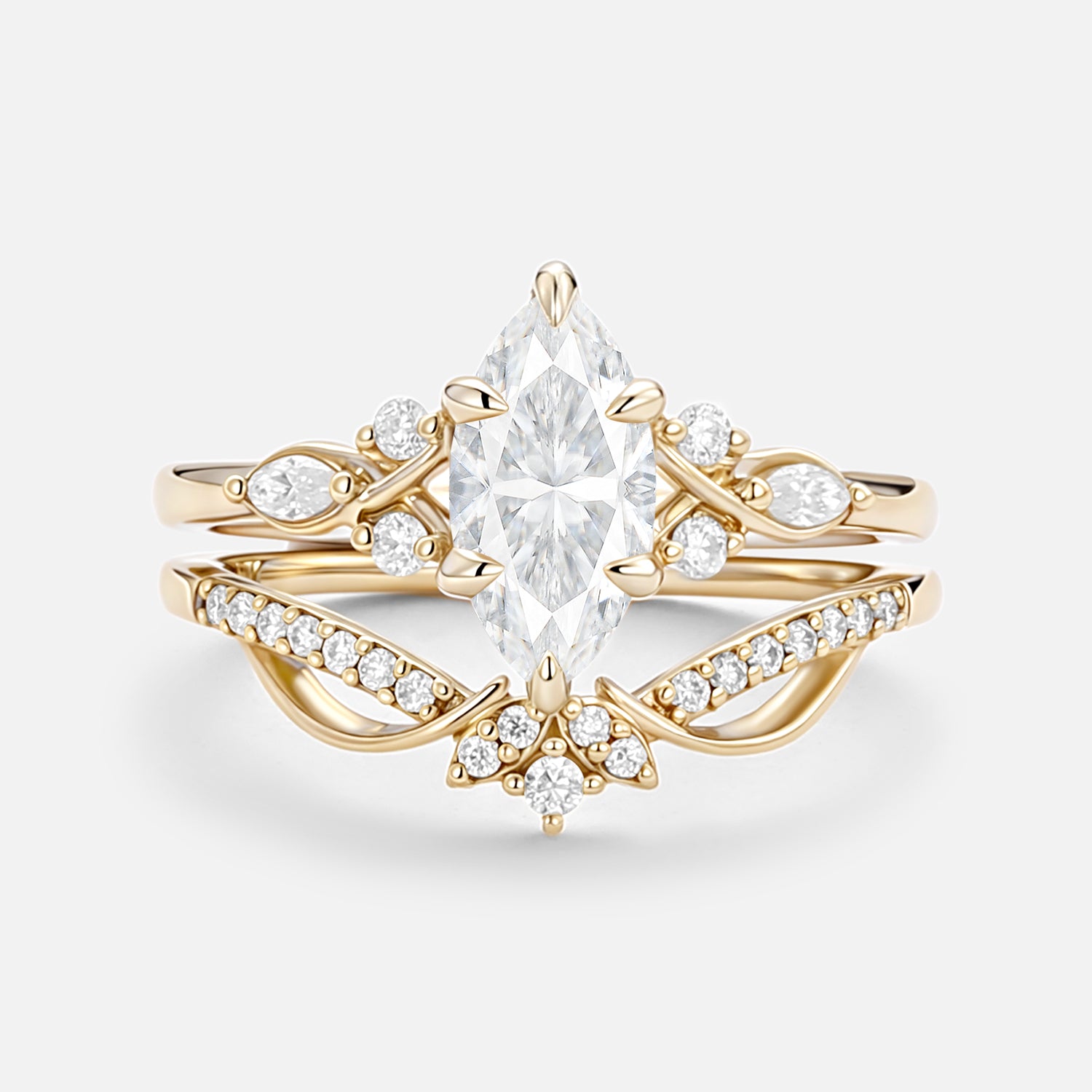 - 14k solid gold engagement ring set