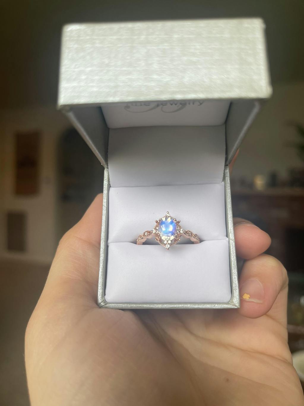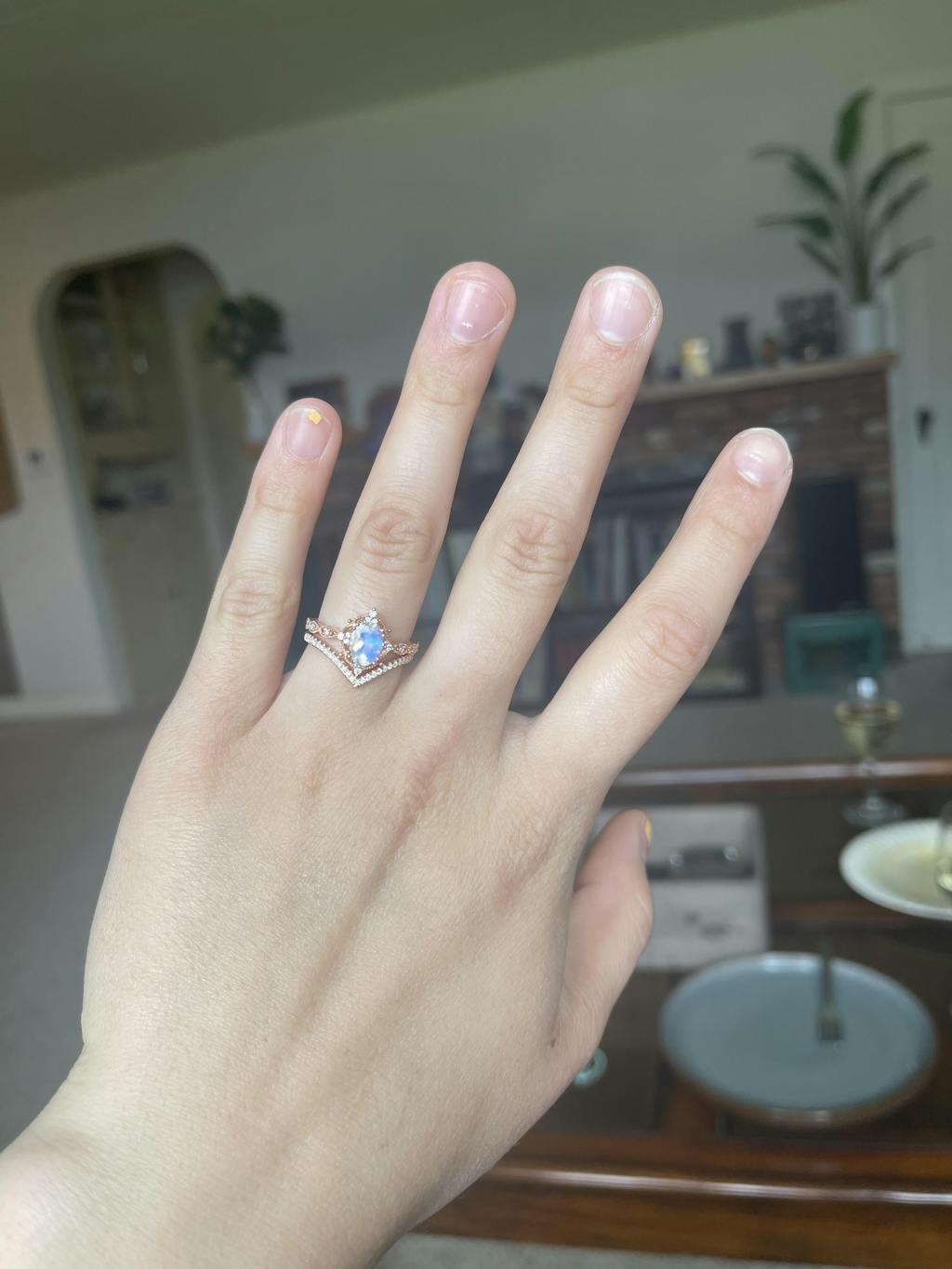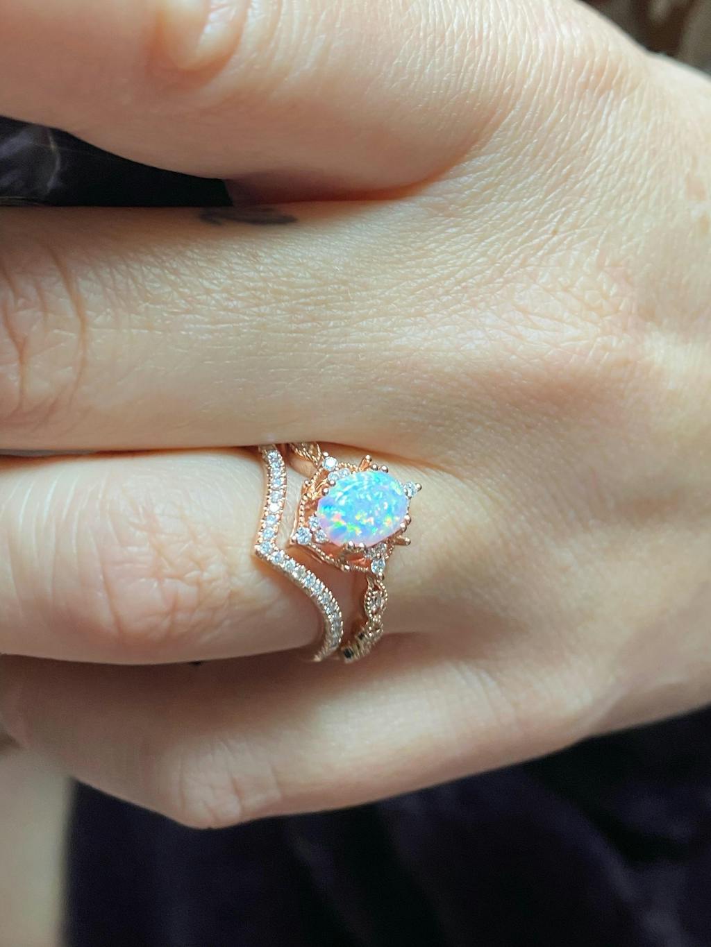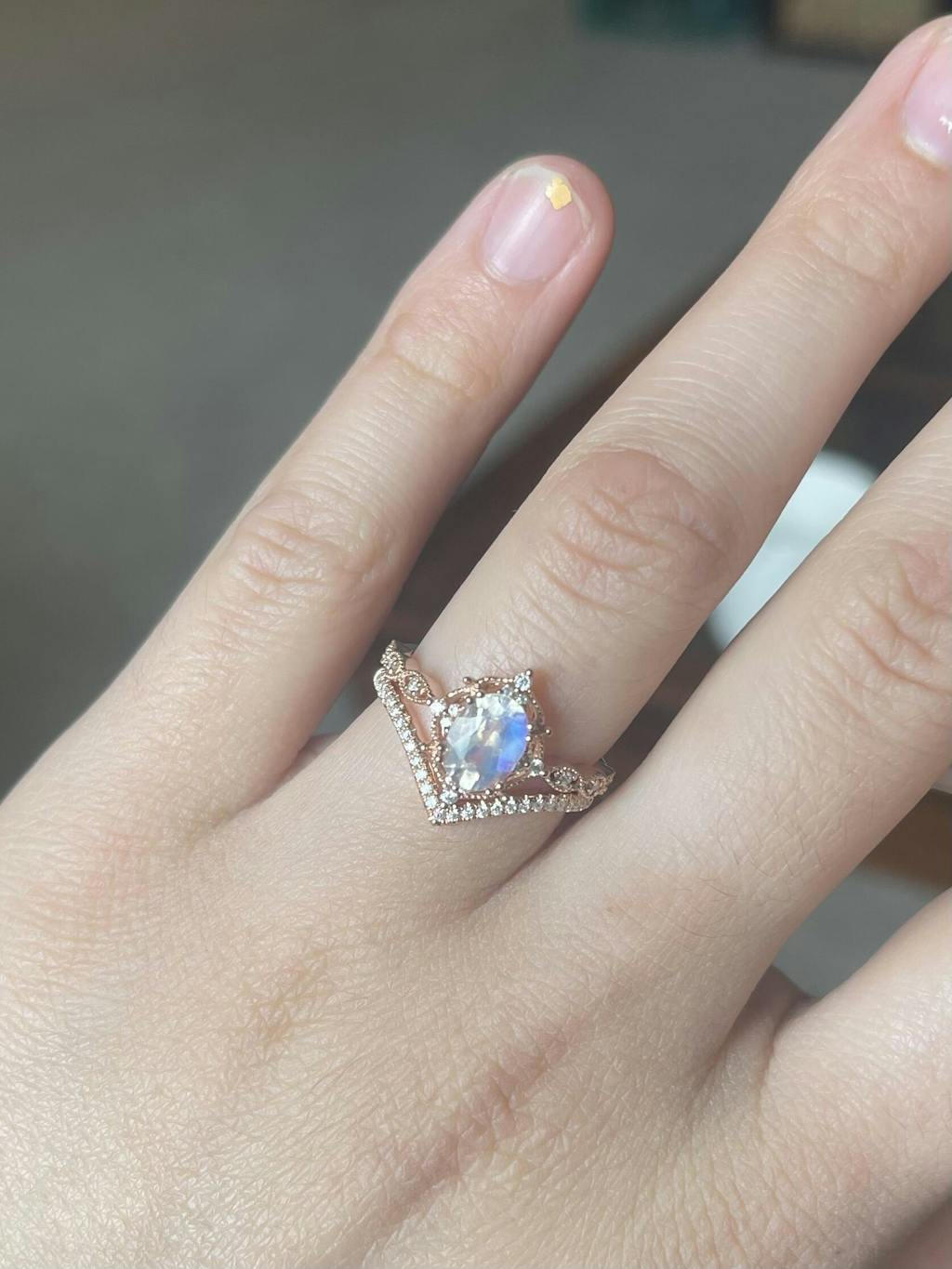 Felicegals Moonstone & Moissanite Engagement Ring Set 2pcs Antique Oval Vine Vintage Inspired Wedding Ring Moissanite V Shaped Wedding Band Anniversary Gift for Her