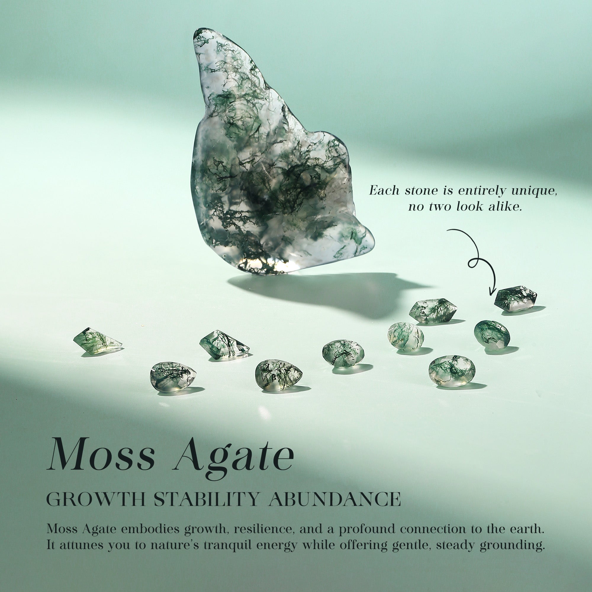 **If you select a different center stone, the Moss Agate accent stone on the wedding band will be changed to match the corresponding center stone. For instance, if you select black rutilated quartz, the moss agate on the wedding band will also be replaced with black rutilated quartz.