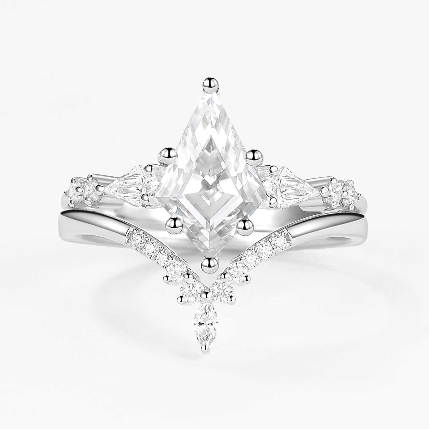 Moissanite Three Kite Stone Engagement Ring Sets 2pcs