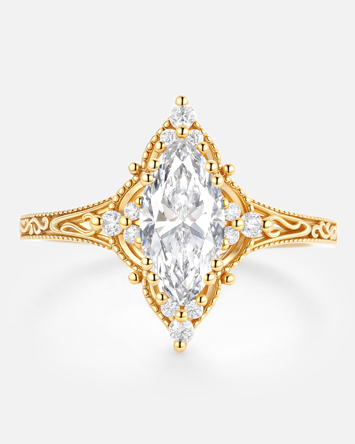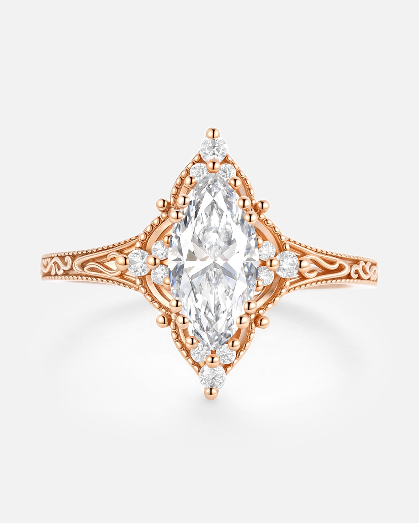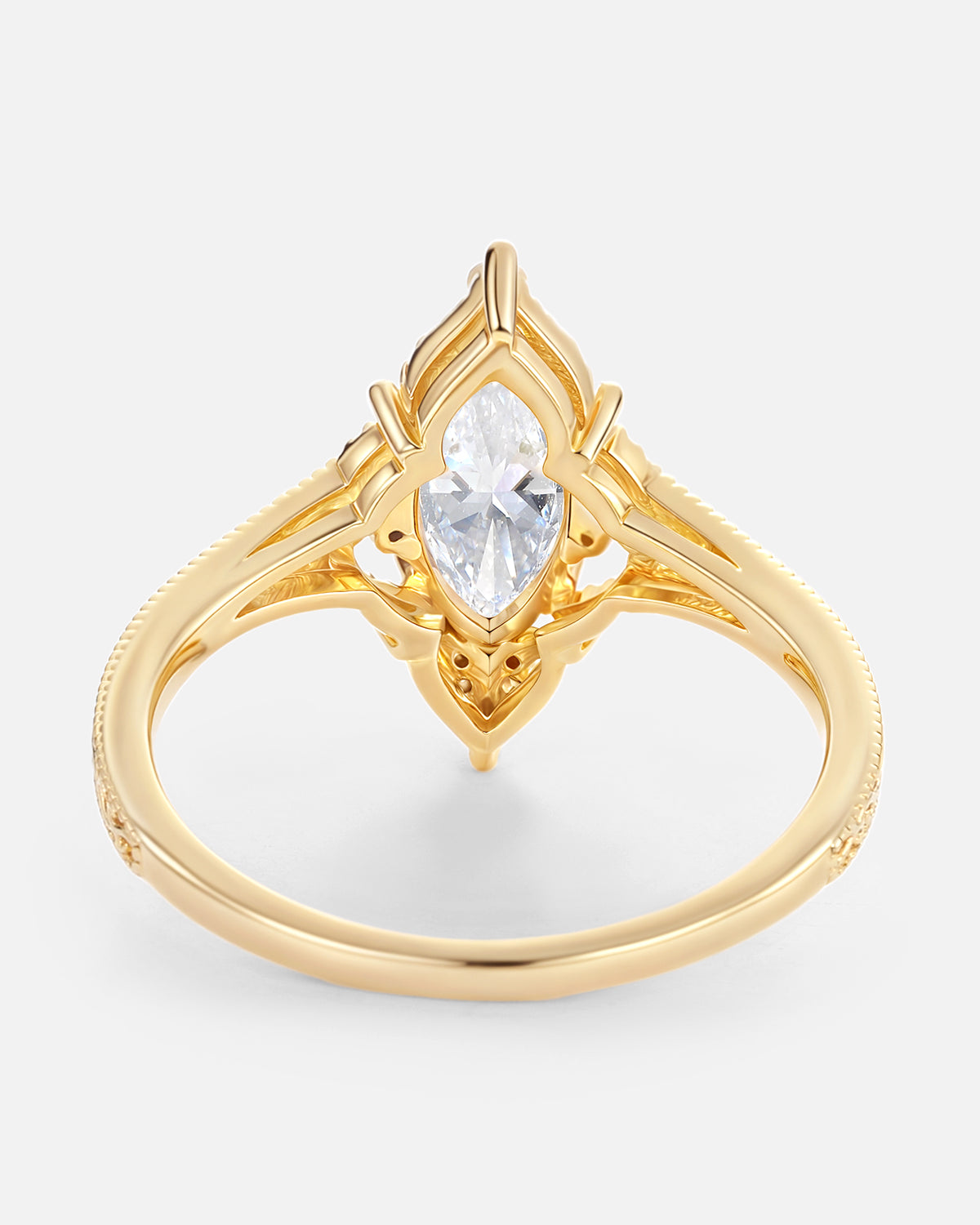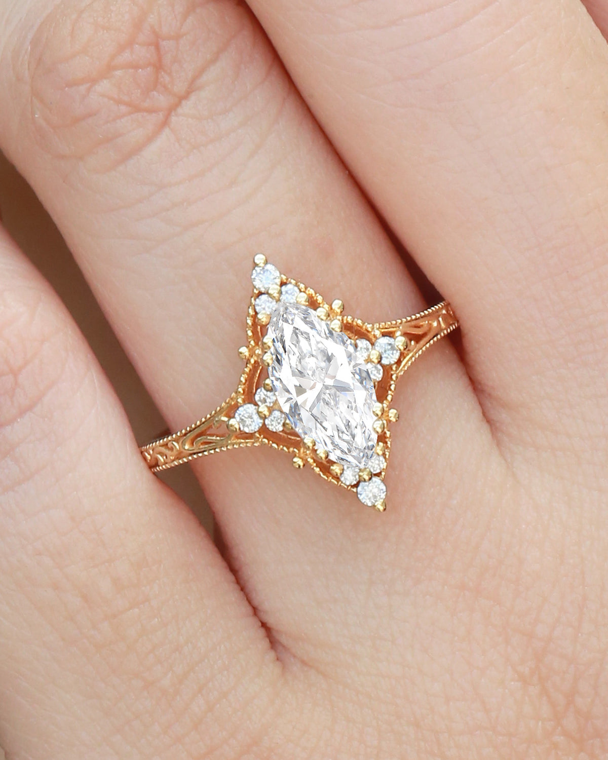 Our engraved ring lineup lets the lab grown diamond take focus, with subtle engraving to add personality: Choose a classic solitaire (marquise/oval-cut lab grown diamond) with delicate band engravings that add character without overshadowing the stone.