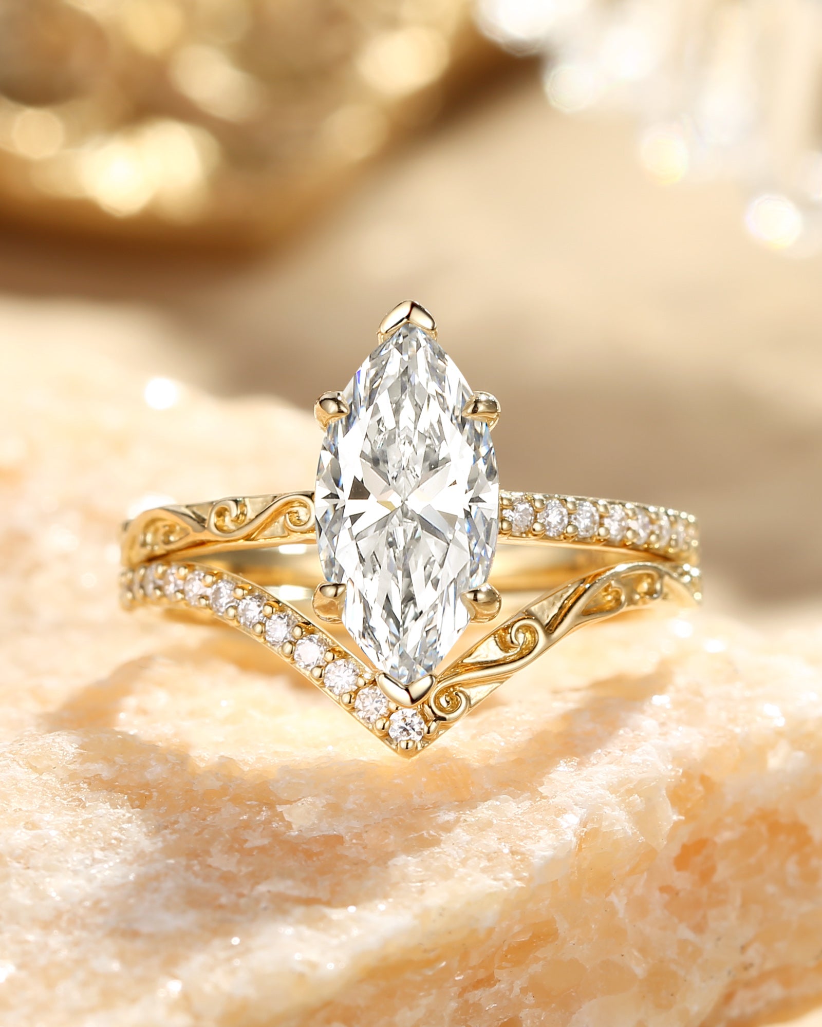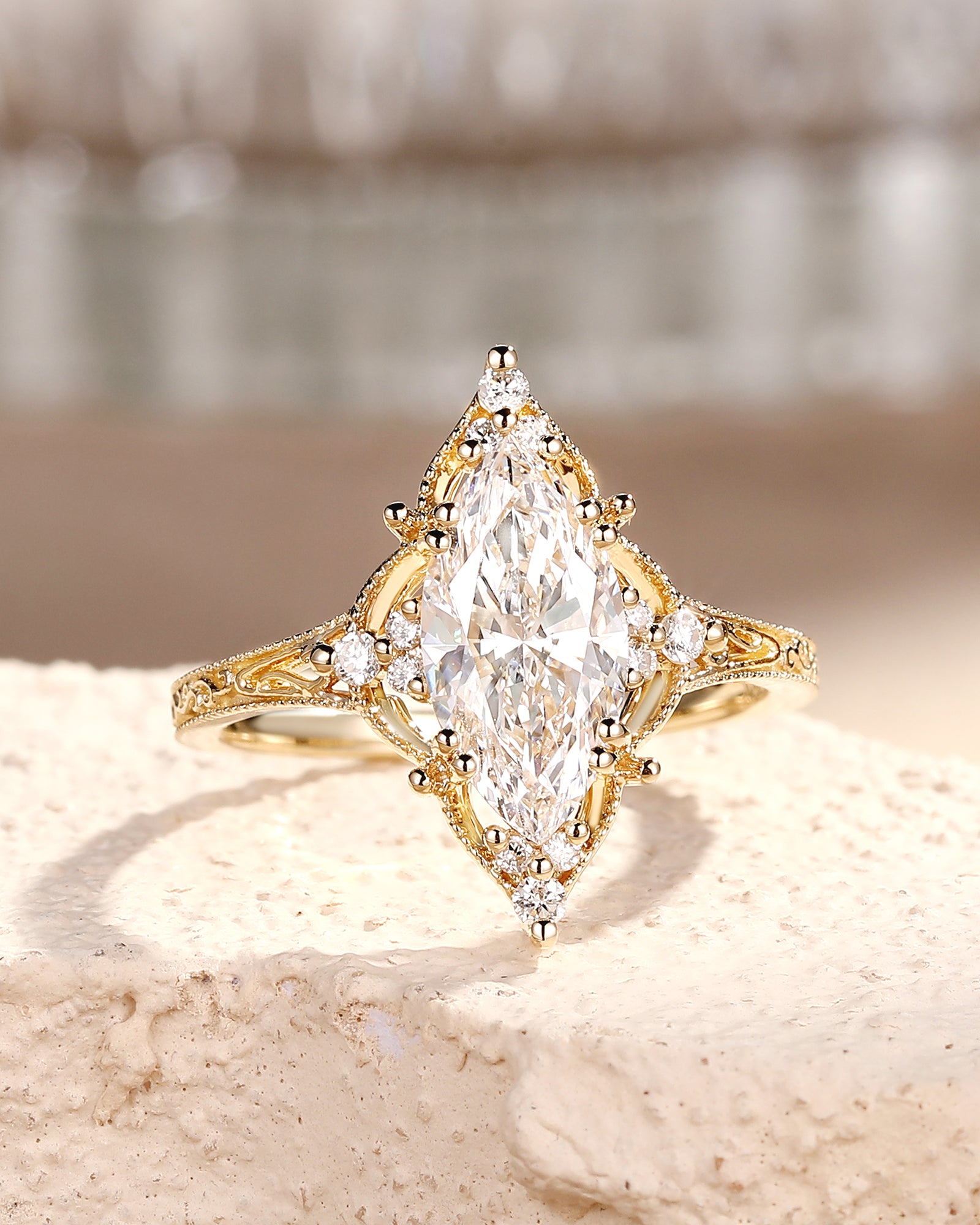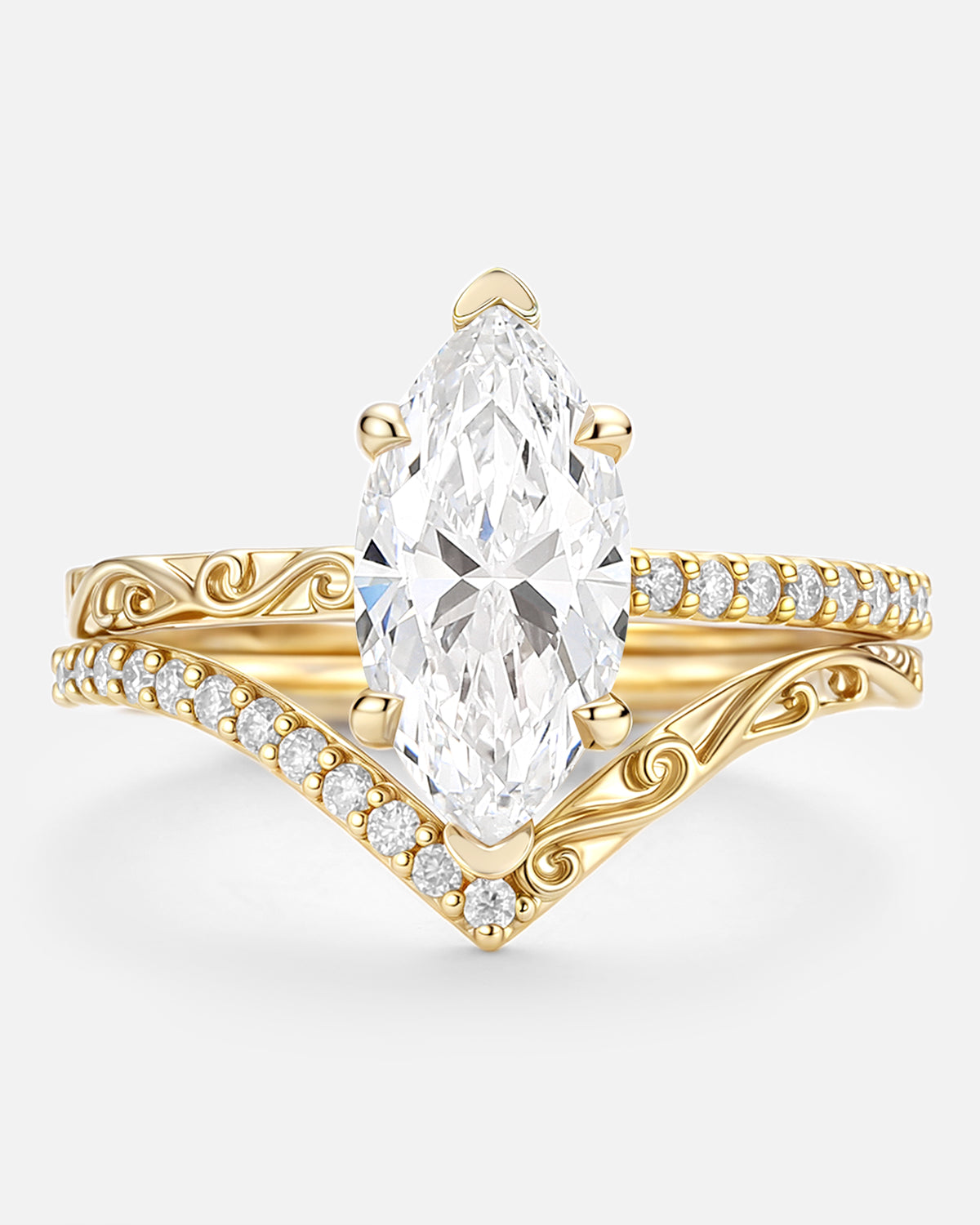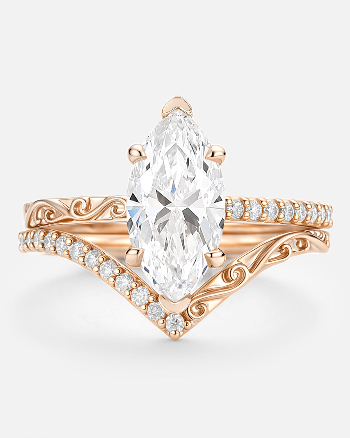 Our engraved ring lineup lets the lab grown diamond take focus, with subtle engraving to add personality: Choose a classic solitaire (marquise/oval-cut lab grown diamond) with delicate band engravings that add character without overshadowing the stone.