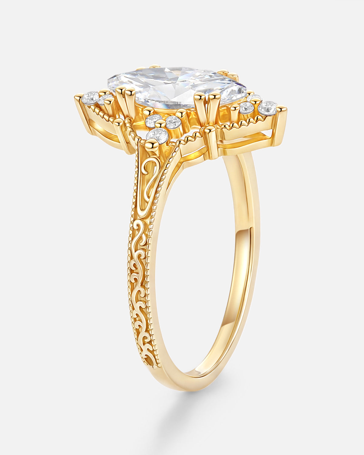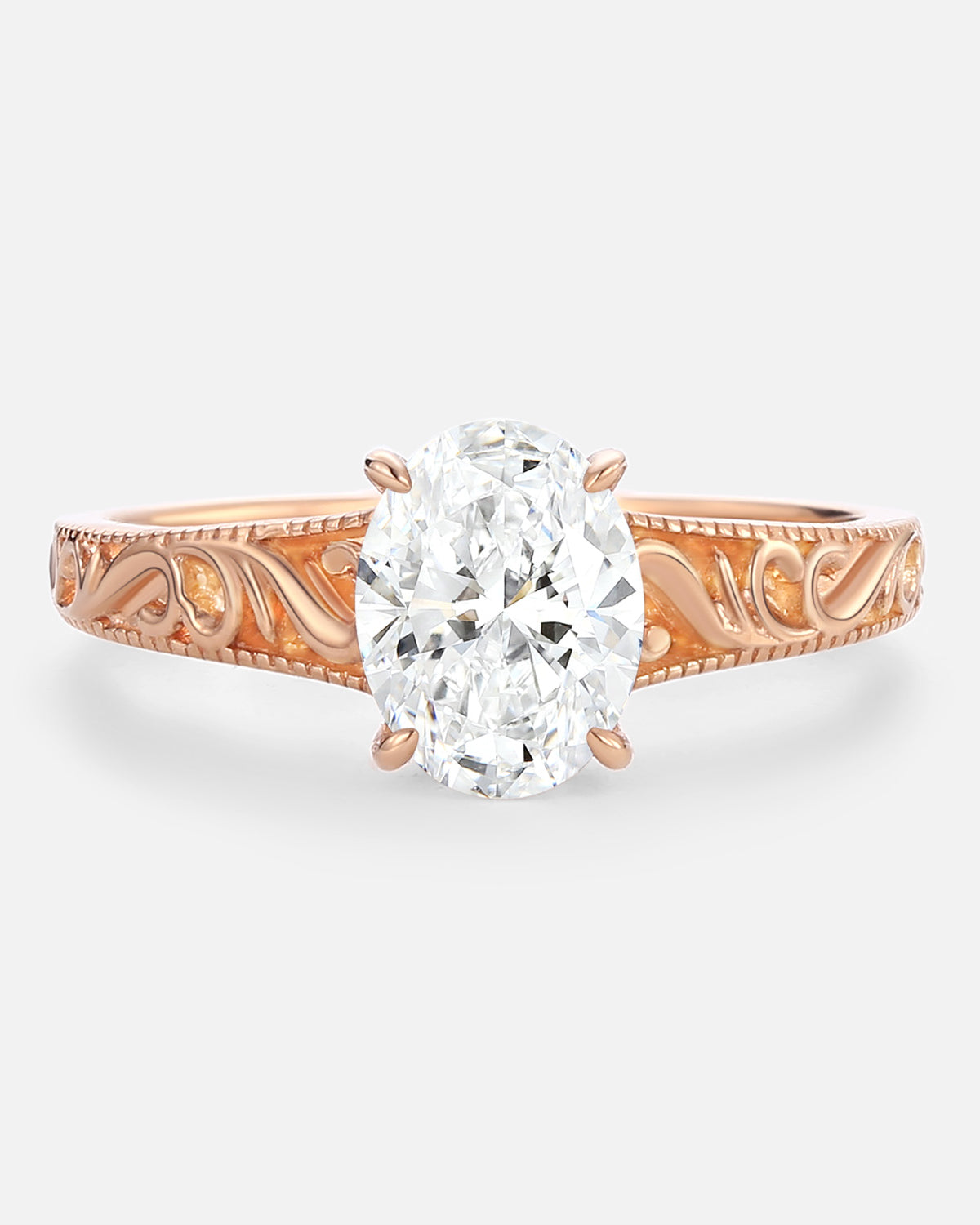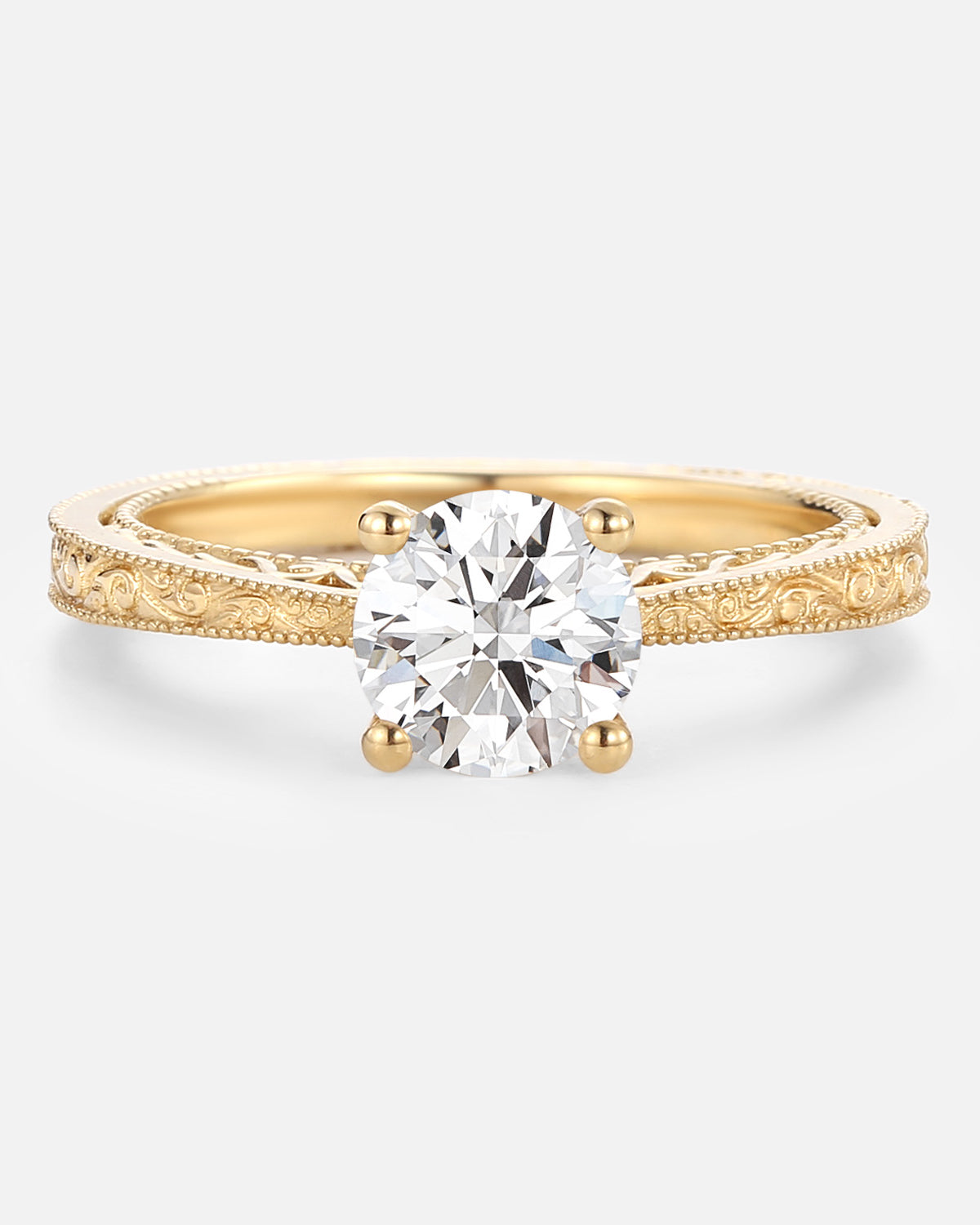 Every lab grown diamond in our engraved ring meets strict standards—crisp clarity, vibrant fire—while engraving stays understated, never overshadowing the stone.